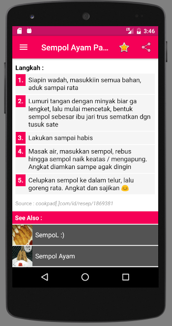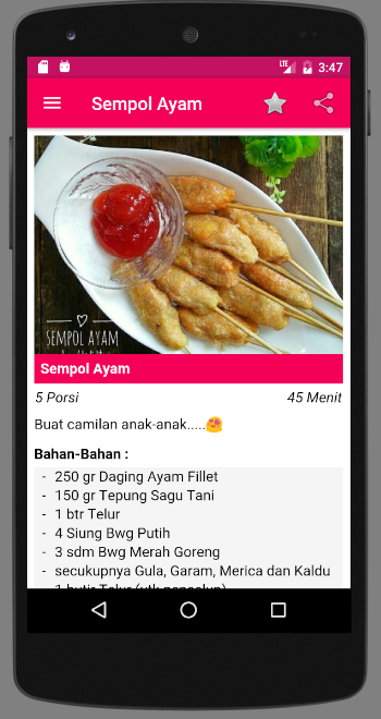 300+ Resep Sempol enak dan sederhana yang harus kamu coba. Temukan juga resep terbaik Sempol Ayam, cara membuat sempol kanji, resep sempol tanpa ayam, resep sempol ikan, cara membuat sempol telur, resep sempol tanpa daging dan masih banyak lagi. Sempol adalah jajanan tradisional atau cemilan yang sangat enak dan sedap banyak disukai anak-anak. Jajanan khas malang ini adalah olahan dari campuran tepung terigu, tepung tapioka dan tambahan daging giling yang dibuat menjadi adonan lalu dililitkan pada batang kayu untuk pegangannya nanti saat akan dimakan. Sempol memang mirip dengan cilok, bedanya saat digoreng kita celupkan terlebih dahulu pada kocokan telur. Dan sempol ini di lilitkan pada tusukan panjang ada yang memakai tusukan yang sangat panjang dan ada sepanjang tusukan sate. Bagaimana cara membuatnya? Dapatkan aplikasi gratis yang berisi kumpulan 300+ aneka resep cara membuat sempol lengkap, tersedia aneka resep sempol dengan berbagai variasi masakan. Fitur-fitur: - Aplikasi dapat dibaca secara Offline Tanpa Koneksi Internet (kecuali gambar) - Fitur berbagi resep - Fitur Zoom halaman - Fitur Bookmark - Navigasi yang baik dan mudah digunakan - Lebih cepat dan ringan - Fitur pencarian yang baik Download Segera Aplikasi Resep Sempol Lengkap - Tutorial Bagaimana Cara Membuat Sempol Enak dan Gurih Yang Lagi Ngehits Dengan Aneka Variasi.