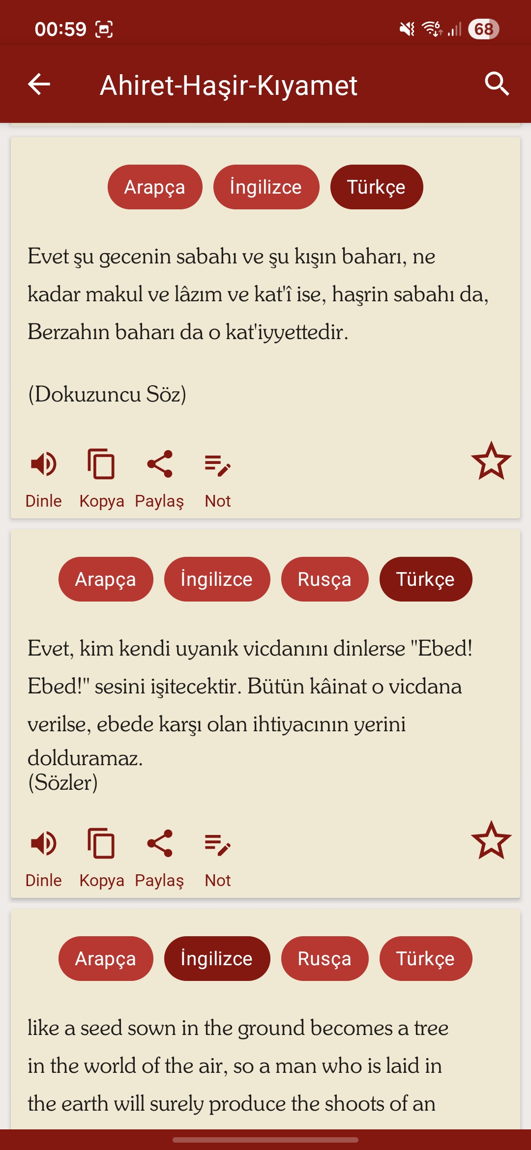 Ora puoi leggere il Risale-i Nur ASCOLTANDO la sua pronuncia rispetto a lingue diverse.
