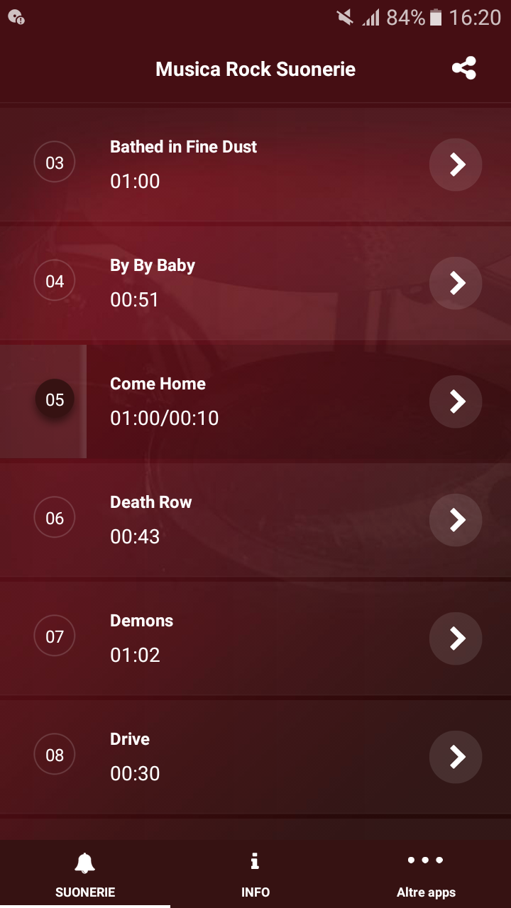 Musica Rock Suonerie sono qui per farti sentire selvaggio e vivo. Scarica questa app per suonerie gratis e goditi musica rock and roll ogni giorno. Ci sono molti tipi di rock musica, e la tua Musica Rock Suonerie ti porterà un po' di tutto. Canzoni rock non invecchiano mai; sono sempre vivi e costantemente ti ricordano di sensazione forte è di essere un po' di un ribelle.