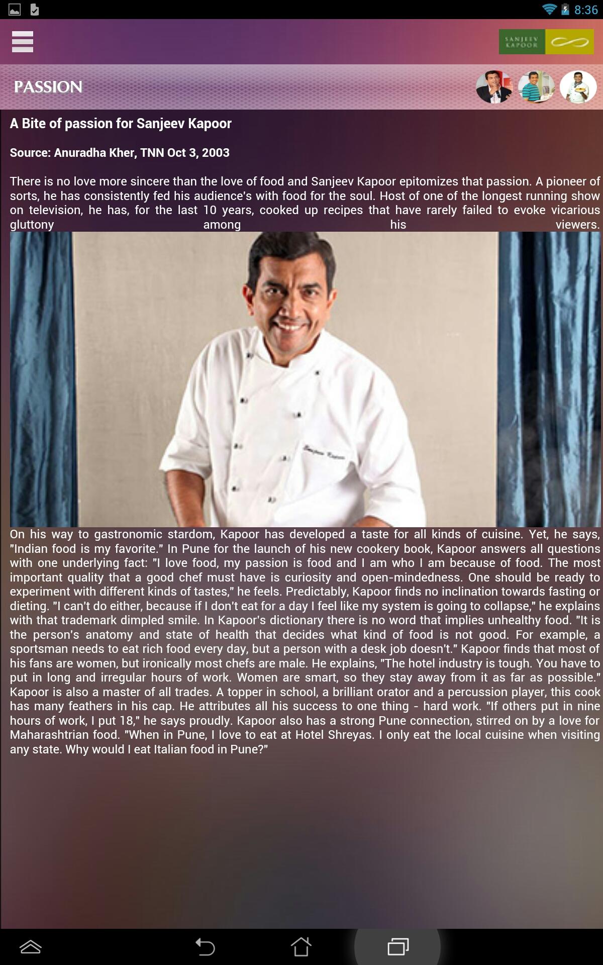 3. Articles on Sanjeev Kapoor’s passion, inspiration and interviews
