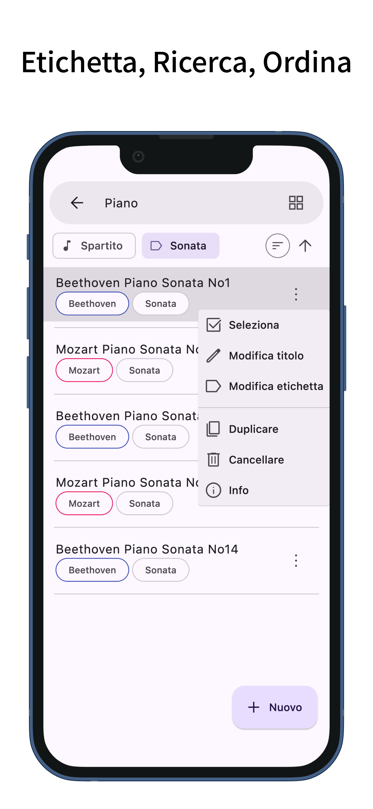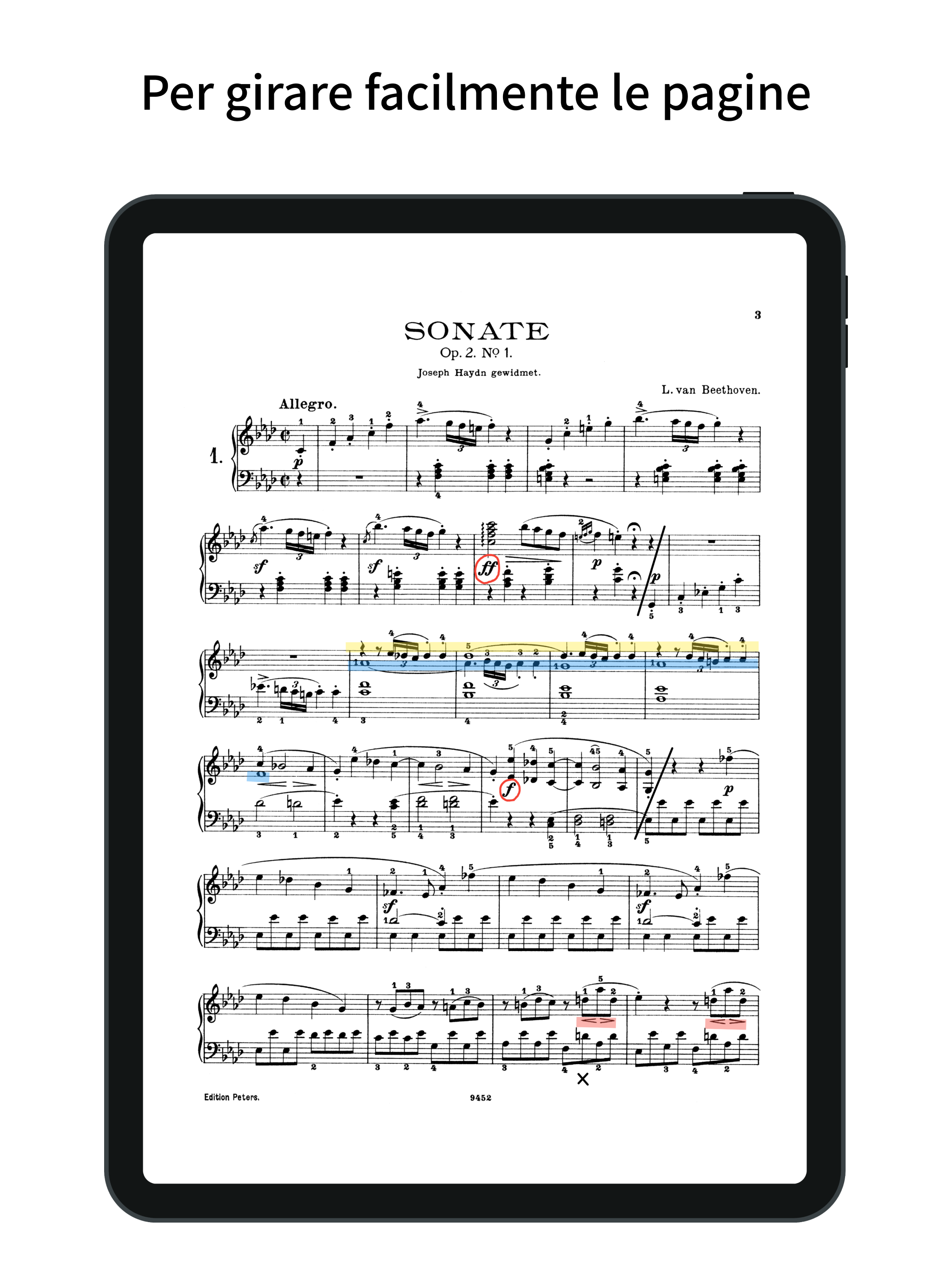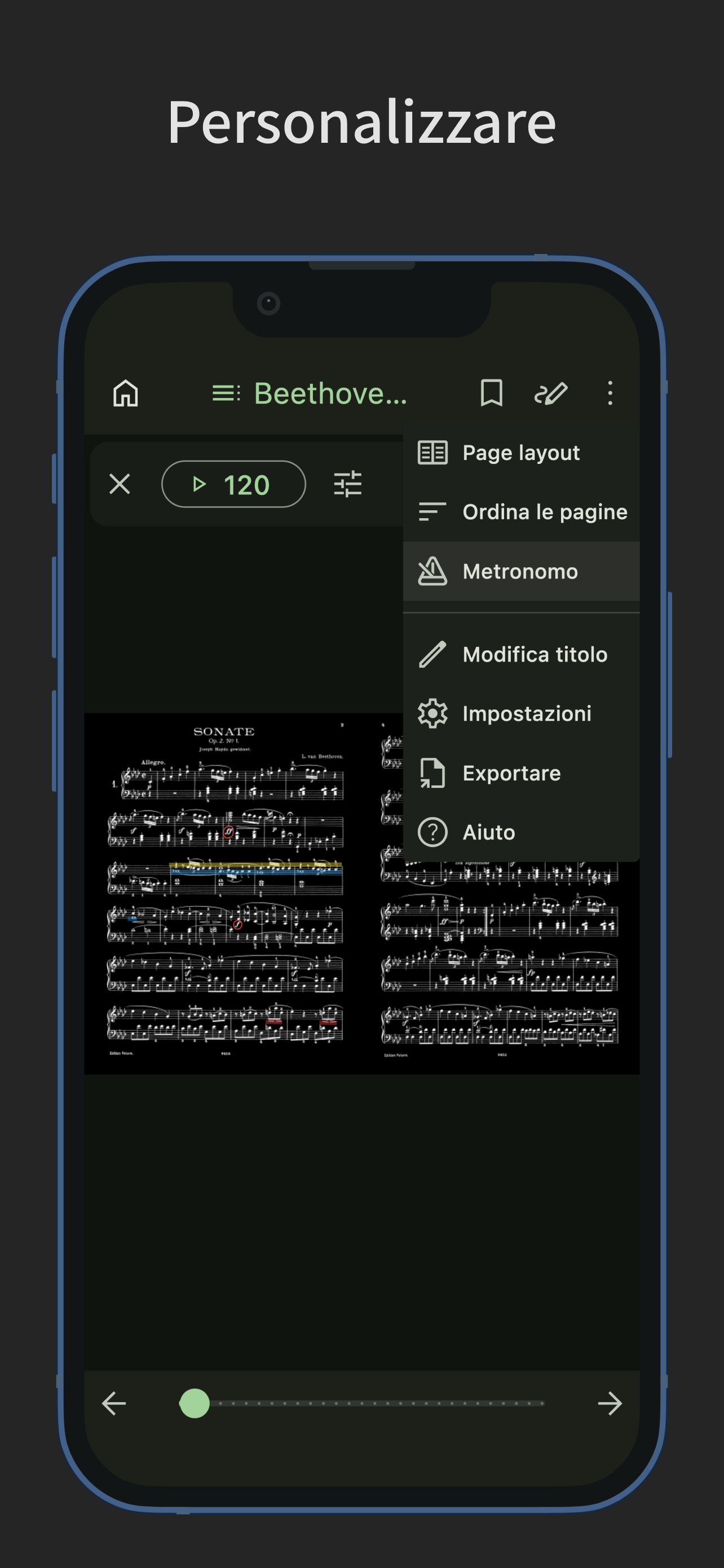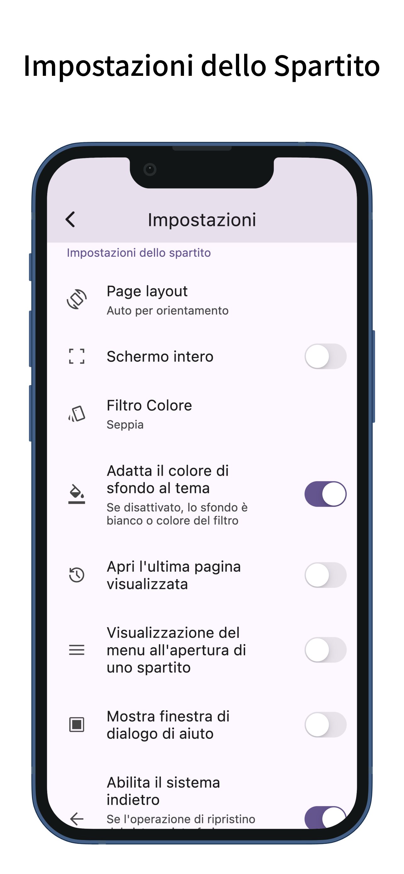 App per la visualizzazione degli spartiti con cambio pagina semplice. Sfoglia gli spartiti con tocchi e scorrimenti. Puoi anche riordinare le pagine del tuo spartito. Cambio Pagina Semplice - È possibile sfogliare le pagine con tocchi e scorrimenti. - Supporta pedali Bluetooth per il cambio pagina. - Le assegnazioni dei tocchi possono essere impostate su: pagina precedente, sinistra/destra, alto/basso, pagina successiva o disabilitato. - I gesti di scorrimento possono essere attivati o disattivati individualmente per alto, basso, sinistra e destra. - Le operazioni non relative al cambio pagina (come la visualizzazione del menu o la scrittura di annotazioni) possono essere assegnate a gesture che non interferiscono con il cambio pagina, come tenere premuto o toccare i bordi superiore o inferiore. - È possibile attivare o disattivare anche lo zoom (con pizzicamento o doppio tocco) sugli spartiti. Riordinamento delle Pagine - Riordinare le pagine dello spartito facilita il cambio pagina durante ripetizioni, dal segno, codas e situazioni simili. - Durante il riordinamento, puoi aggiungere e trascinare più pagine contemporaneamente, non solo una. - È inoltre possibile eliminare pagine o aggiungere pagine vuote. Annotazioni sugli Spartiti - Puoi scrivere annotazioni a mano sugli spartiti. - Sono disponibili due tipi di penne, evidenziatori e una gomma, con funzioni di annullamento e ripristino. - Le penne e gli evidenziatori consentono di scegliere lo spessore e il colore della linea, e puoi disegnare linee rette. - Uno strumento contagocce permette di prelevare colori dallo schermo. - È possibile esportare un PDF che includa le annotazioni. Setlist - Puoi raggruppare più spartiti in una setlist per visualizzarli in successione senza doverli riaprire. - Toccare il titolo nella barra del menu mostra l’elenco degli spartiti nella setlist; toccando uno, verrai indirizzato a quello spartito. Segnalibri - Puoi aggiungere segnalibri a pagine specifiche degli spartiti. - I segnalibri possono avere titoli personalizzati. - Toccare il titolo nella barra del menu mostra l’elenco dei segnalibri; toccandone uno, verrai indirizzato alla pagina corrispondente. Layout della Pagina - Puoi scegliere tra i layout di pagina singola, due pagine (affiancate), adatta alla larghezza, adatta all'altezza, mezza pagina (verticale) o mezza pagina (orizzontale) per i tuoi spartiti. - Il layout può cambiare automaticamente in base all'orientamento dello schermo. - Selezionando "adatta alla larghezza", lo spartito viene visualizzato a tutta larghezza, rendendolo più facile da vedere su dispositivi di piccole dimensioni. Filtro Colore - Puoi applicare un filtro colore agli spartiti, scegliendo tra seppia, verde o invertito. - Se il bianco dello spartito ti sembra troppo luminoso, questa impostazione può migliorarne la leggibilità. Aggiunta di Spartiti - Puoi aggiungere spartiti in formato PDF. - Nella schermata dell’elenco degli spartiti, premendo il pulsante “più” nell’angolo in basso a destra, puoi aggiungere file PDF dal tuo dispositivo. (Nella schermata della setlist, il pulsante “più” apre la schermata per aggiungere una setlist.) - Puoi anche aggiungere spartiti condividendo file PDF da altre app. - È possibile aggiungere più spartiti contemporaneamente. Gestione degli Spartiti - La funzione etichette ti permette di aggiungere etichette agli spartiti o alle setlist per filtrarli tramite più etichette. - Toccare la barra di ricerca consente di cercare spartiti o setlist per titolo. - Gli spartiti e le setlist possono essere ordinati per titolo, data di creazione o ultima visualizzazione. Personalizzazione - Supporta la modalità scura. - Permette di modificare il colore del tema. - Dispone di un design semplice conforme ai principi del Material Design.