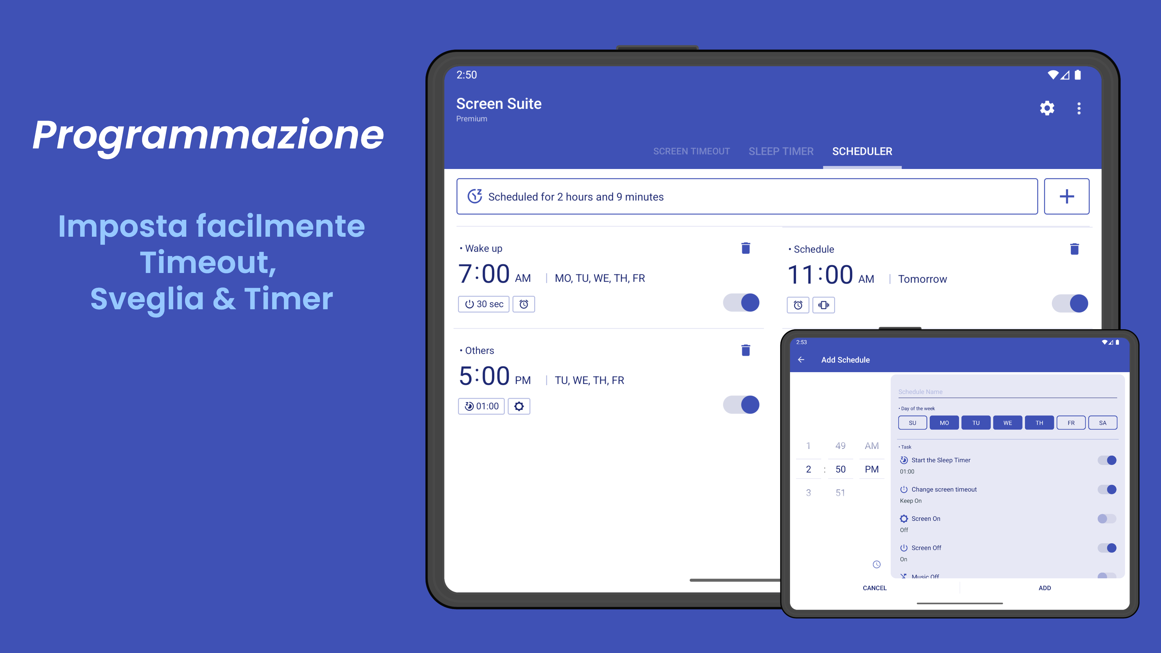 - App rinominata Screen Suite - Aggiunta funzione di timeout dello schermo specifica per app - Aggiunto widget testo grande per il timeout dello schermo