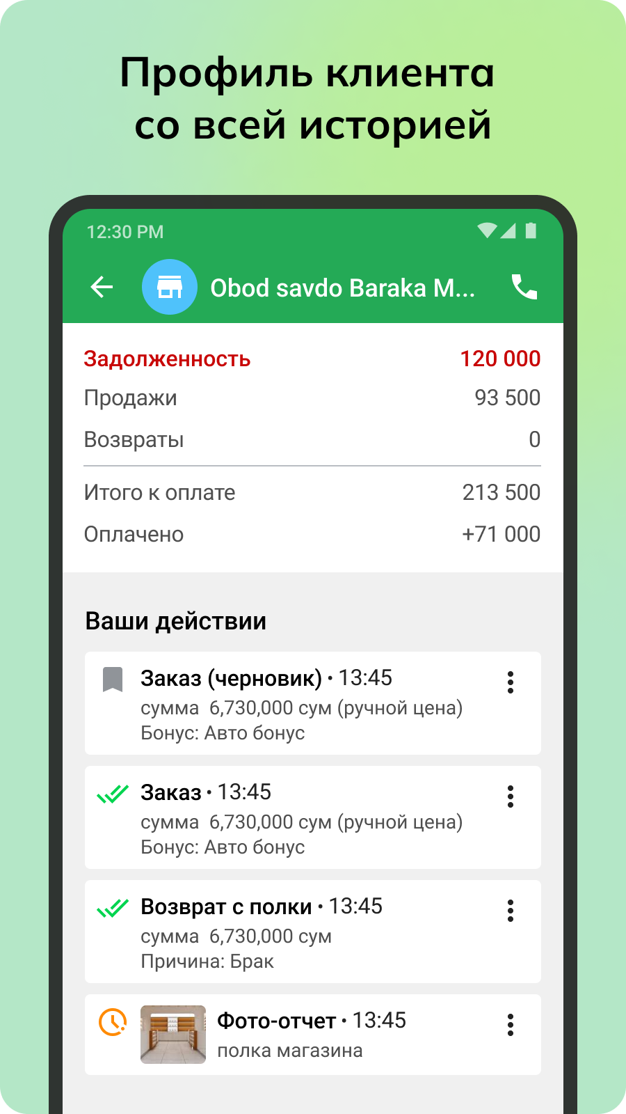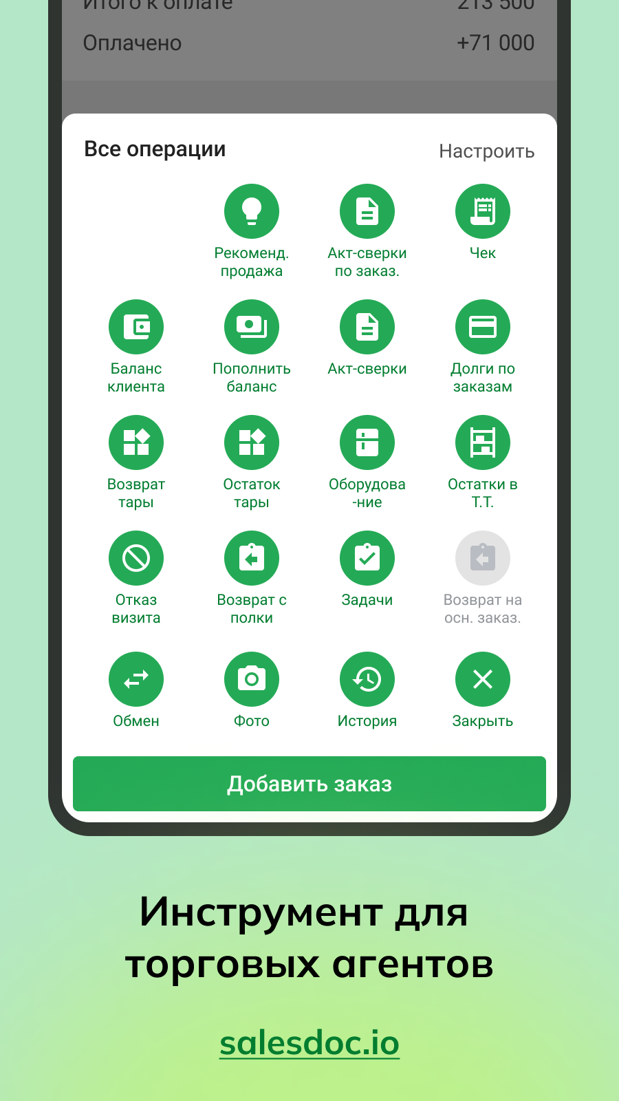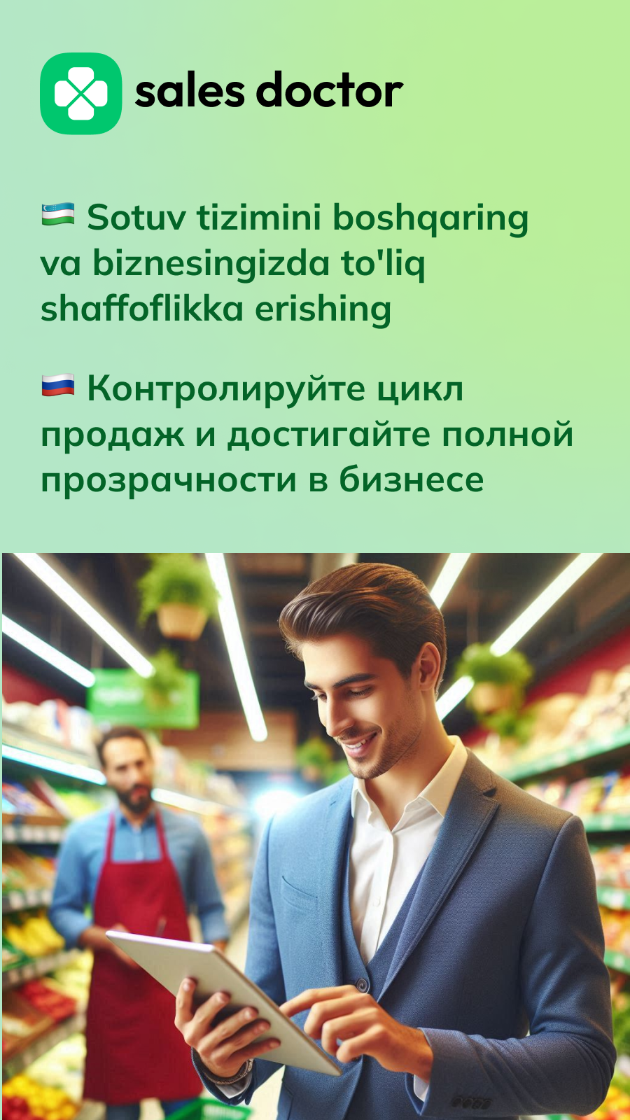 Sales Doctor è un'applicazione mobile per la raccolta degli ordini dai punti vendita per i rappresentanti di vendita. Sales Doctor semplifica il più possibile il processo di accettazione delle domande. Tutte le applicazioni raccolte che utilizzano la sincronizzazione vengono generate nel database. Nell'applicazione sono disponibili: storia dei clienti, scorte e prezzi delle azioni. Nella sezione KPI, il rappresentante di vendita può visualizzare il piano delle prestazioni e i risultati delle vendite giornaliere.