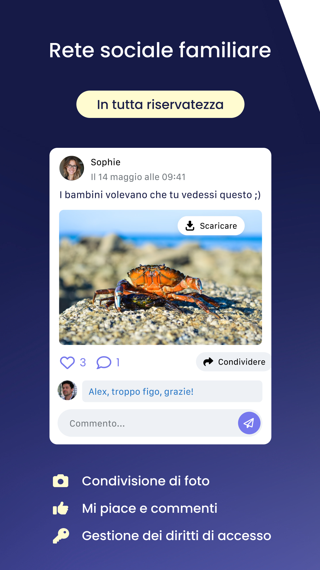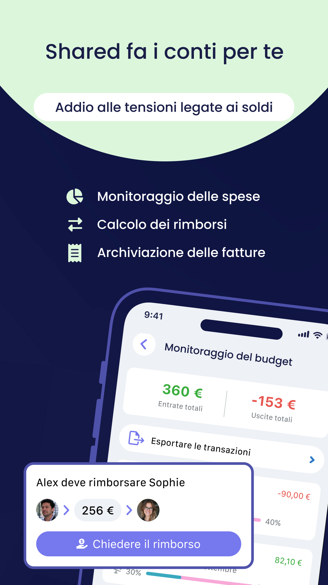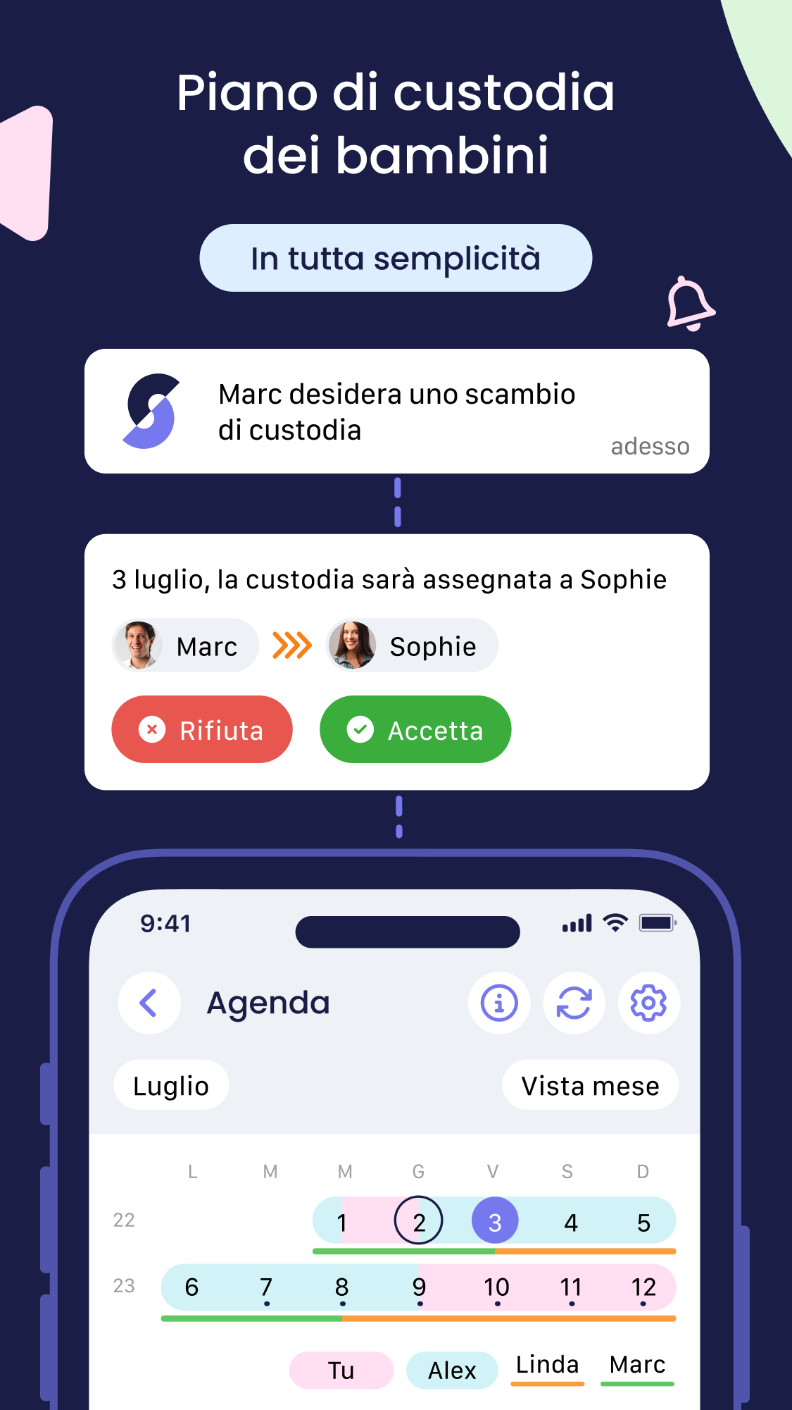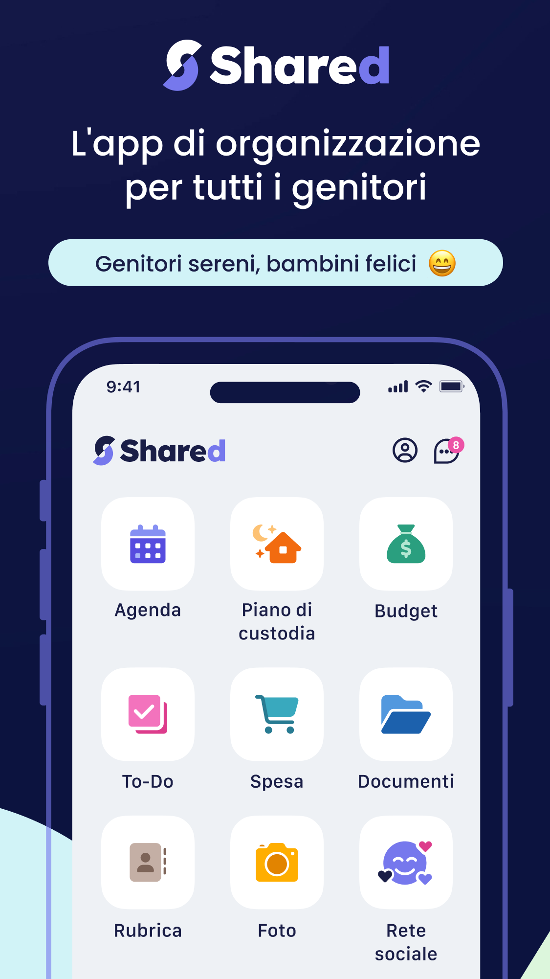 Shared semplifica davvero la vita delle famiglie! L’app è stata progettata per alleggerire il carico mentale e migliorare la comunicazione tra tutti i membri della famiglia, che siate genitori in coppia, separati o in una famiglia ricostituita. Condividi in tutta sicurezza appuntamenti, calendari di custodia, attività, liste della spesa, spese, documenti e i tuoi ricordi più belli con le persone di fiducia. Poiché l’organizzazione diventa ancora più delicata dopo una separazione o un divorzio, Shared offre funzionalità specifiche per i genitori separati. Scarica Shared GRATUITAMENTE e rendi più semplice la tua vita da genitore. --- AGENDA E CALENDARIO CONDIVISO --- Scopri il calendario condiviso pensato per le famiglie: • Pianifica tutti gli appuntamenti tuoi e dei tuoi figli in un unico calendario condiviso • Sincronizza Shared con gli altri calendari professionali e personali per avere una visione a 360° • Imposta promemoria per tutta la famiglia: ognuno li riceve al momento giusto, senza dover rincorrere nessuno --- SEI SEPARATO/A? --- Shared semplifica la gestione della custodia condivisa: • Configura facilmente la custodia alternata e condividila con le persone di riferimento. Puoi creare calendari personalizzati per periodi specifici come le vacanze scolastiche. • Un imprevisto? Invia una richiesta di scambio con un semplice clic al tuo ex coniuge e segui la ripartizione della custodia in tempo reale. Pensata per la coparentalità, Shared facilita l’organizzazione tra genitori separati e elimina i malintesi. Diventa più semplice gestire il calendario familiare e le attività dei bambini. --- LISTE DI ATTIVITÀ E DELLA SPESA CONDIVISE --- Grazie alle liste condivise, ognuno contribuisce all’organizzazione familiare: basta carico mentale su una sola persona, benvenuto lavoro di squadra. Condividi la lista della spesa o le attività domestiche con i tuoi cari. Imposta promemoria e visualizzali nel calendario condiviso. --- GESTIONE DEL BUDGET --- Shared si occupa della contabilità familiare. Con sintesi dettagliate, tutti sanno a che punto si è in ogni momento. Con il monitoraggio delle categorie, puoi controllare il tuo budget. Scegli quali spese condividere e Shared calcolerà automaticamente gli importi da rimborsare secondo la percentuale scelta. Addio discussioni sui soldi. --- DOCUMENTI E CONTATTI CONDIVISI --- Centralizza tutti i documenti importanti, sempre accessibili. Se il tuo ex o la babysitter necessita di un documento o contatto, scegli tu cosa condividere e con chi. --- SOCIAL NETWORK FAMILIARE E CHAT --- Condividi foto e aggiornamenti con la tua famiglia dal social o dalla chat, in modo privato e senza pubblicità. In Shared i tuoi dati personali sono strettamente confidenziali e privati. --- TARIFFE E CONDIZIONI DI ABBONAMENTO --- Diventa Premium per sbloccare tutte le funzionalità. Abbonandoti, tutti i membri del tuo Circolo beneficiano delle funzioni Premium. Senza impegno e cancellabile in qualsiasi momento. 2 tipi di abbonamento: • Annuale • Mensile Il pagamento viene effettuato tramite App Store per un anno o un mese, con rinnovo automatico se non viene disattivato almeno 24 ore prima. Puoi gestire l’abbonamento nelle impostazioni del tuo account Apple. https://share-d.com/en/conditions-generales https://share-d.com/en/politique-de-confidentialite