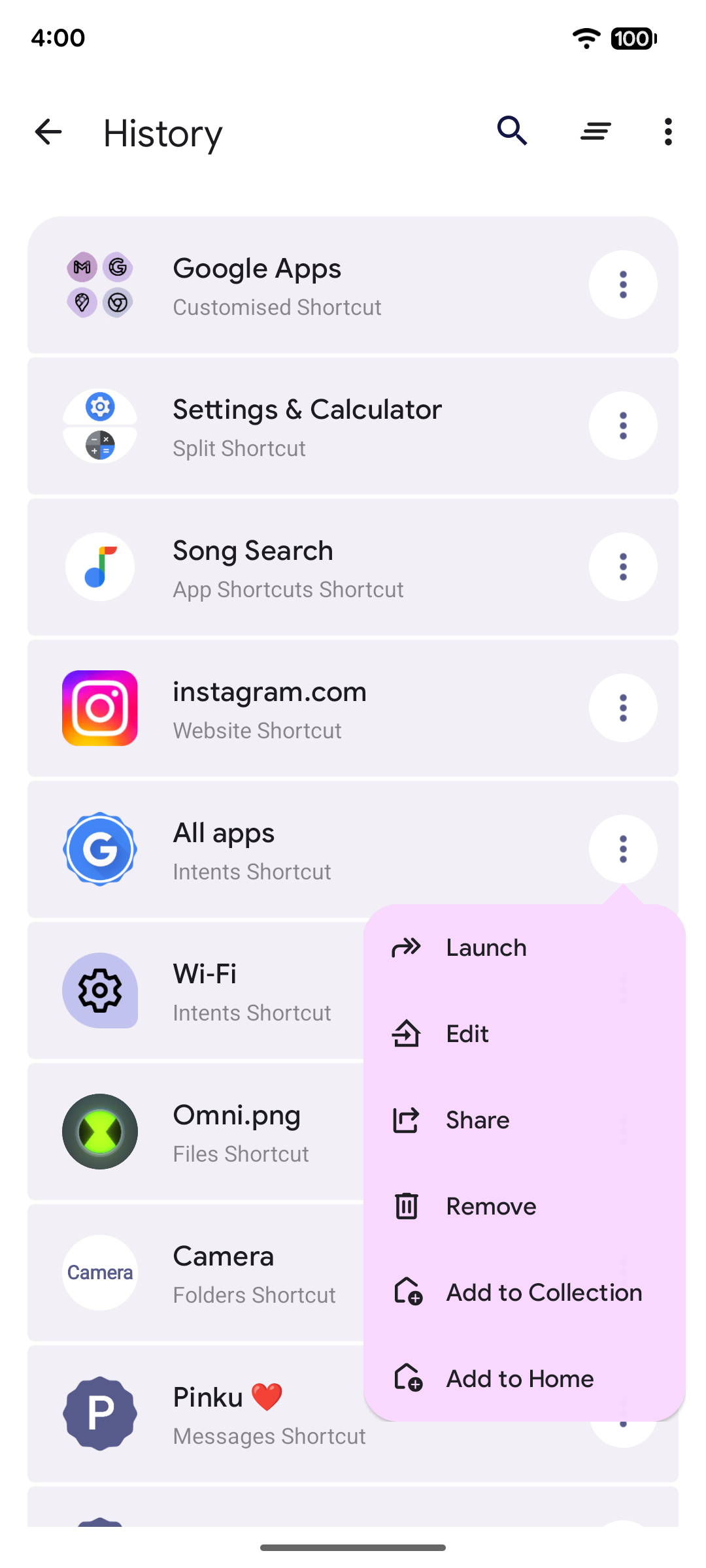 # Personalizzato #: solo un bonus e una nuova funzionalità per ottenere scorciatoie dalle app installate e modificarle in questa app prima di creare.