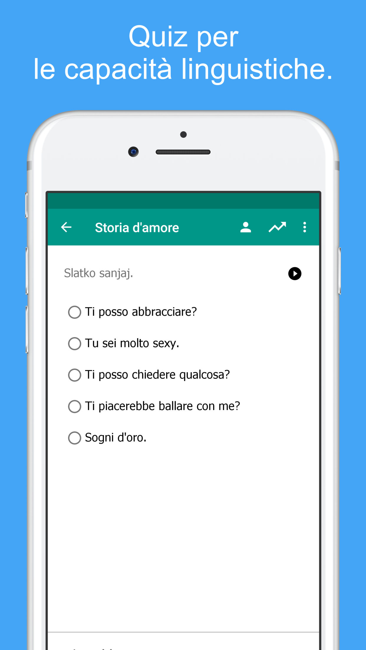 ★★★ Impara il Croata per quando visiti la Croazia ★★★ Impara il Frasario Croata in maniera Semplice è un app sulla lingua Croata che ti fa imparare il Croata in maniera rapida e semplice. Tutte le frasi e le parole in Thailandese ti verranno presentate sia in scrittura fonetica che in Croata originale. Vengono tutte registrate da ragazze bellissime e originarie della Croazia. Una visione dettagliata ti permette di imparare ogni frase in Croata con la corrispondente traduzione in Italiano parola per parolo. Salva le tue frasi preferite e le parole da rivedere senza fare molta confusione. Studia il tuo vocabolario tramite le flashcard utilizzando la tecnica delle ripetizioni a distanza. Testa le tue conoscenze divertendoti con la lingua Croata tramite quiz e rivedendo il tuo risultato.