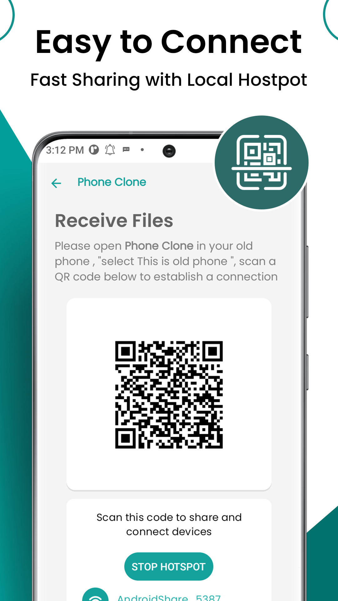 Un modo più semplice per connettersi alla clonazione del telefono Share it App è tramite i codici QR. Puoi generare un codice QR personalizzato per condividere più file contemporaneamente. Altri devono solo scansionare il codice QR per avviare immediatamente il download dei file sul proprio telefono. Senza toccare la tastiera, puoi condividere file con altri!