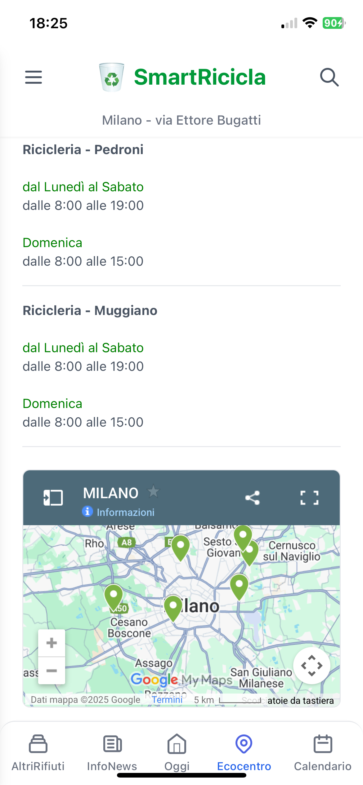 Trova facilmente i centri di raccolta, le isole ecologiche, i contenitori per farmaci scaduti, pile usate e oli esausti più vicini a te. La mappa ti guiderà fino a destinazione.