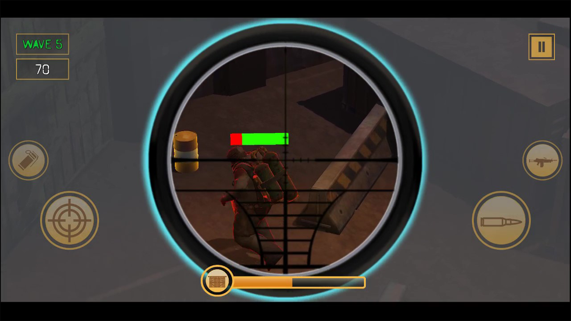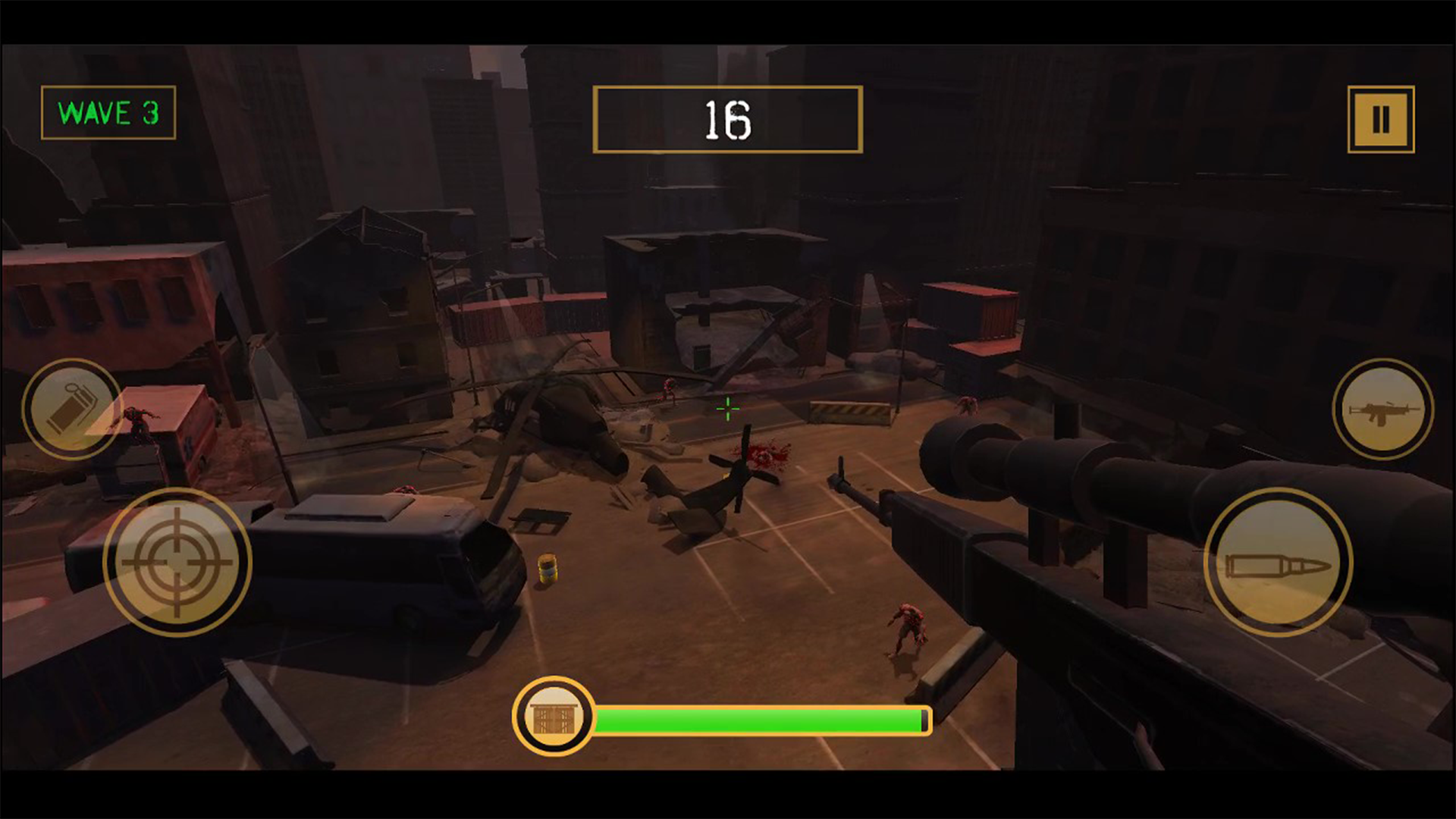 You are the final hope to safeguard your colony from the enemy mutant invasion. Take the role of a high caliber Sharp Shooter to shoot down the mutants and keep them from destroying the gates in this endless shooter set in a Post Apocalyptic war torn city. Switch between Sniper and Machine gun for maximum impact. Stun the enemies with Grenades to deal with the hordes and take them out before they even get near the gates!