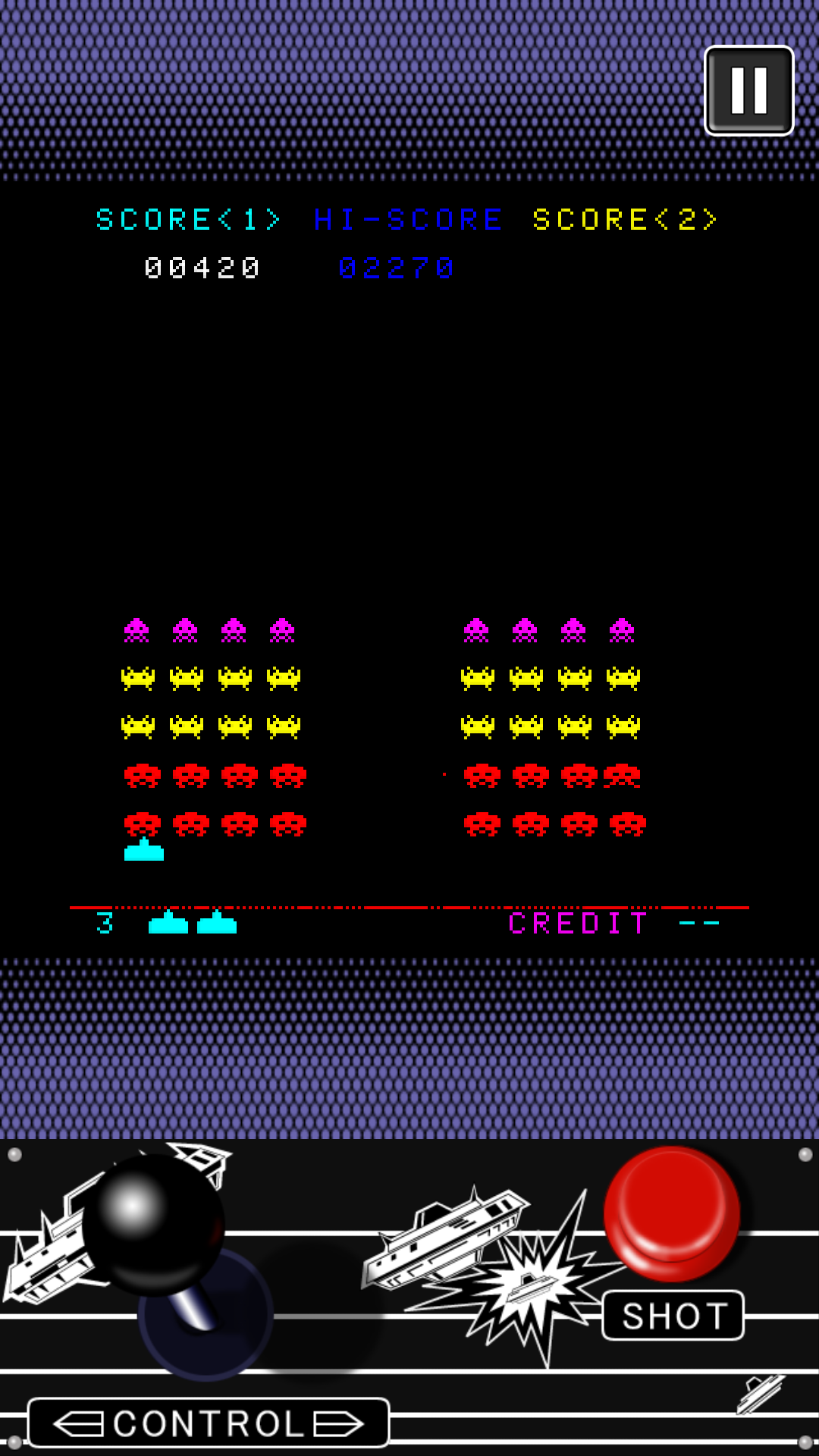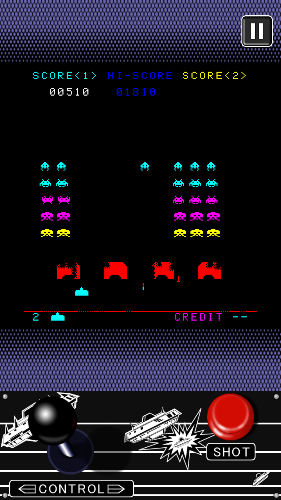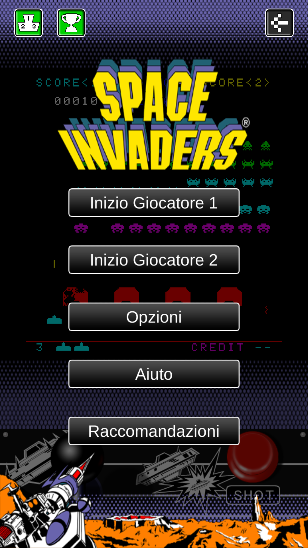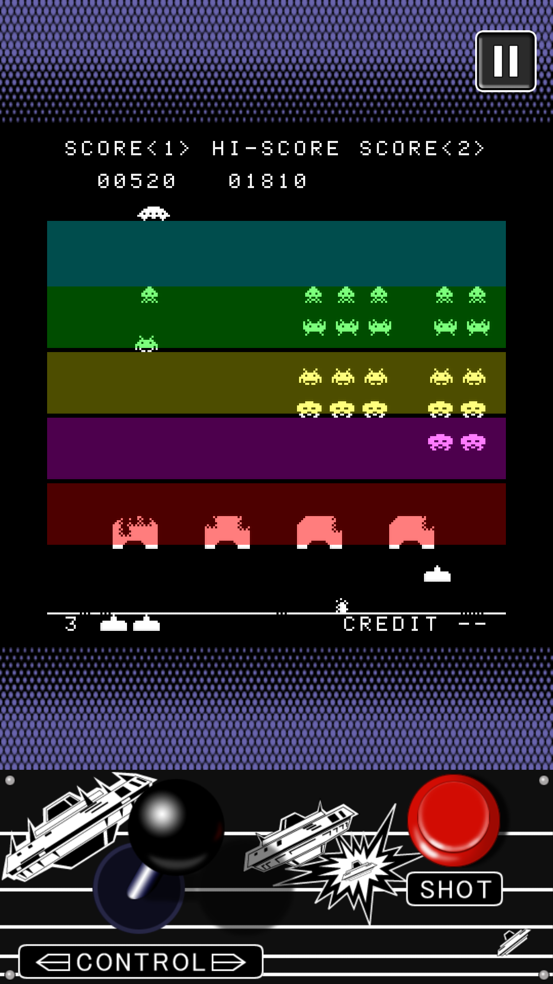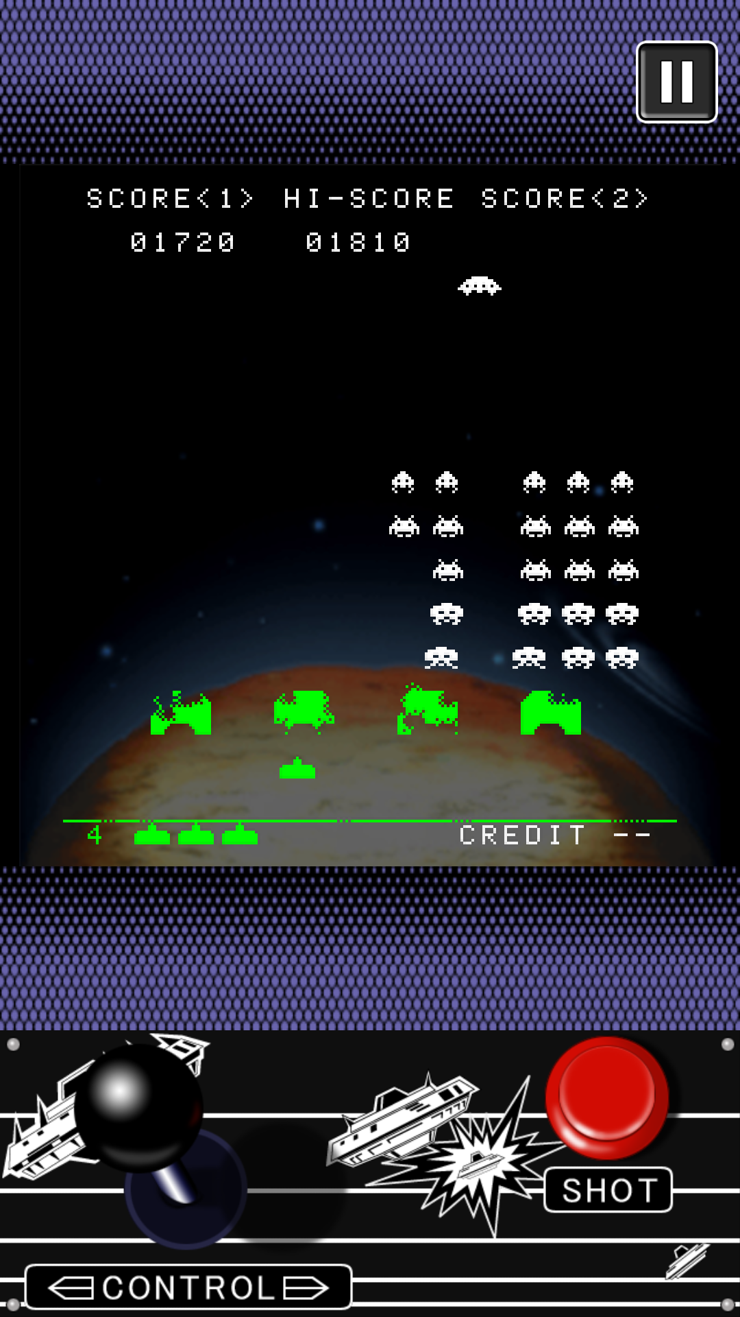 Experience the King of Shooting Games, the arcade hit that captured the hearts of legions of fans and took the world by storm! Use your cannon to defend Earth from waves of descending alien Invaders! All the features you remember have been faithfully recreated: the elusive UFOs, the "Nagoya Attack" technique, and the endless game play! This edition features three control methods, four screen modes, and bonus extras including rare material from the original game's development! Controls: 1. Touch & drag controls 2. On-screen controls 3. Tilt controls Screen Modes: 1. Color 2. Toggle Background 3. Cellophane Overlay 4. Monochrome Language: 1. English 2. Italiano 3. Français 4. Deutsch 5. Español 6. 日本語