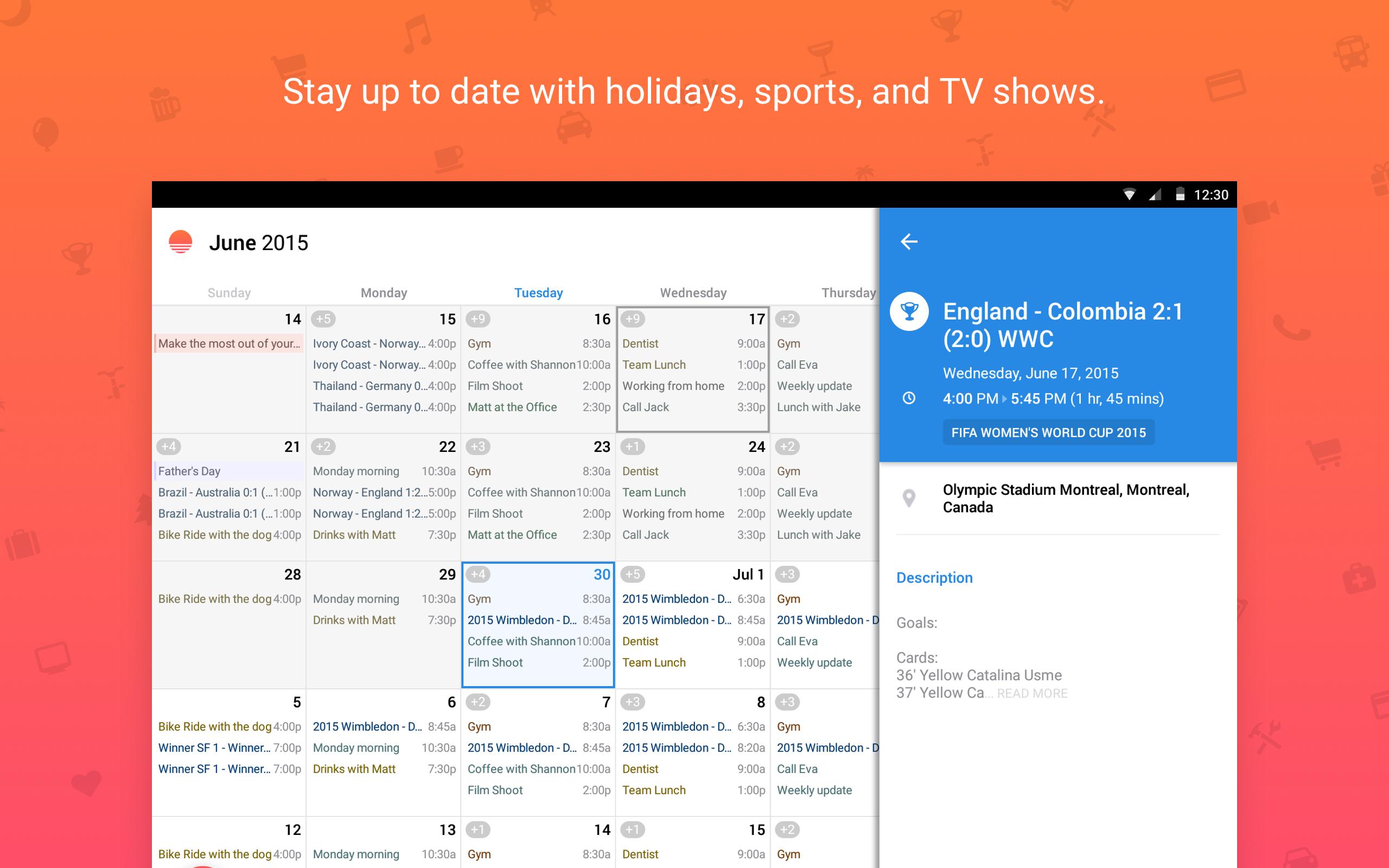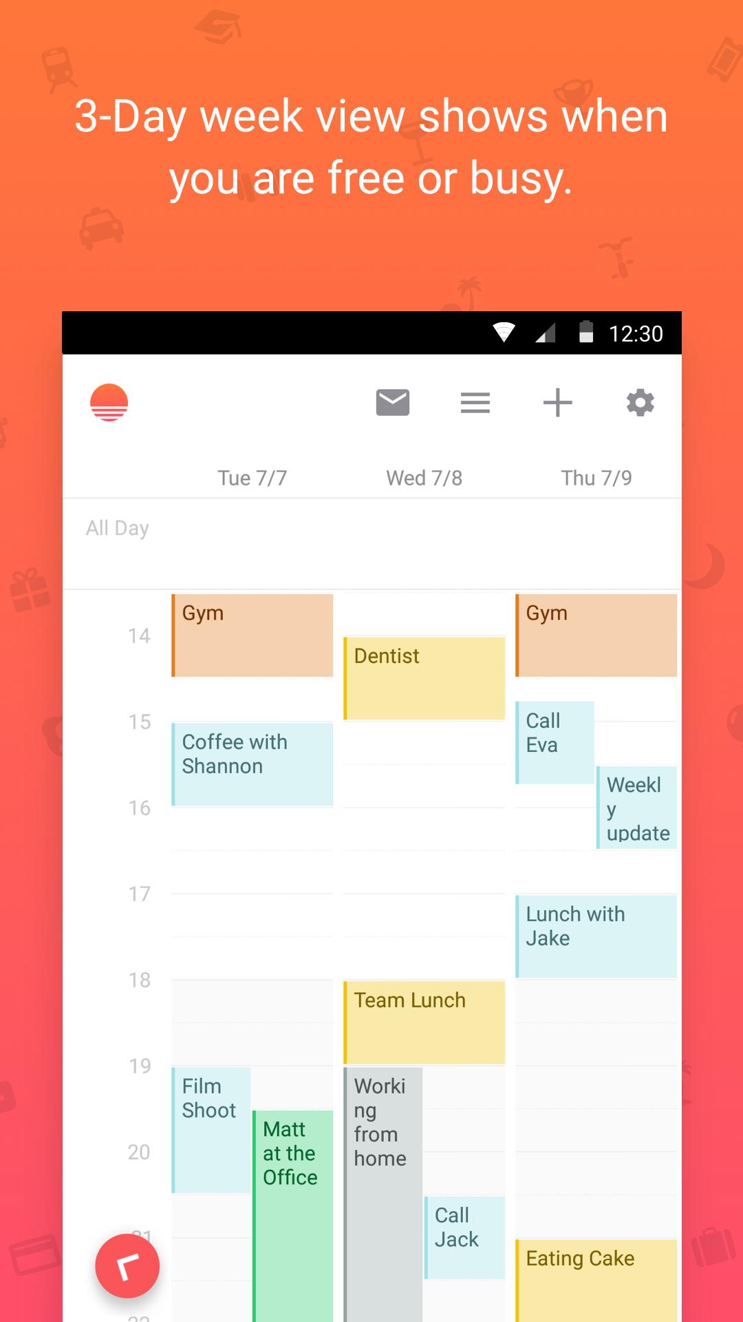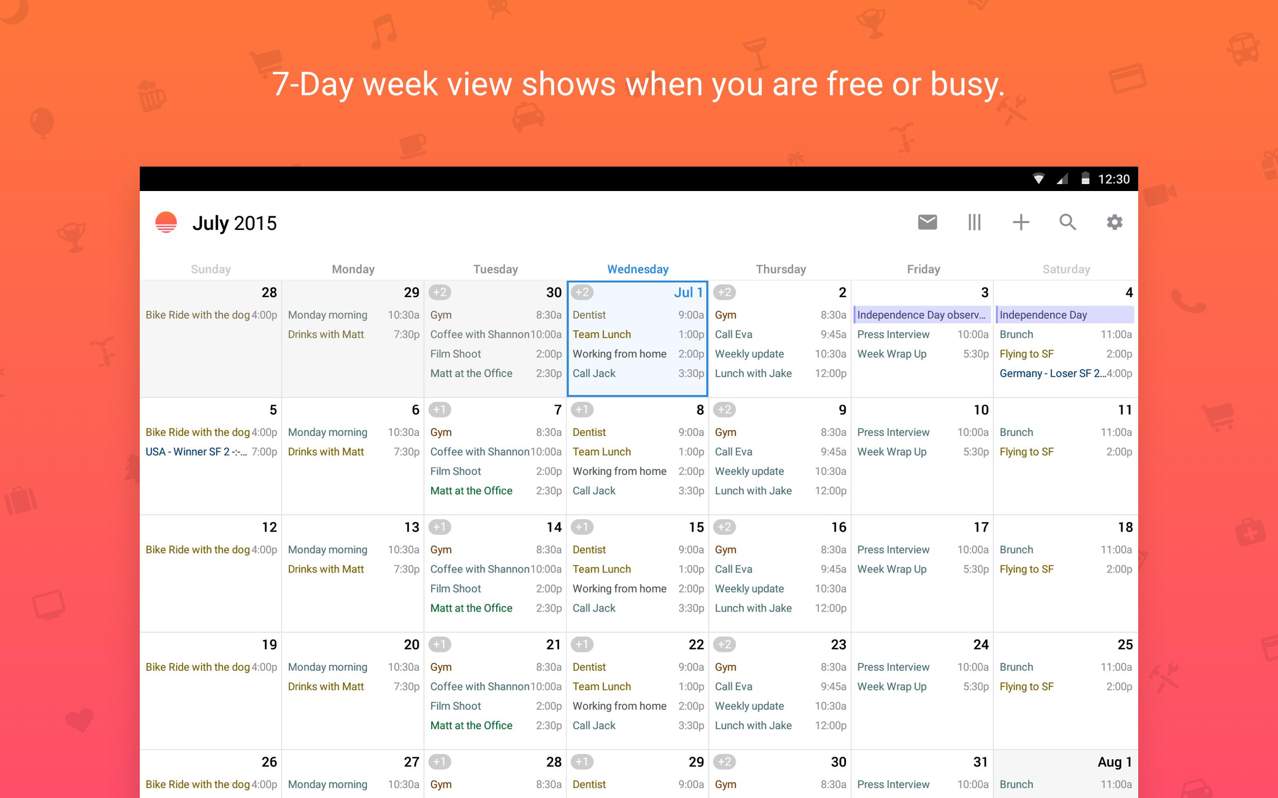 Sunrise automatically syncs between your phone, tablet and computer, so you can access your calendar from anywhere. It’s that easy.