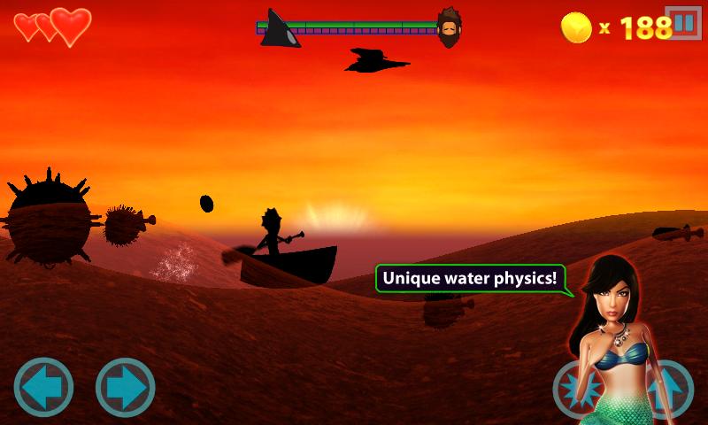 • Battle for survival with your trusty boat and paddle