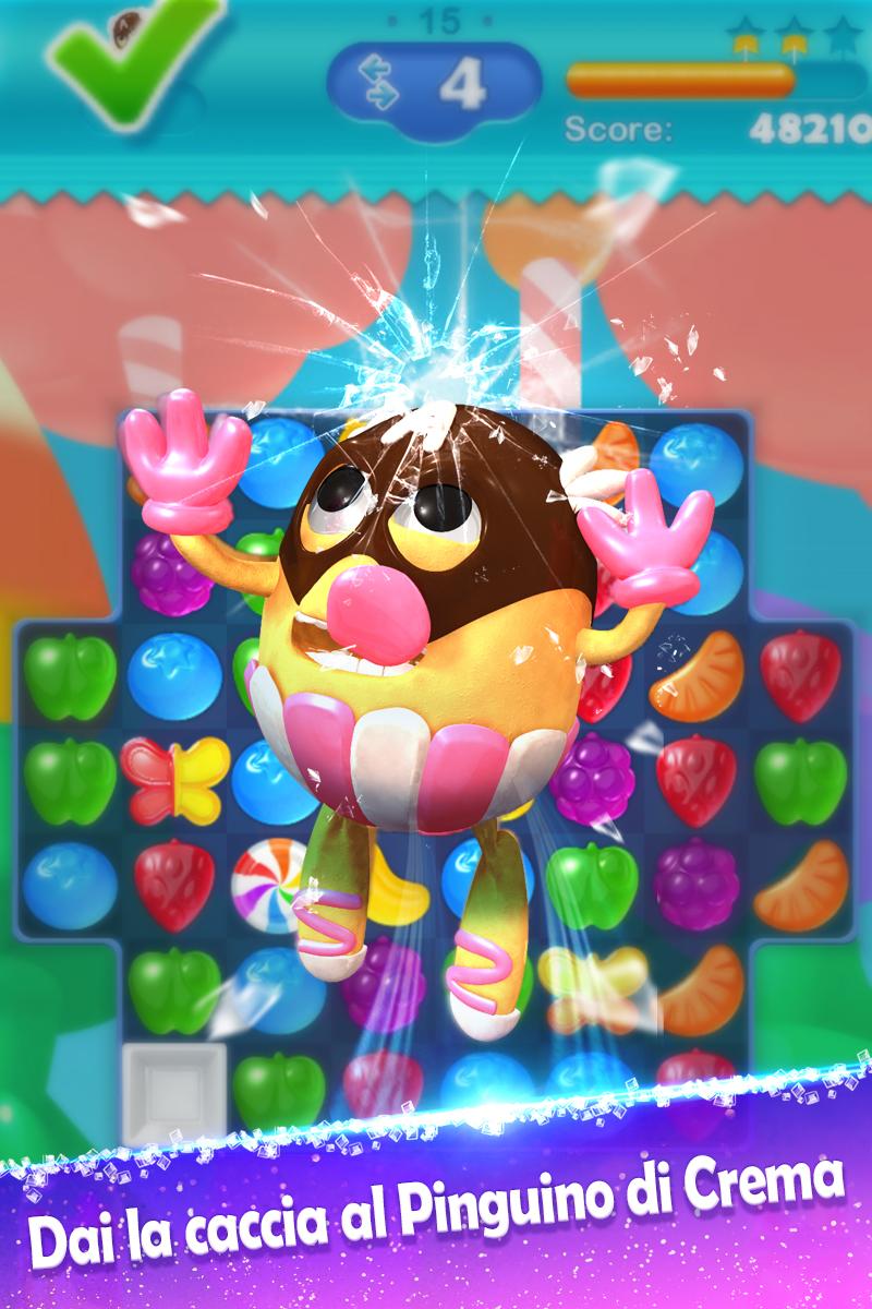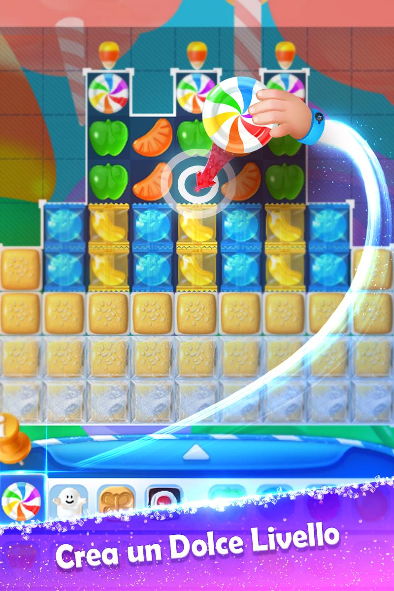 Il primo gioco Match-3 del mondo dove puoi creare, giocaree condividere i tuoi livelli personalizzati usando qualsiasi tipo di dolce disponibile.