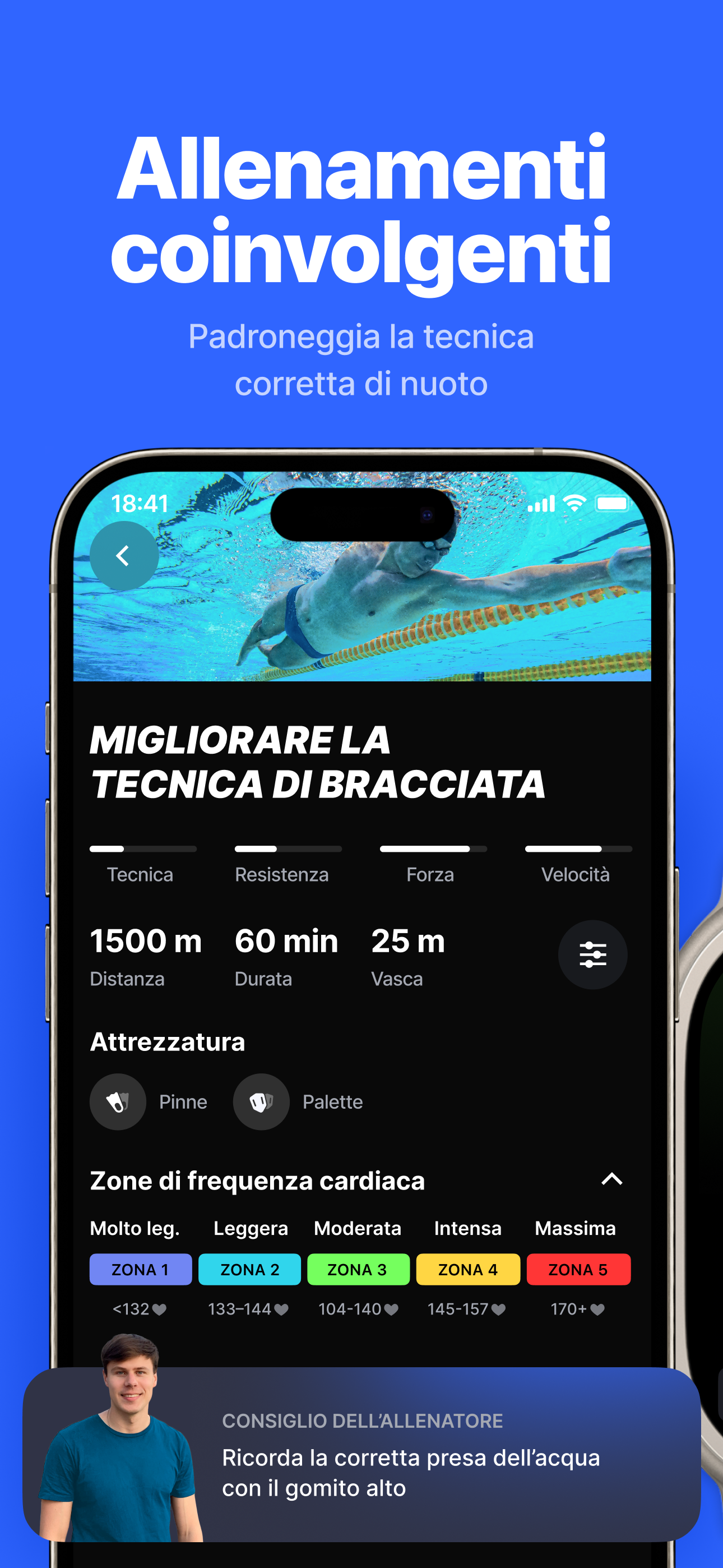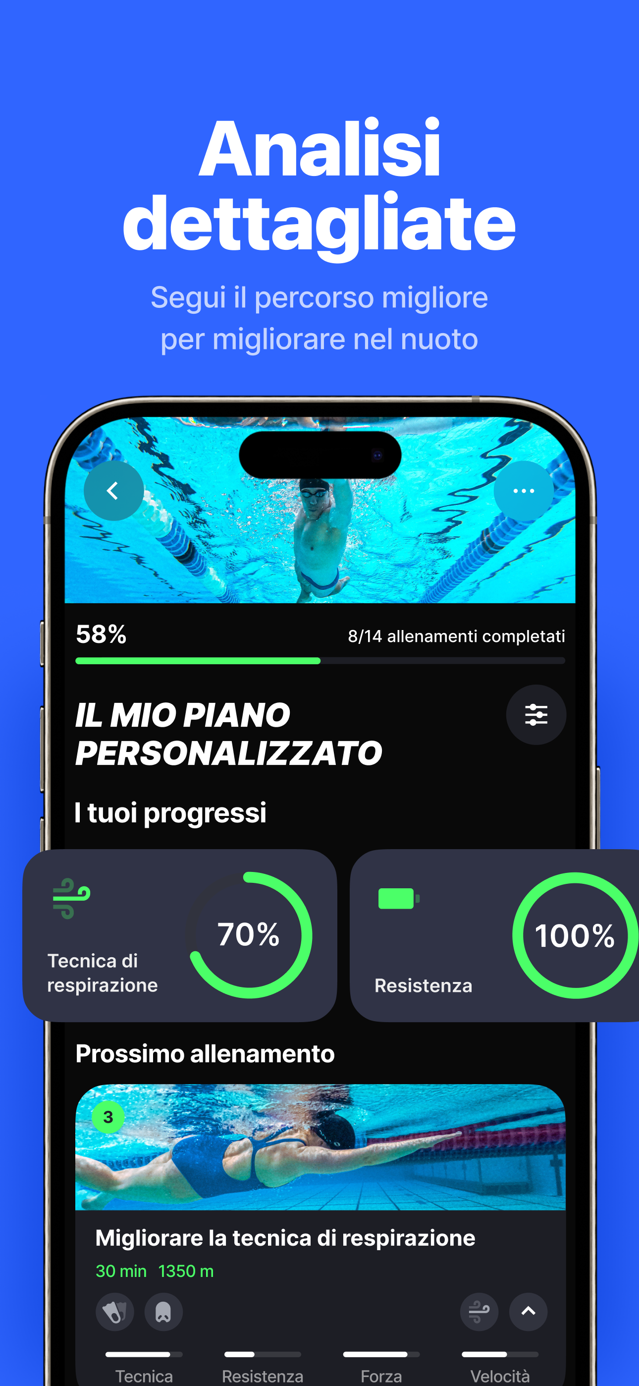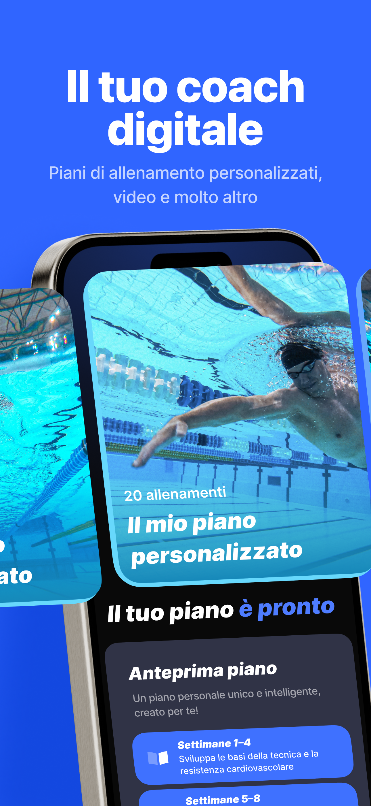 Ottieni un coach di nuoto digitale che ti aiuti e ti guidi durante tutto il percorso di allenamento.