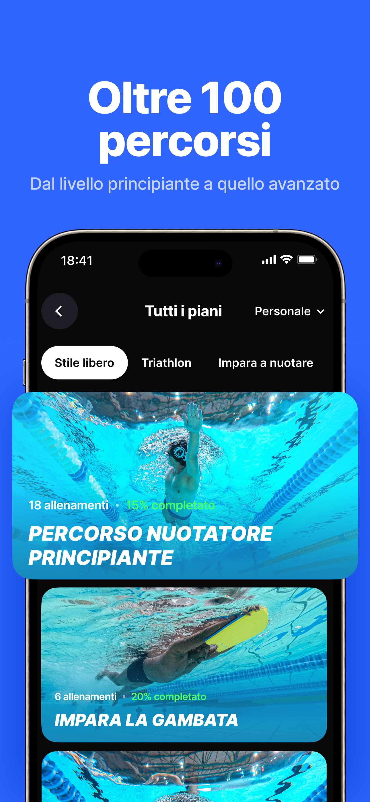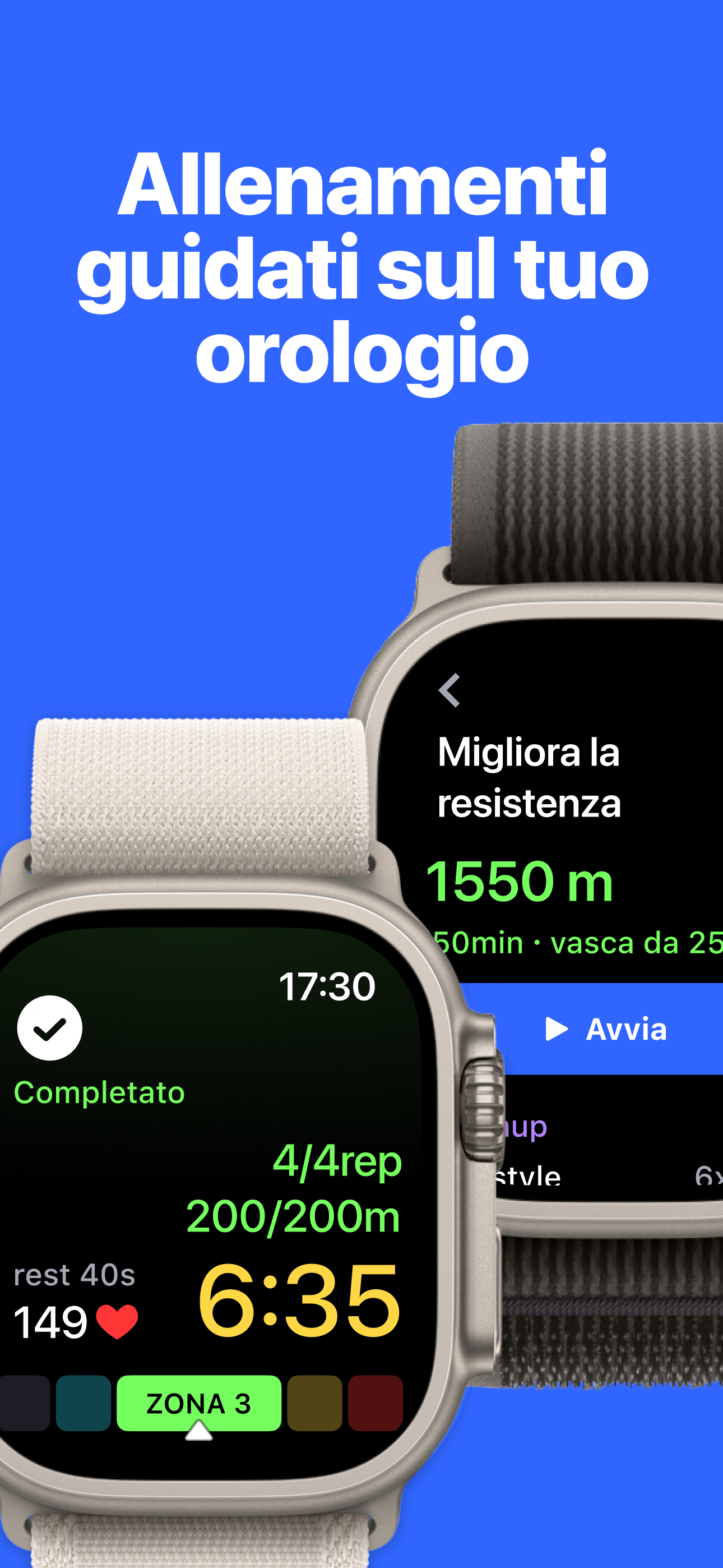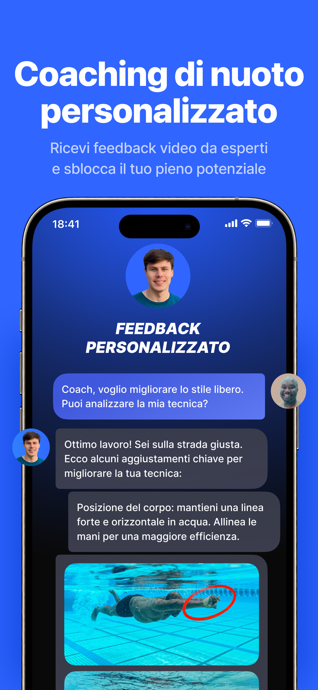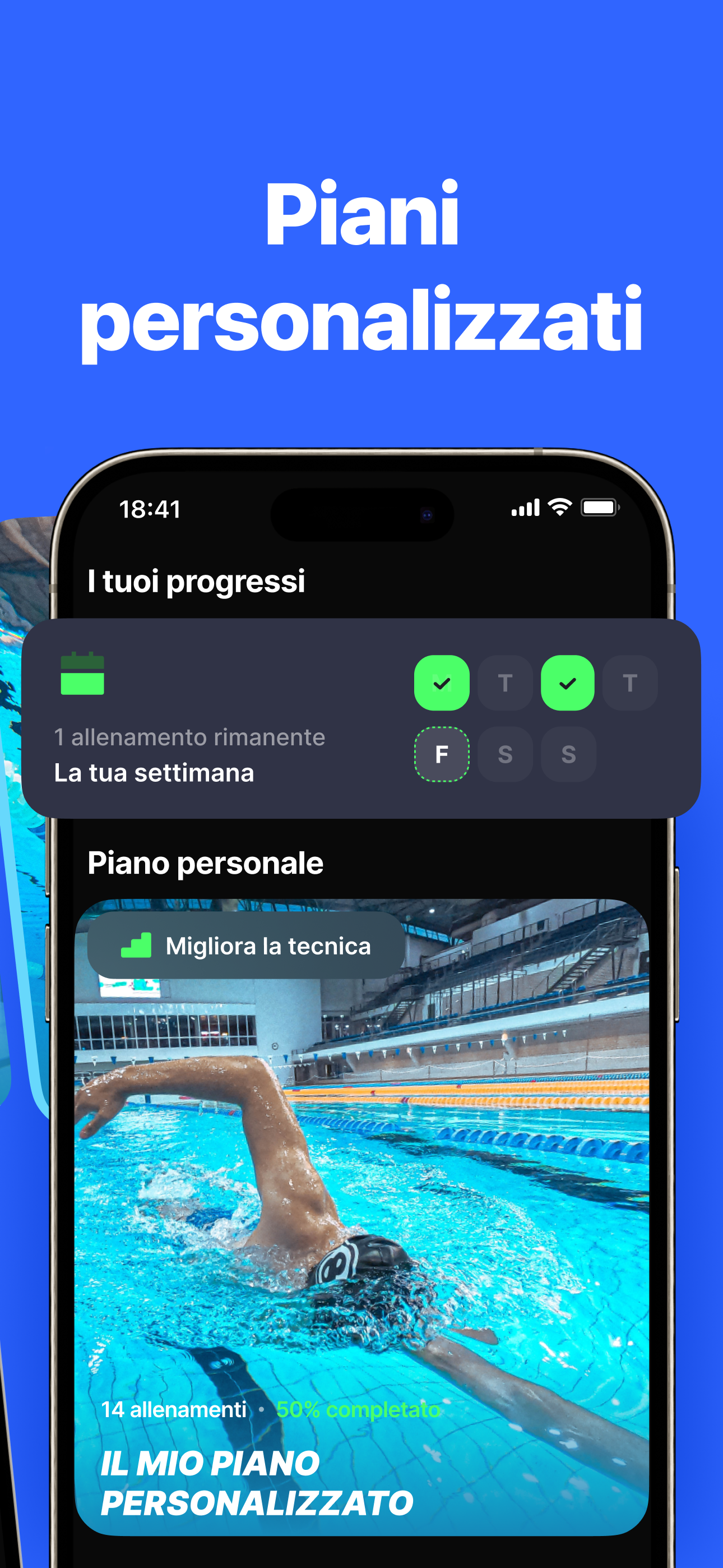 Ottieni un coach di nuoto digitale che ti aiuti e ti guidi durante tutto il percorso di allenamento.
