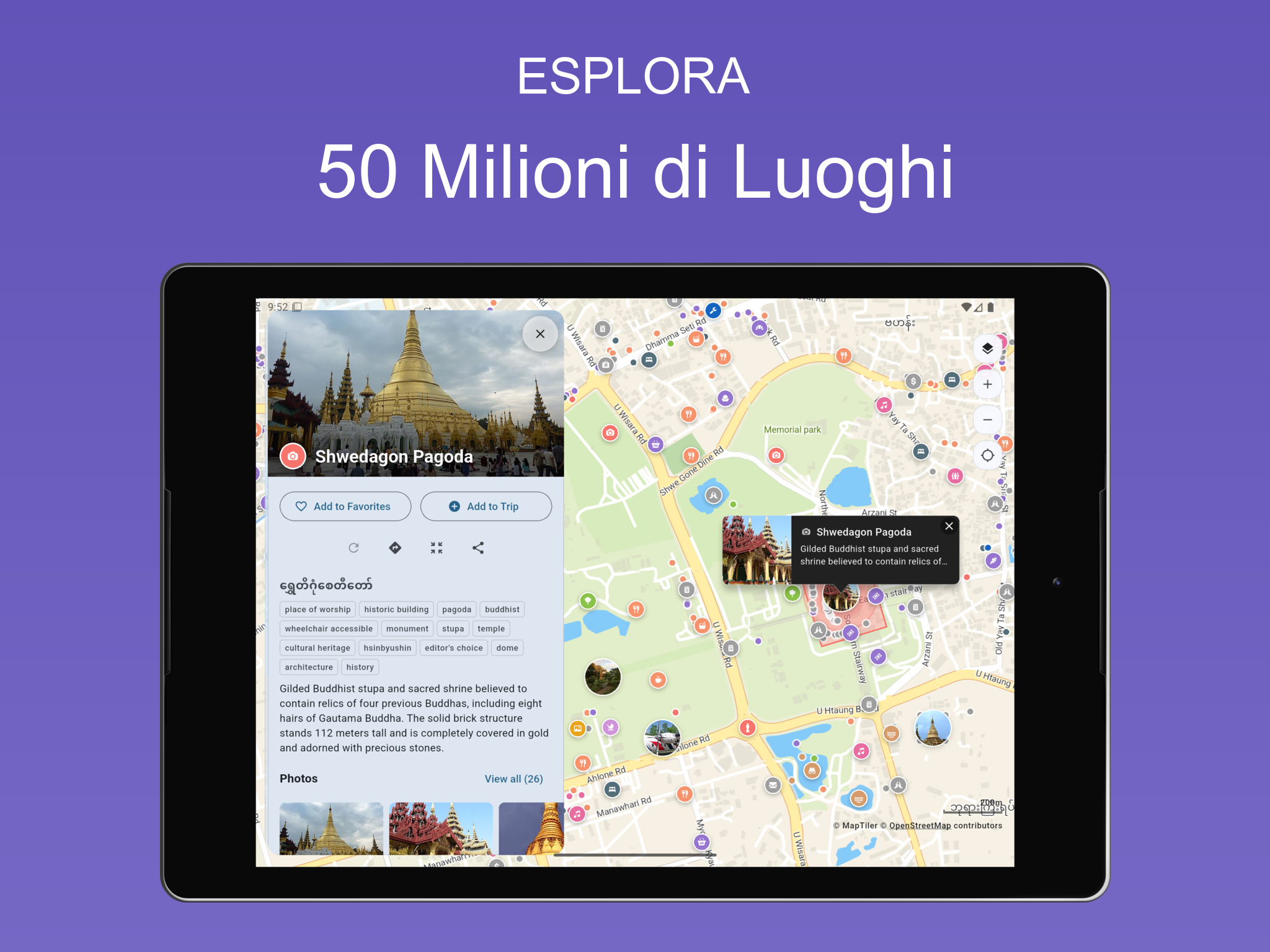 Il nuovo Tripomatic è qui! Il tuo fidato pianificatore di viaggi è ancora migliore con funzionalità migliorate e pianificazione viaggi con AI. Scopri attività entusiasmanti ovunque tu vada. Pianifica itinerari di viaggio dettagliati con il pianificatore di itinerari Tripomatic (precedentemente Sygic Travel). Naviga con utili guide di viaggio. L'app definitiva tutto-in-uno per ogni viaggiatore. PIANIFICATORE DI VIAGGI CON AI Crea un itinerario dettagliato giorno per giorno per il tuo viaggio con il nostro pianificatore di viaggi facile da usare. Ottieni aiuto dall'AI per una pianificazione ancora più veloce. Visualizza i tempi di viaggio stimati e le distanze a piedi per mantenere i tuoi piani realistici. Invita amici a collaborare sui tuoi viaggi. Tieni traccia dei costi e aggiungi note per avere tutto a portata di mano. MAPPE OUTDOOR, INVERNALI E SATELLITARI Scegli tra diverse mappe di viaggio tra cui mappe outdoor, mappe invernali adatte per lo sci e mappe satellitari. MAPPE OFFLINE MONDIALI Passa a Tripomatic Premium per utilizzare l'app senza connessione internet, inclusi download illimitati di mappe offline e navigazione a piedi. Ottieni mappe offline per tutte le destinazioni nel tuo itinerario di viaggio - dalle destinazioni urbane come Atene, Tel Aviv, Vienna e Tokyo a fughe nella natura in Scozia, Koh Lanta, Madeira e Santorini. 50 MILIONI DI LUOGHI Che tu sia in un tour turistico, in un viaggio di shopping o in una fuga romantica per il weekend, abbiamo tutto ciò di cui hai bisogno. Tripomatic copre città famose come Singapore, Sydney, Dubai, Madrid, Gerusalemme, Praga, Marrakech, Il Cairo o Istanbul, oltre a gemme nascoste in tutto il mondo. GUIDE DI VIAGGIO Diventa la tua guida turistica. Collezioni come 'Le Migliori Spiagge' o 'Architettura Moderna' rendono facile scoprire luoghi interessanti. Le guide di viaggio sono disponibili per migliaia di città tra cui Londra, Parigi, New York, Roma, Barcellona, San Francisco o Las Vegas. UTILIZZA SU TUTTI I DISPOSITIVI I tuoi viaggi creati su Tripomatic (precedentemente Sygic Travel) si sincronizzeranno automaticamente tra tutti i tuoi dispositivi e il pianificatore web disponibile su https://maps.tripomatic.com TRIPOMATIC PREMIUM Con Tripomatic Premium, sbloccherai tutte le funzionalità di Tripomatic, inclusa la pianificazione viaggi con AI su tutti i dispositivi connessi con lo stesso account. Inizia con una prova gratuita per esplorare tutte le funzionalità premium. Iscriviti e paga tramite il tuo account Google Play. Dopo la fine della prova gratuita, il pagamento verrà addebitato sul tuo account Google Play alla conferma dell'acquisto. L'abbonamento si rinnoverà automaticamente a meno che non venga annullato almeno 24 ore prima della fine del periodo corrente. Il tuo account verrà addebitato per il rinnovo entro 24 ore prima della fine del periodo corrente. Puoi annullare la prova gratuita in qualsiasi momento prima che termini per evitare addebiti. Gestisci gli abbonamenti e disattiva il rinnovo automatico dopo l'acquisto andando alla pagina 'Gestisci Abbonamento' nelle impostazioni di Tripomatic. CONTATTACI Vedi ulteriori informazioni su https://tripomatic.com Dai un'occhiata alle nostre mappe di viaggio online su https://maps.tripomatic.com Contatta il supporto su https://support.tripomatic.com