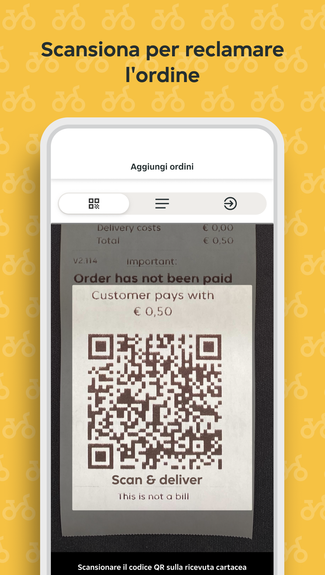 Scansiona il codice QR presente sulla ricevuta dell’ordine
