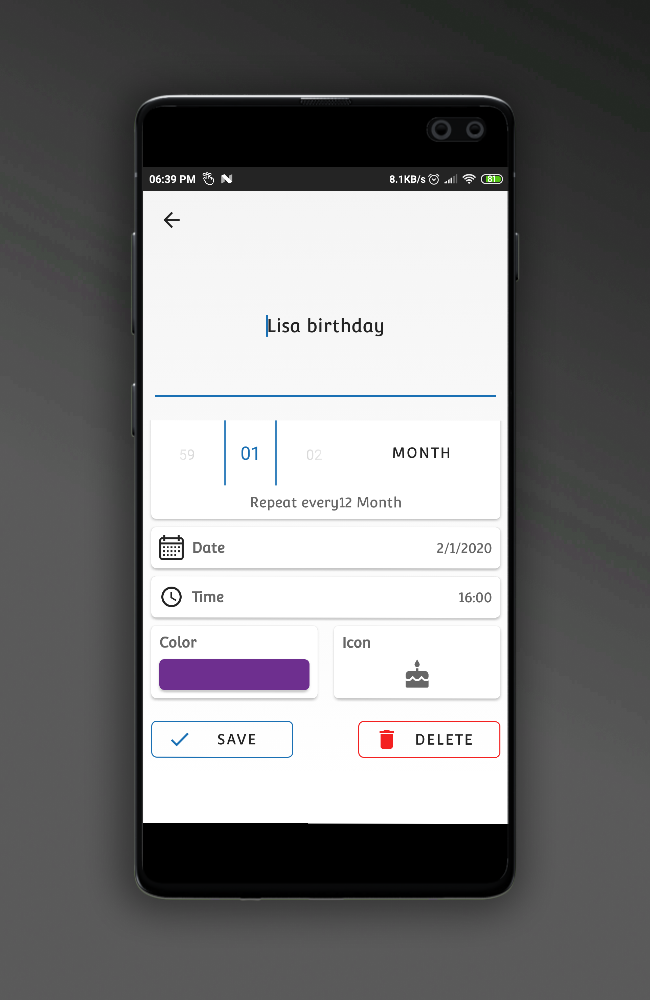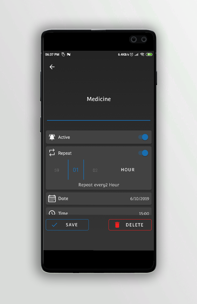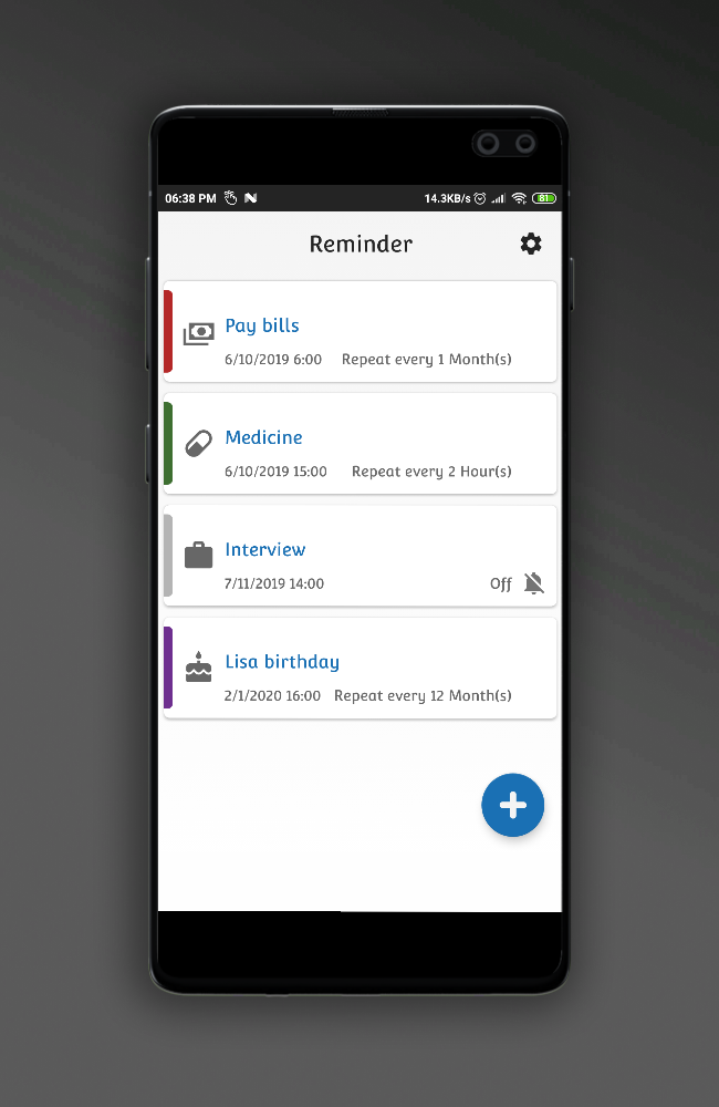 Con un'interfaccia utente semplice e bella, puoi creare facilmente attività e impostare una data di scadenza, quindi l'app te lo ricorderà con una notifica di allarme al momento e continuerà a ricordarti ogni 15 minuti fino al completamento dell'attività.