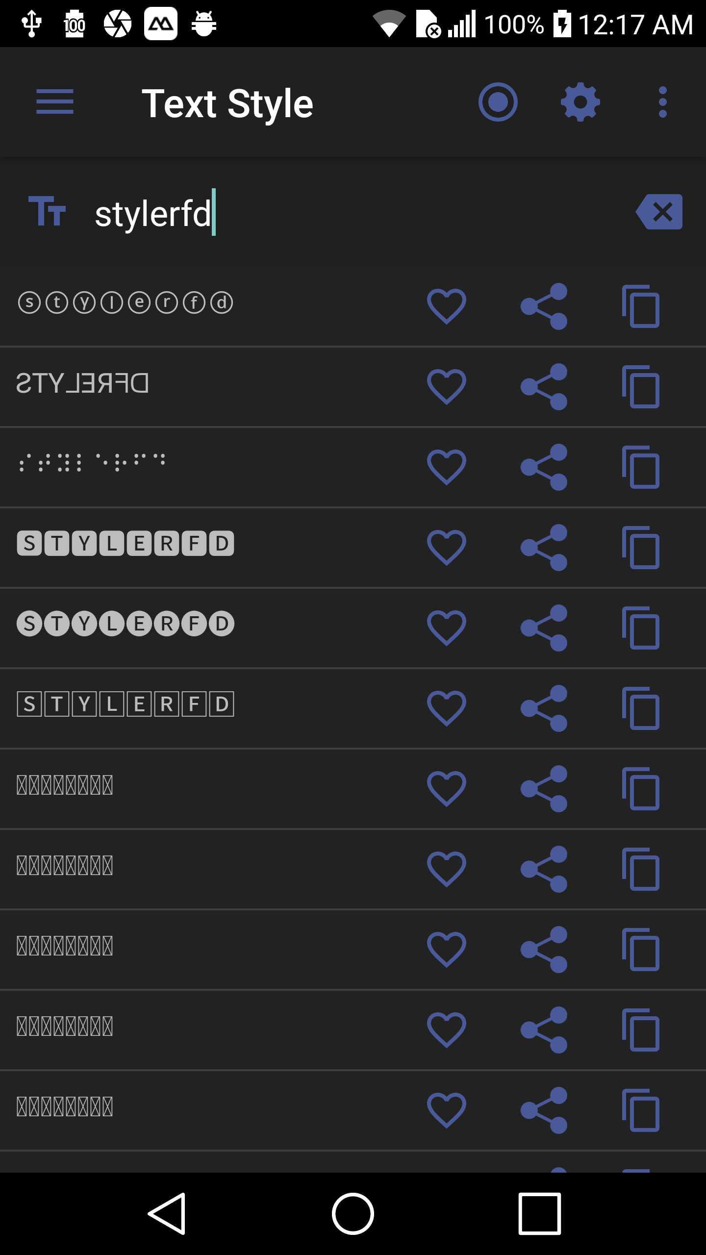 Text Style is a handy tool that helps convert normal text to different stylish, thus it helps create text with cool symbol and fancy font Features - Cool Fonts. - Quickly copy/share/send to any app. - Manage a list of your favorite styles. - Block unblock Text Style Bubble for the apps. - Write and send stylish text on WhatsApp, Snapchat, Instagram Telegram, Facebook This app uses Accessibility services.” to change your text into your favorite style via Text Style Bubble when you don't want to open the app. Keywords : stylish text text styles stylish text design text converter stylish name name style cool symbols text decoration stylish font
