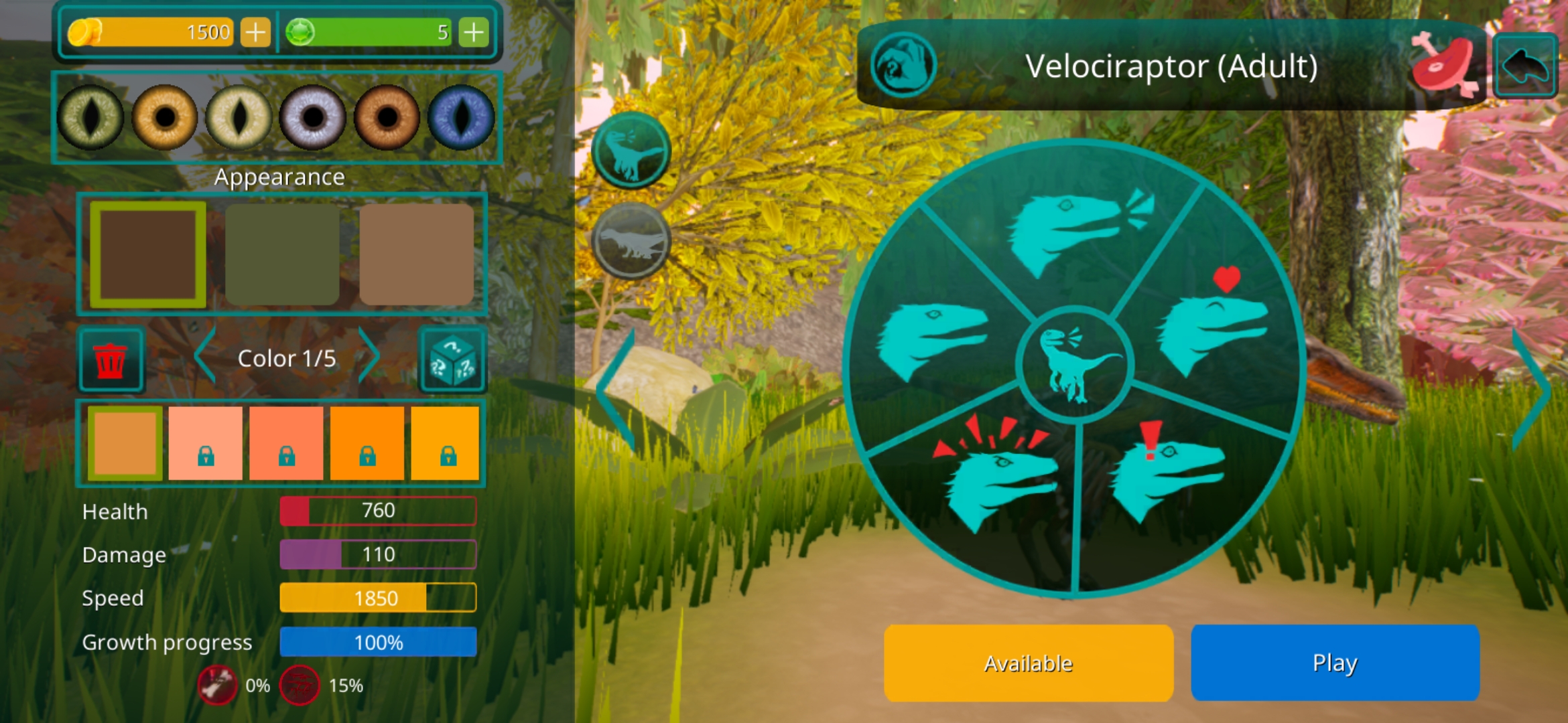 Il personaggio principale del gioco Dinosaurs è un dinosauro che di solito vediamo nei film e nei libri. È un carnivoro del Cretaceo e del Giurassico. Dinosauri che hanno uno stile di gioco diverso, ad esempio, puoi giocare come un predatore medio come Velociraptor o Dilophosaurus, avrai una vita di dinosauro più difficile, sarà più difficile per te trovare cibo e sopravvivere, ma puoi creare branchi con altri Raptor o Dilophosaurus, per rendere la vita più facile a tutti voi.