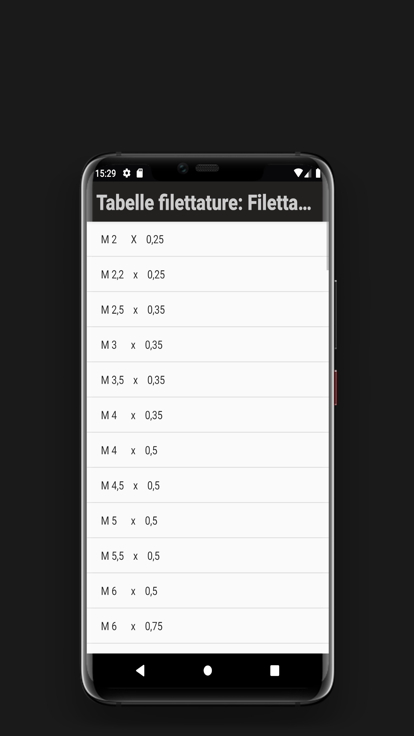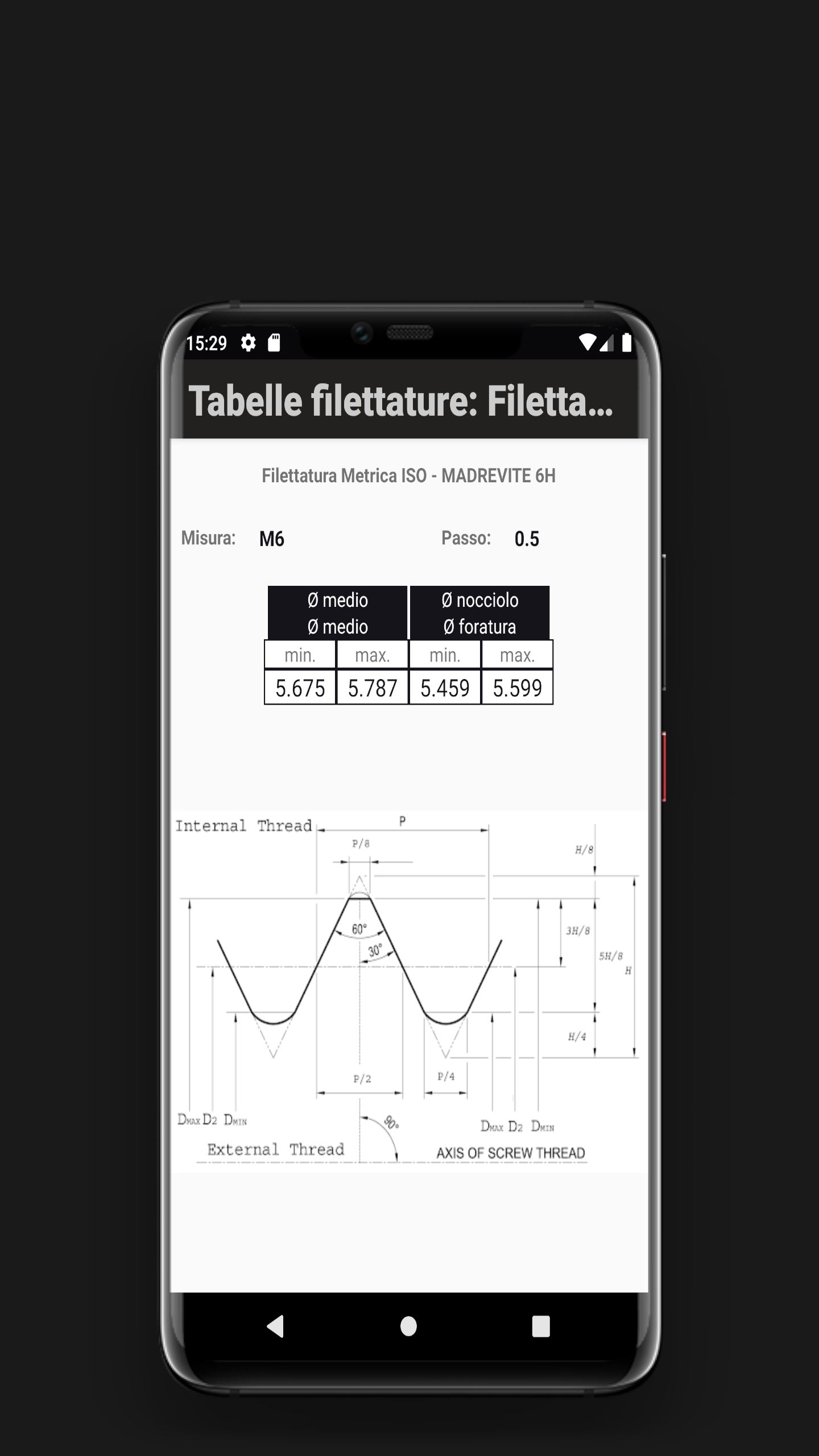 Tabelle filettature: Filettatu