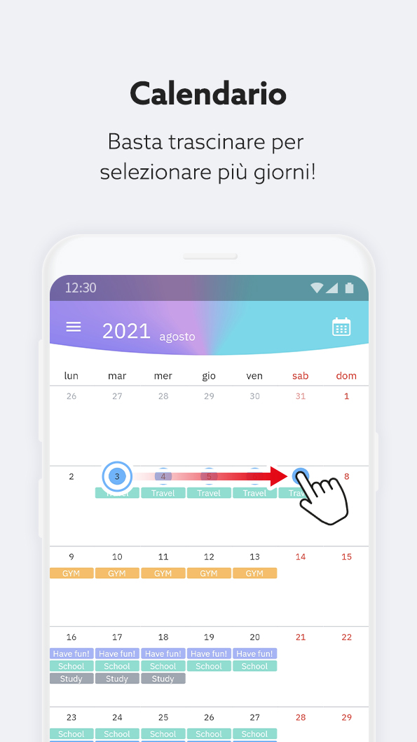 - Premi e trascina per selezionare più giorni.