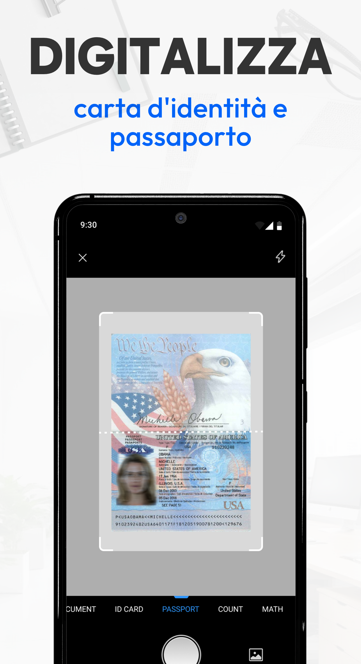 Gestisci tutte le esigenze di scansione con precisione. Scegli tra QR code, libro, documento, carta d'identità, passaporto, misurazione area, contatore oggetti e scanner matematico. Scansiona un contratto multipagina, cattura rapidamente la carta d'identità per archiviazione digitale o misura l’area di un progetto.