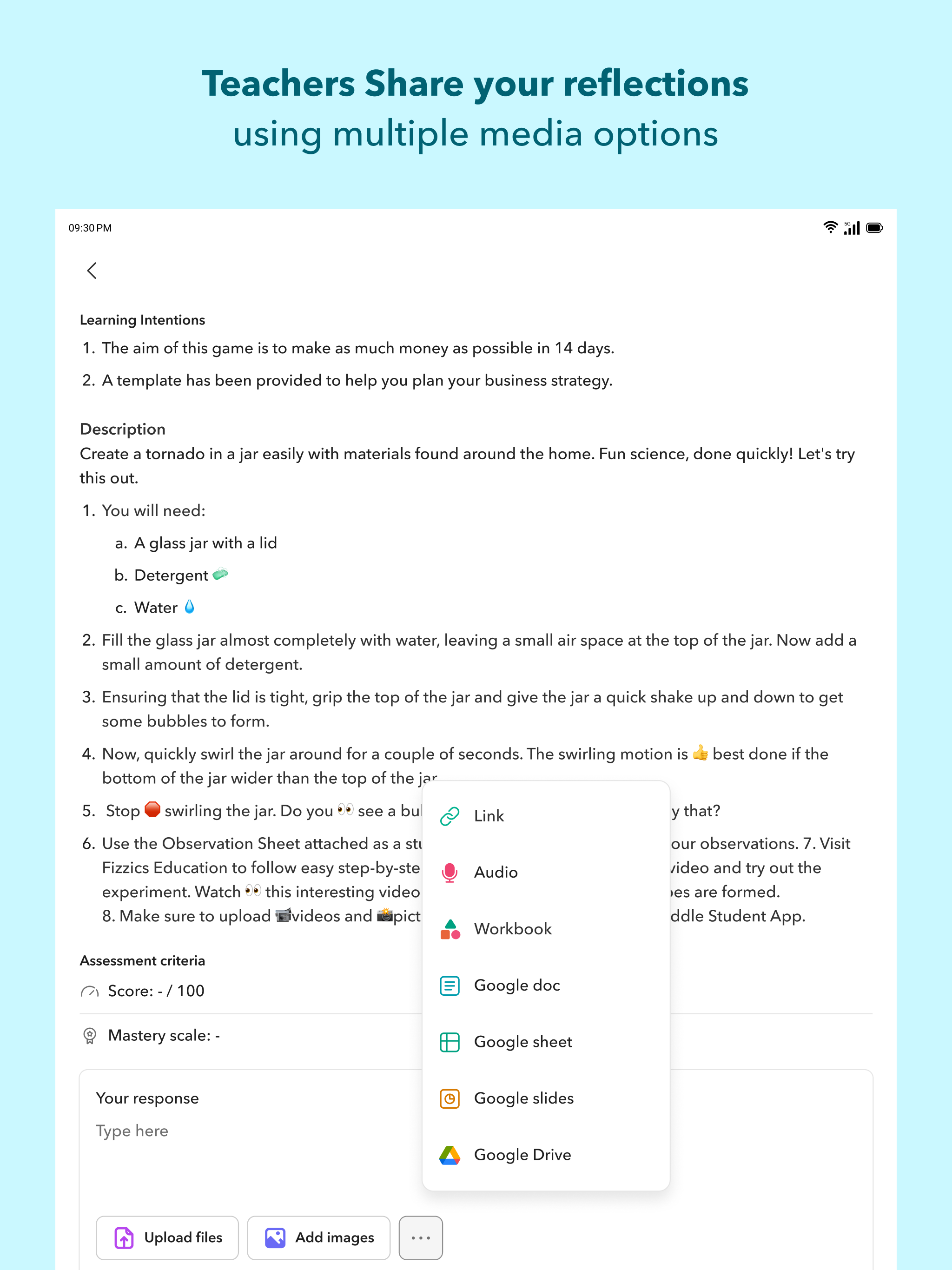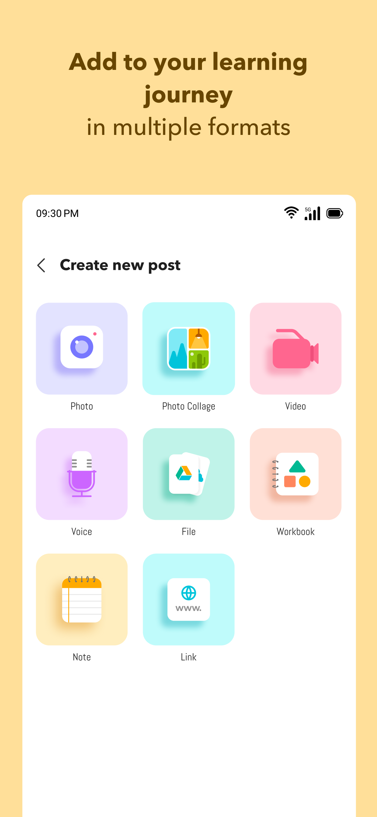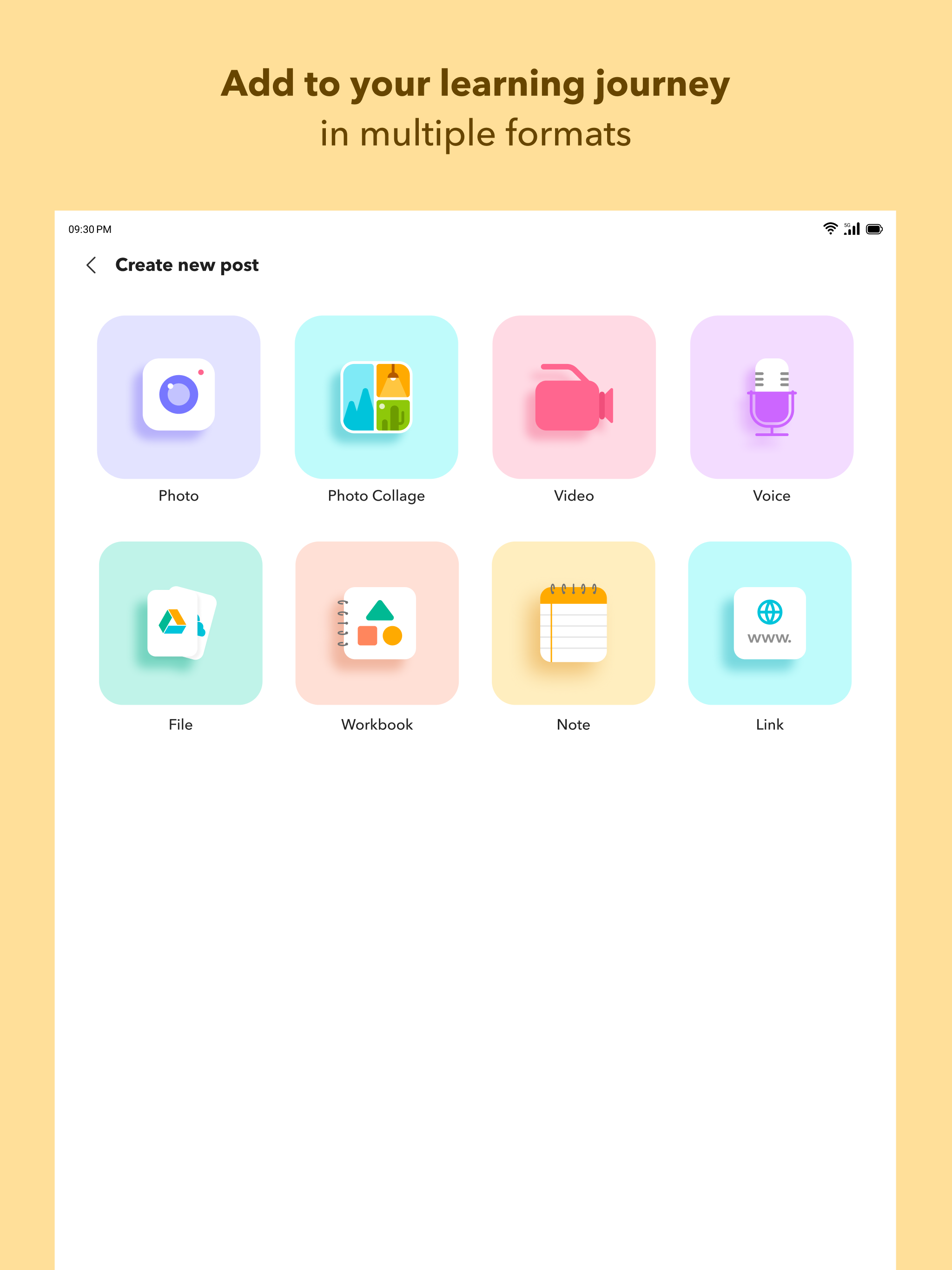 * Documenta il tuo percorso di apprendimento sotto forma di foto, video, gallerie, note audio, ecc.