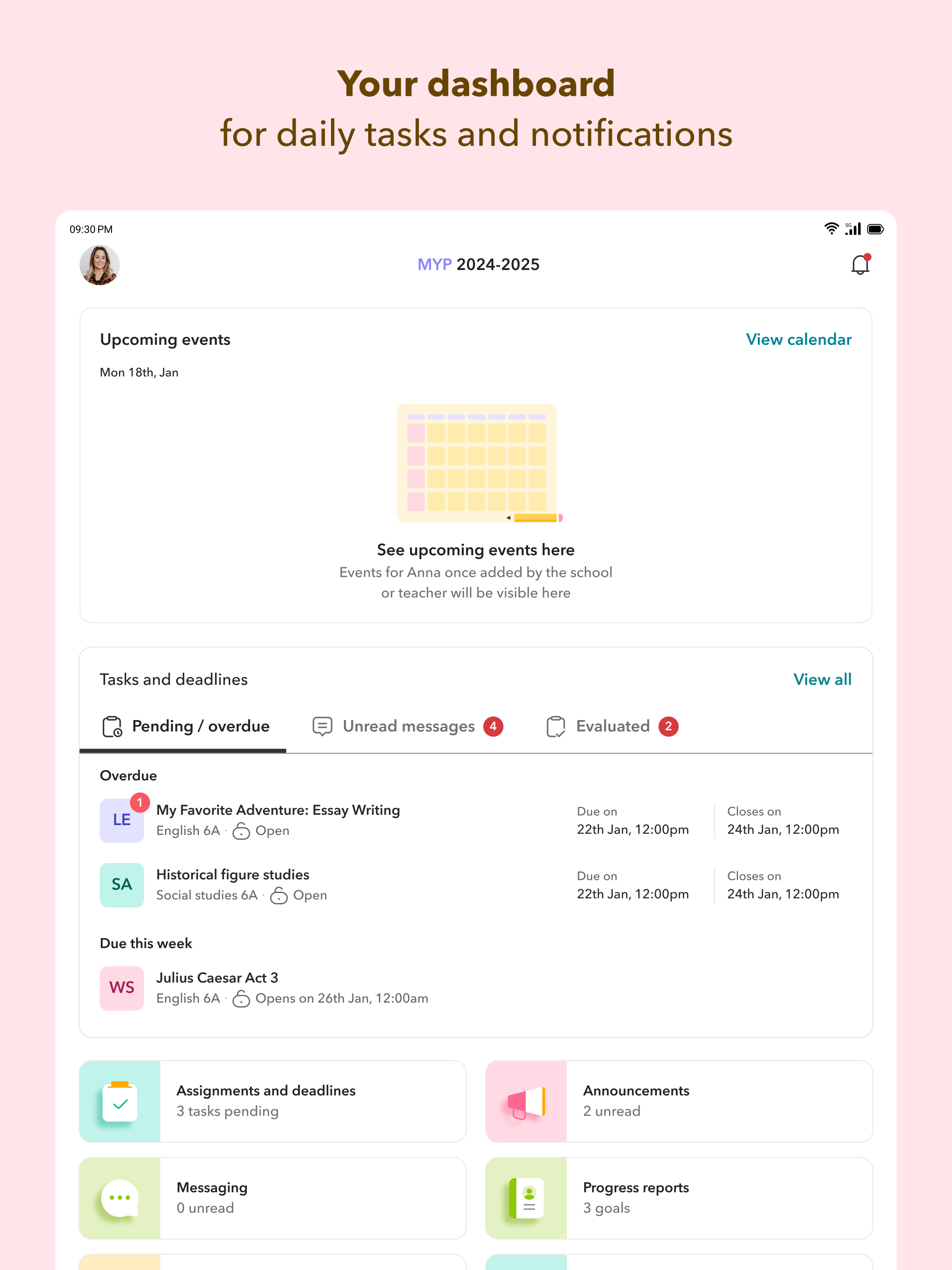 * Accedi alle valutazioni fatte dai tuoi insegnanti di classe e invia invii tempestivi