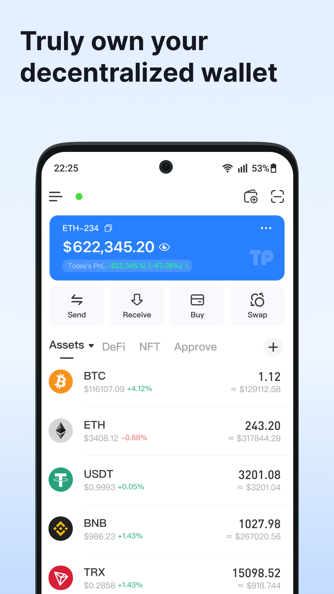 TokenPocket è il portafoglio decentralizzato multi-catena leader a livello mondiale e gateway per il mondo Web3. Dal suo lancio nel 2018, ha fornito servizi di criptovaluta in autocustodia a oltre 25 milioni di utenti in tutto il mondo. TokenPocket è il portafoglio più competitivo per BTC, ETH, BNBCHAIN, Polygon, Solana, TRON, Dogecoin e catene Layer 2 come Arbitrum, Ottimismo e base. Connettiti a oltre 1.000 reti, migliaia di DApp e all'intero ecosistema Web3. Conserva, scambia, trasferisci, ricevi e scambia criptovalute all'interno del portafoglio, godendo di un servizio di trading e mercato decentralizzato sicuro e unico.