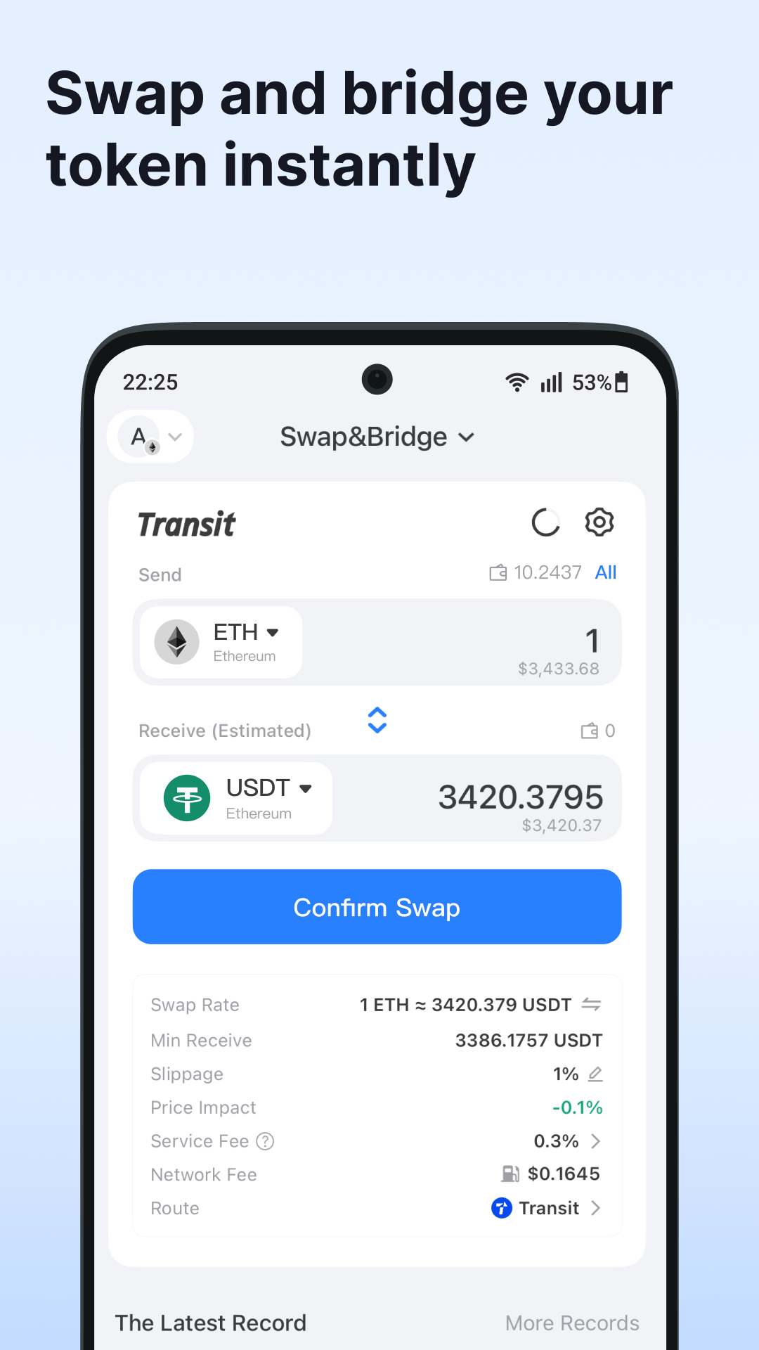 • Scambio istantaneo e cross-chain: aggrega la liquidità di Uniswap, Jupiter, Pancake, Raydium e altri DEX per un trading ottimizzato su più catene ai migliori prezzi. Offriamo anche servizi professionali di cross-chain bridge per garantire una liquidità patrimoniale senza soluzione di continuità.