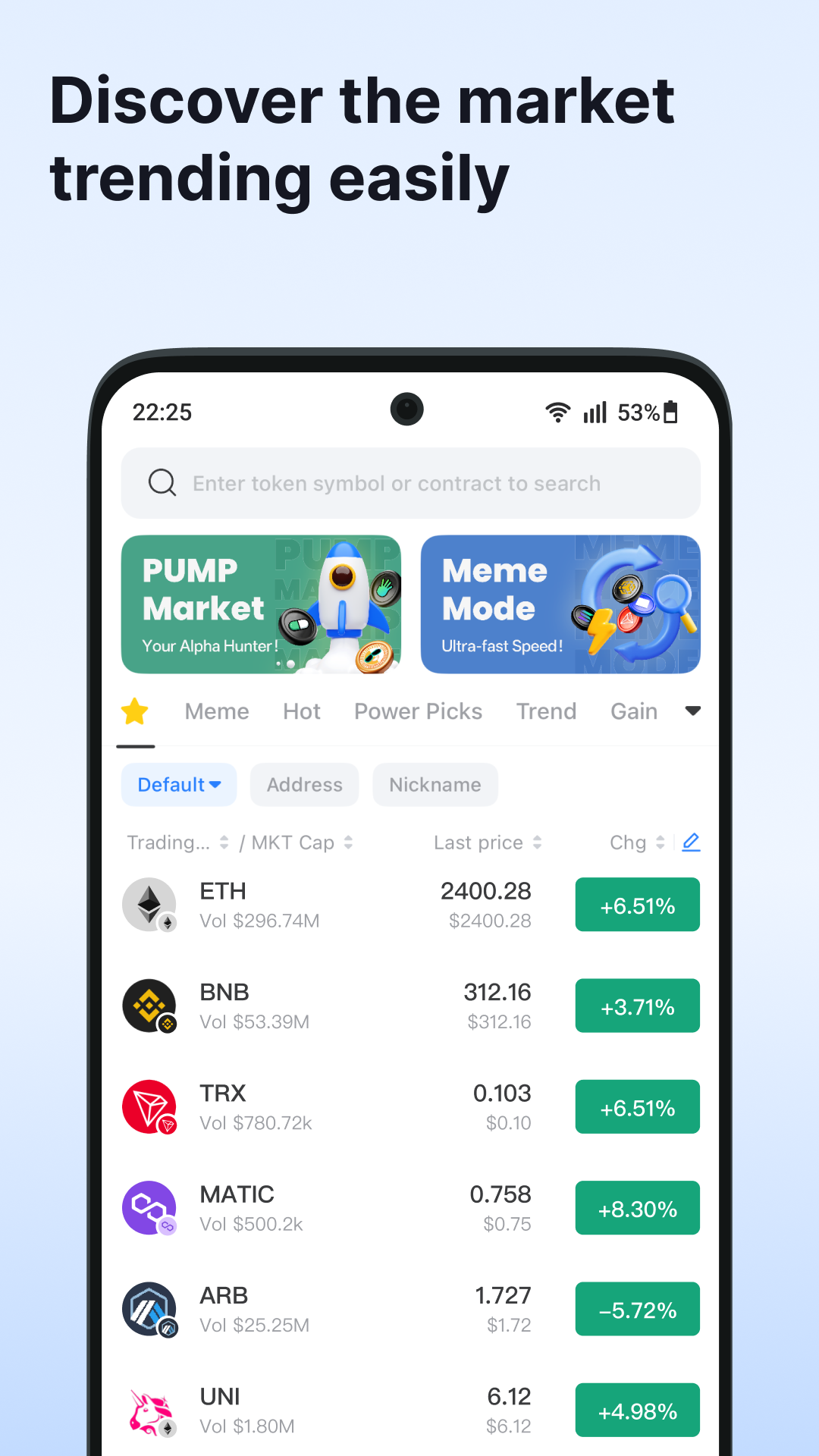 • Tendenze di mercato: accedi ai dati in tempo reale, scopri i token di tendenza, visualizza le candele, le fluttuazioni dei prezzi, la cronologia delle transazioni e la liquidità, offrendo agli utenti l'esperienza di trading decentralizzata più accurata.