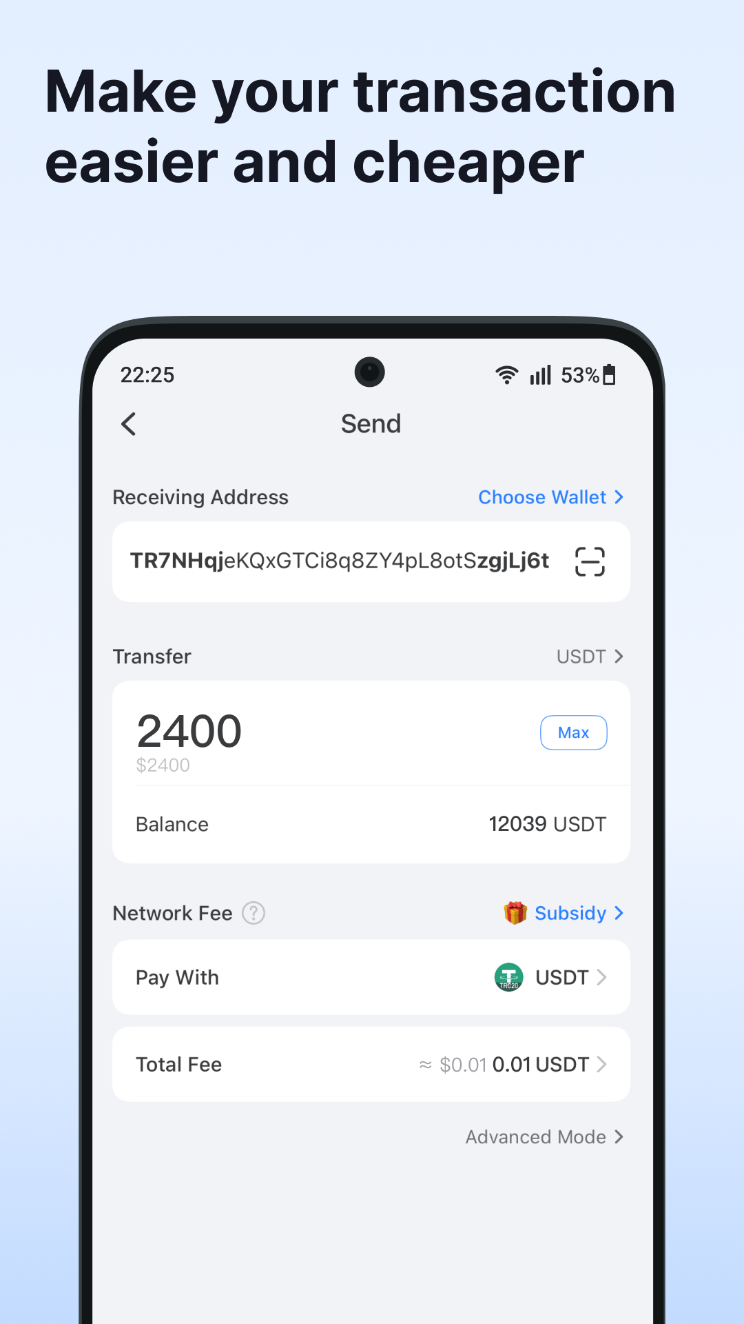 • Sussidio per le tariffe di rete: supporta il noleggio dell'energia della rete TRON e i sussidi per le tariffe, riducendo i costi di transazione fino al 75%.