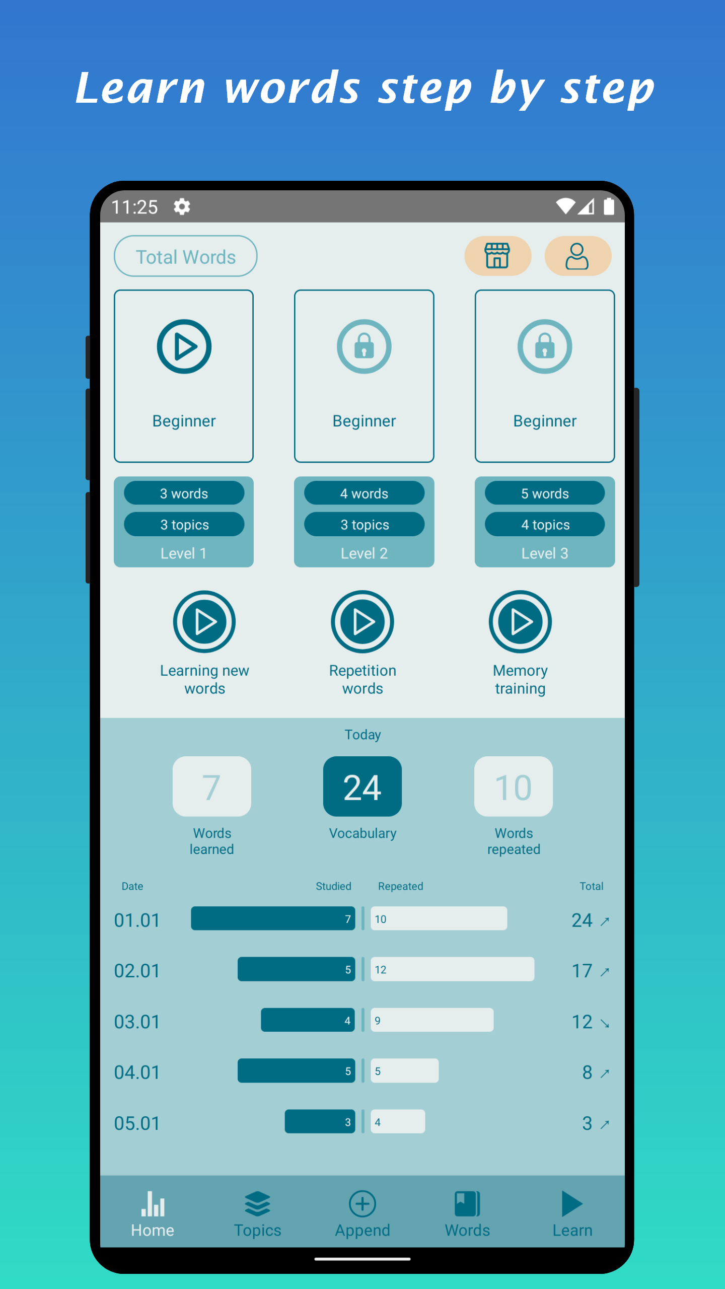 Total Words—improve vocabulary