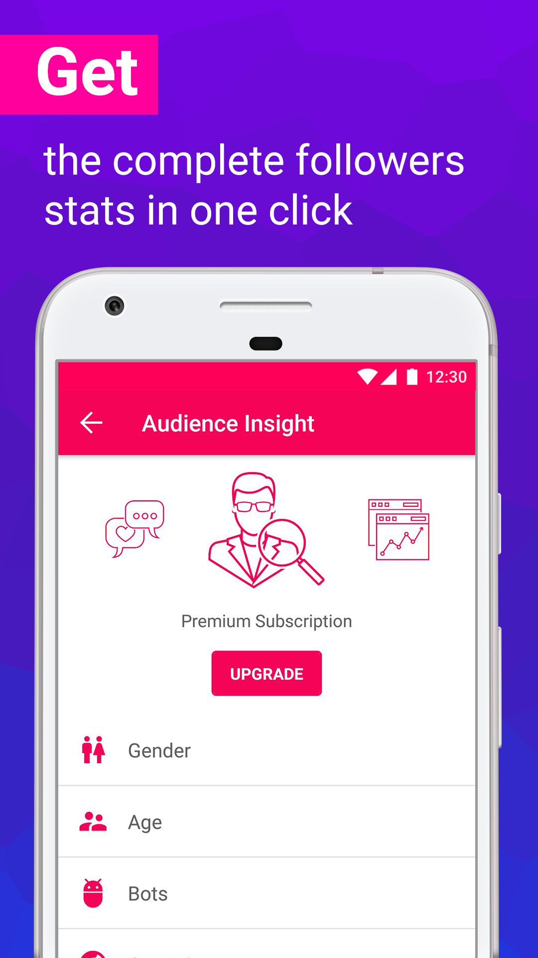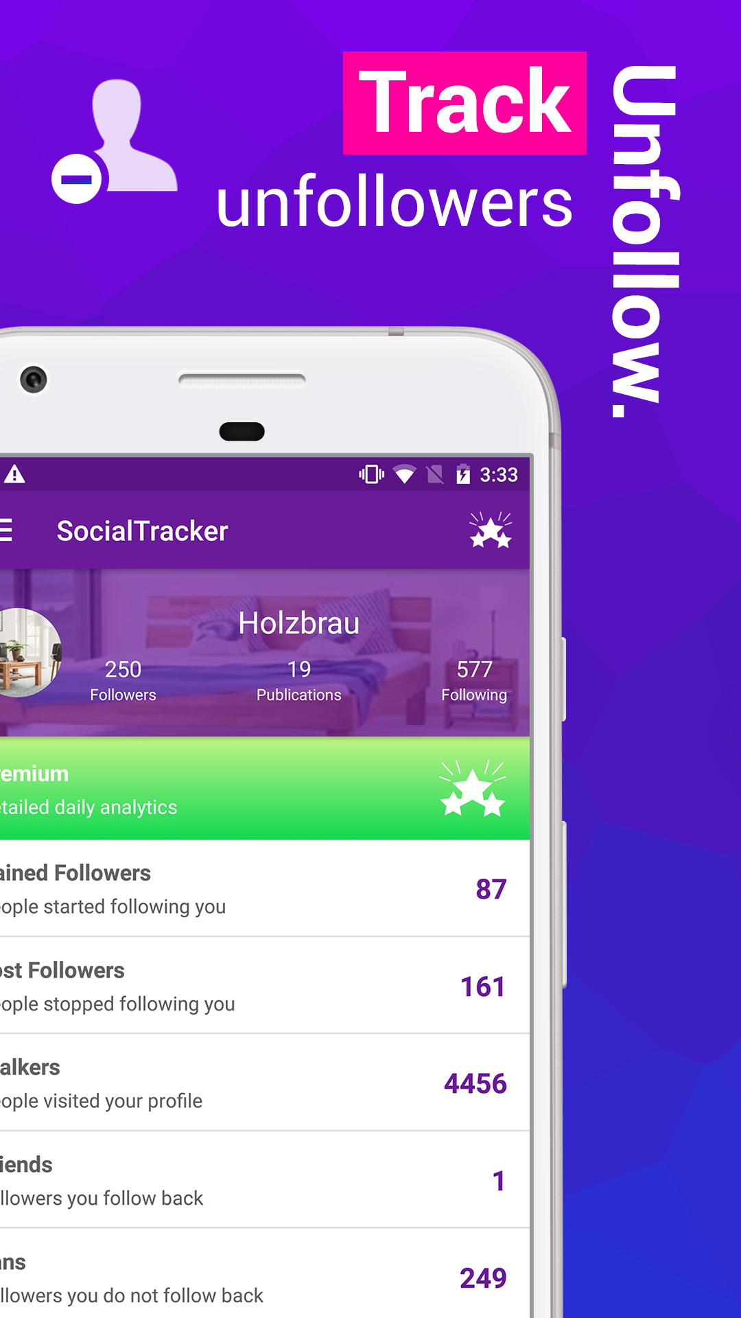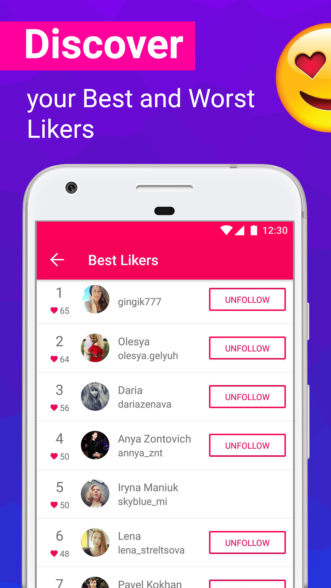 La nostra applicazione insta tracker fornisce instafollow analytics per Instagram! Ci sono insta stats, instagram analytics, informazioni su "chi mi segue" e "quién no me sigue en instagram", instagram likes, i tuoi hashtag per instagram, i tuoi seguaci per instagram e molto altro ancora. Prendi un rapporto dettagliato instagram sulle attività dei tuoi seguaci nel tuo profilo insta likes! Questo instagram report si basa su: - statistiche delle tue foto popolari in instagram, - insta commenti, - insta likes, - ig followers e aumentare seguaci instagram, - insta piace, - "che ha visitato il mio profilo di instagram", "chi mi segue" aumentare seguaci instagram, "unfollowed me" (unfollowers). Sulla base di un'analisi del tuo Instagram, crea contenuti utili in modo che la tua popolarità crescerà quotidianamente. Otterrete più seguitori di gi e meno unfollowed. Porta più instafollow realmente al tuo profilo con il nostro social tracker per Instagram! Oggi, le reti sociali sono parte integrante delle nostre vite. Possiamo essere in contatto con i nostri amici che vivono in altri paesi insta likes. Inoltre, la rete sociale è un'attività aperta per molte aziende che vogliono diffondere la loro influenza su scala globale followings. Ad esempio, un'azienda ha creato un profilo di instagram per i propri produttori e ha attirato nuovi seguaci. È un ottimo posto per guadagnare nuovi clienti (ig followers) e lavorare con potenziali clienti. Le aziende utilizzano storie insta, hashtags per instagram, scrivere blog insta, caricare immagini per i loro seguaci insta likes, comunicare attraverso commenti insta unfollowers. Come al solito, tali società fanno il proprio profilo insta pubblico e le persone che non sono followers assistant i loro insta blog e guardare attraverso le immagini di prodotti facilmente insta stories. Se amano la pagina, la maggior parte diventerà nuovi seguaci. Chiedono domande diverse sulle merci della società, lasciano commenti di insta e danno instagram likes. Una società può anche essere un seguace, visitare diversi profili, dà instagram likes, lascia insta commenti e scrive i messaggi. Per un lavoro di successo l'azienda ha bisogno di un più seguaci su instagram e di analytics for instagram. Gli utenti non followers (unfollowers) e follower insight, che non sono aumentare seguaci instagram e hanno falsi conti. Tracciatore per estadísticas de instagram (ig followers tracker) o app seguaci instagram. Il nostro analizzatore di instagram è un tracker insta likes e un tracker ig unfollowers, che possono fornire followings per tutte le tue esigenze di business. Seguaci per instagram e scopri chi è il tuo insta reale seguaci! L'app app seguaci instagram App - assistente segreto personale. Analisi dettagliata del tuo profilo instagram! Viviamo in grande occasione. Oggi tutti possono diventare un blogger popolare. Per attrarre insta stories devi essere una persona con individualità e fornire informazioni per il tuo pubblico. Who unfollowed me e "eliminar seguidores de instagram" seguaci per instagram. Oggi stiamo seguendo le tendenze di Instagram, pensando a come aumentare le quantità dei nostri insta stories e ad attirare seguaci fantasma su instagram. Siamo costantemente preoccupati per il numero di seguaci. Inoltre, ci sentiamo tristi quando vediamo chi non è più il nostro seguace. Più seguaci su instagram sono un mal di testa e un problema per insta blogger. Solo statistiche completi followers stats, statistiche dei seguaci unfollowers, statistiche non-seguaci e analytics per instagram possono mostrare il tuo dettagliato insta report. Sulla base di queste informazioni potrai vedere cosa succede dopo. Utilizza il nostro app seguaci instagram - il miglior analizzatore di follow-up per il tuo profilo!