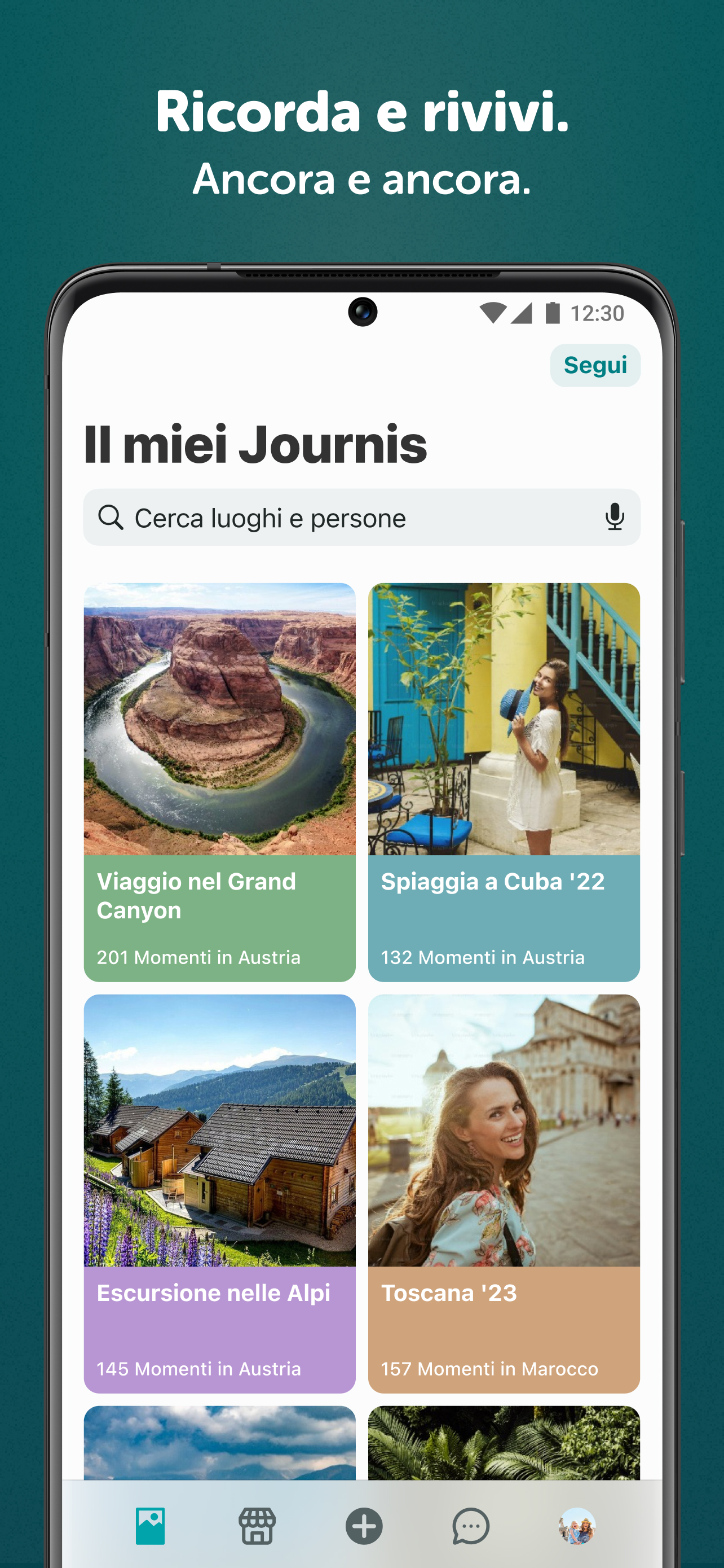 Con Journi catturi la tua vita in bellissime timeline con foto, note, mappe e tanto altro. Trasformale in fotolibri cartacei in pochi secondi e definisci facilmente quali foto sono private! Usala offline, crea timeline e sincronizza con tutti i dispositivi! Sfrutta al meglio le tue foto e ricorda tutti i momenti della tua vita con Journi! È gratis.