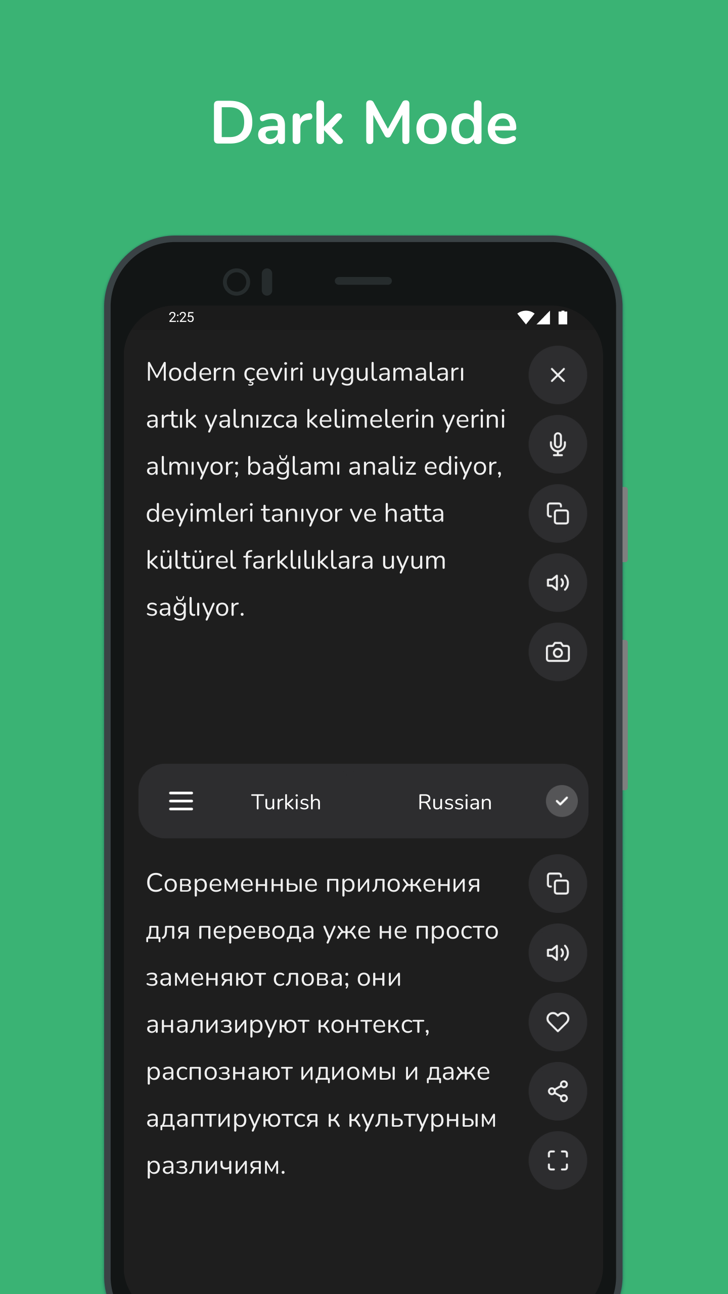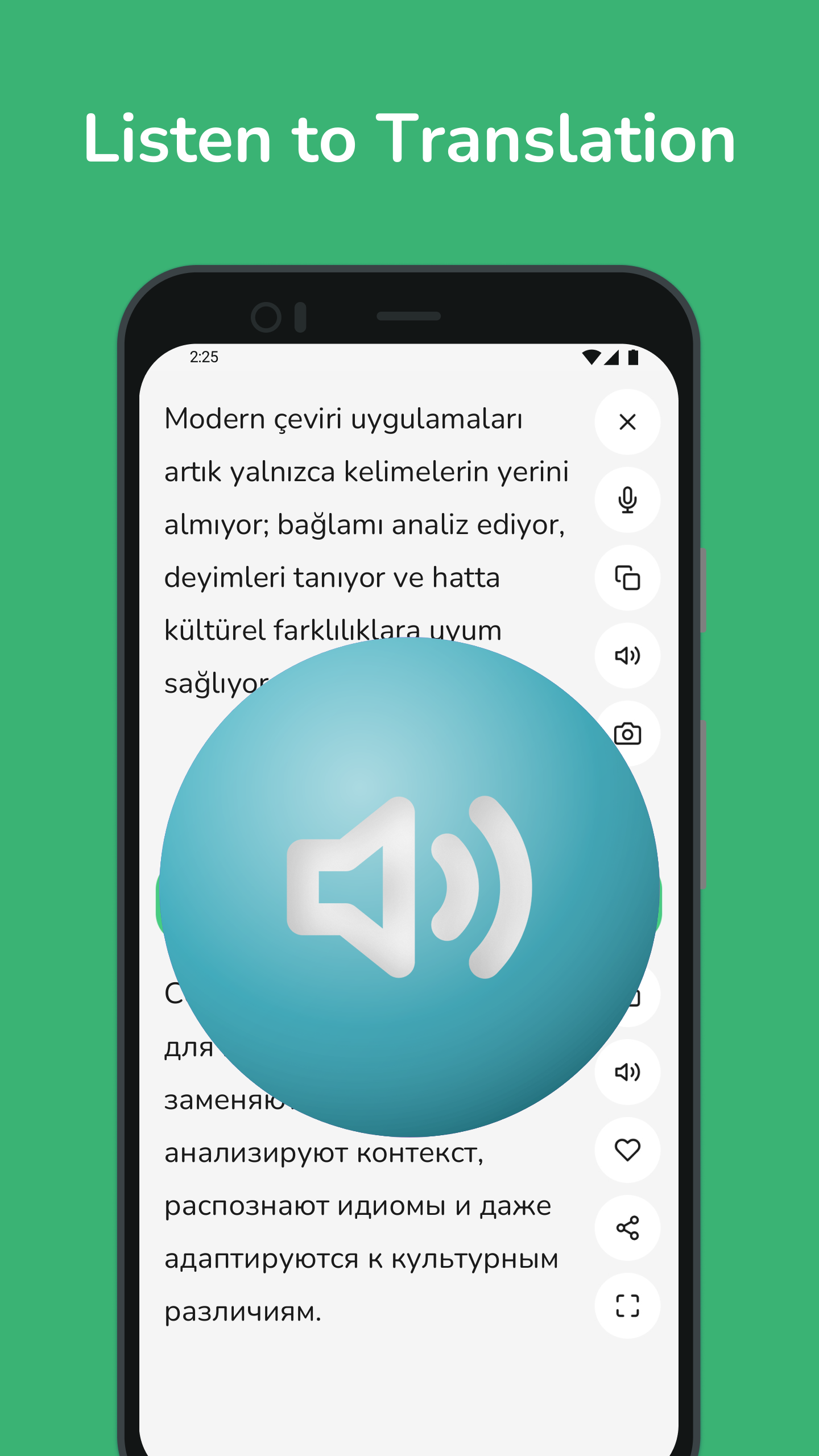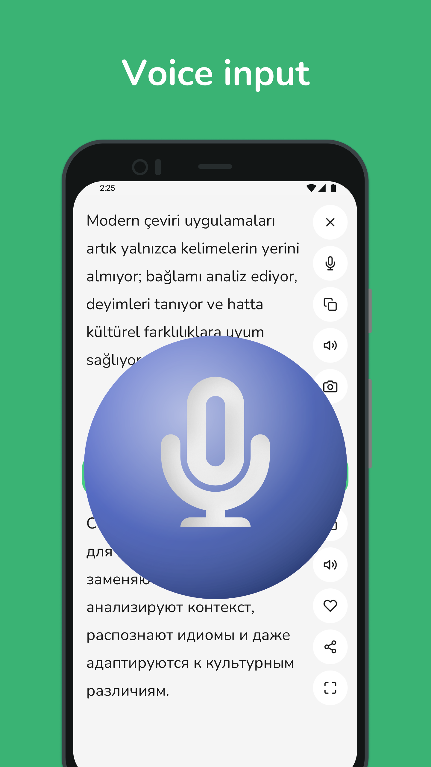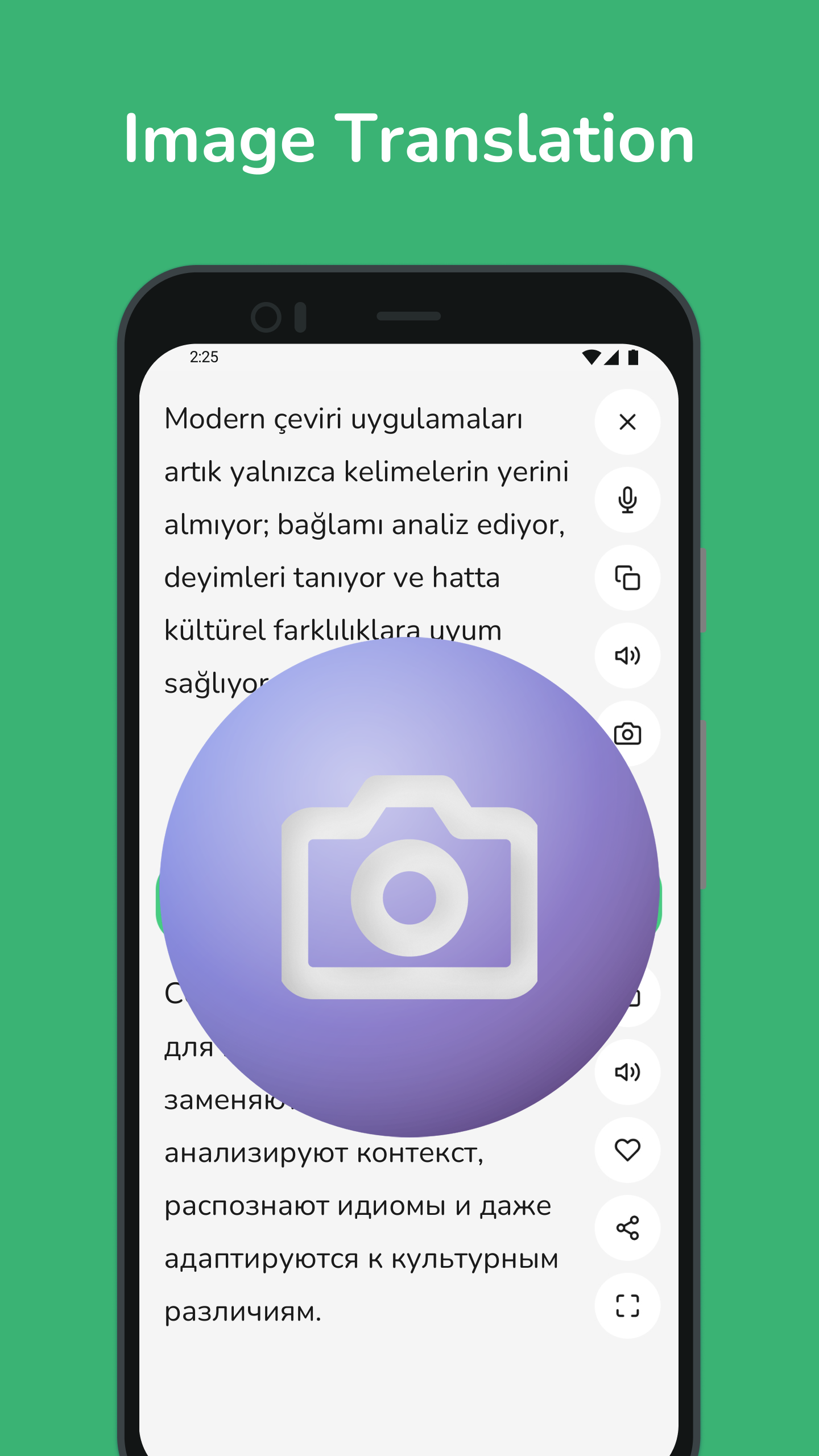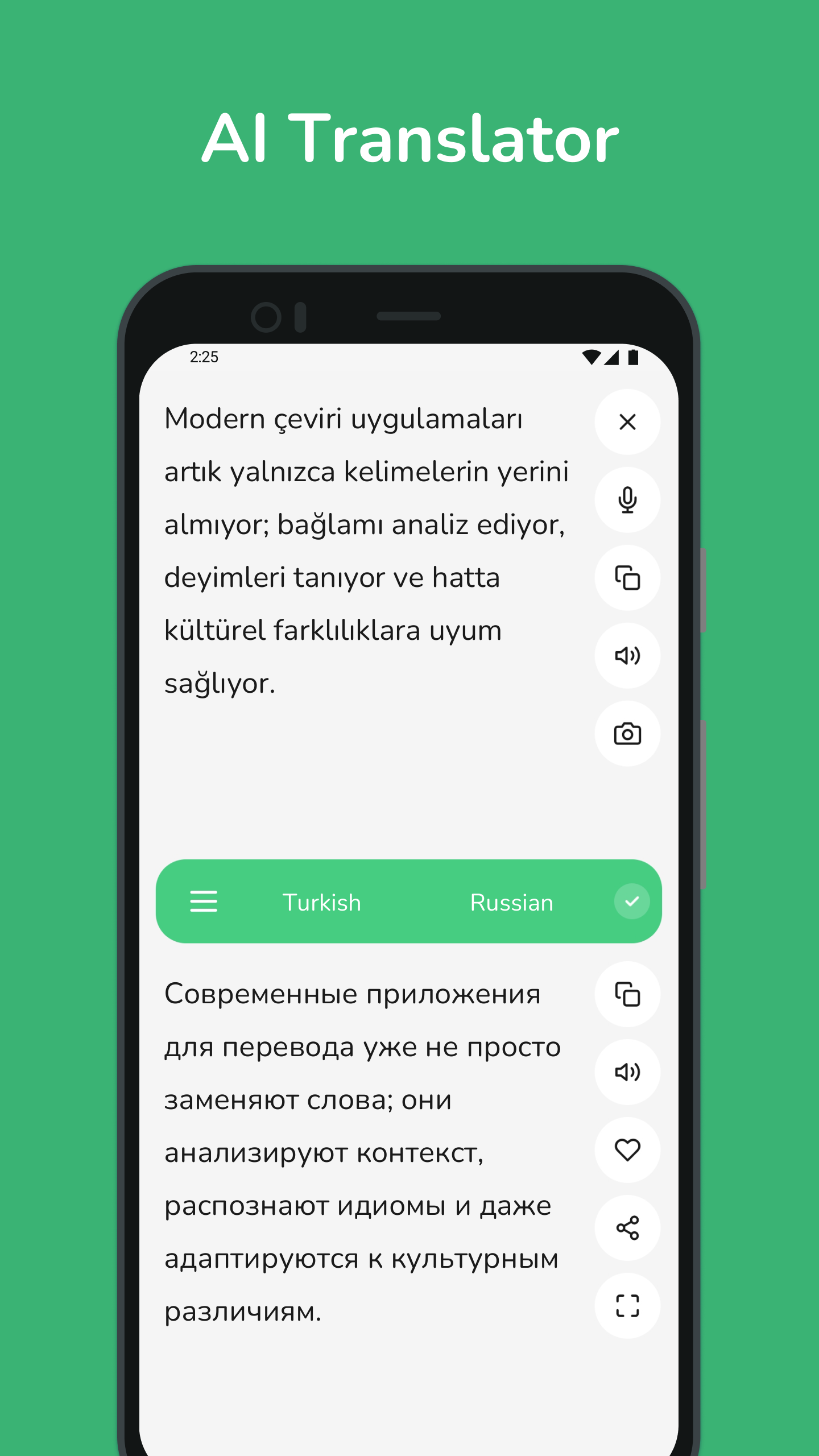 Sprigiona il potere della lingua con il nostro traduttore turco-russo e russo-turco all'avanguardia! Che tu sia uno studente, un viaggiatore o un professionista, questo traduttore basato sull'intelligenza artificiale è progettato per rendere la comunicazione semplice e conveniente. Con la nostra interfaccia intuitiva, puoi tradurre facilmente parole, frasi ed espressioni tra turco e russo in tempo reale. La nostra intelligenza artificiale avanzata garantisce traduzioni accurate, tenendo conto delle sfumature di entrambe le lingue. Caratteristiche principali: • Traduzione istantanea: ottieni traduzioni veloci e precise dal turco al russo e viceversa, perfette per l'uso quotidiano. • Riconoscimento del testo dalle immagini: scatta una foto o carica un'immagine ed estrai e traduci istantaneamente il testo: ideale per cartelli, documenti o qualsiasi materiale stampato. • Riconoscimento vocale: parla direttamente nell'app e la nostra intelligenza artificiale tradurrà istantaneamente il tuo discorso, rendendo le conversazioni più fluide. • Traduzione del testo: digita o incolla il testo per una traduzione immediata, aiutandoti a imparare o comunicare in modo efficace. • Traduzione istantanea da testo a testo: traduci il testo direttamente durante la digitazione, risparmiando tempo e garantendo efficienza. • Modalità offline: utilizza l'app senza una connessione Internet: scarica i pacchetti di lingue per l'utilizzo offline, così puoi tradurre sempre e ovunque! • Interfaccia intuitiva: naviga facilmente con un design moderno su misura per tutti gli utenti. • Frasario: accedi a una raccolta curata di frasi comuni per la comunicazione quotidiana, i viaggi o gli scenari lavorativi. • Traduzione di parole con più varianti: utilizza l'app come dizionario per ottenere più opzioni di traduzione per una singola parola, aiutandoti a scegliere quella più adatta. • Cronologia delle ricerche: rivisita rapidamente le tue traduzioni precedenti con una cronologia delle ricerche dettagliata. • Preferiti: salva traduzioni e frasi importanti nei tuoi preferiti per accedervi rapidamente in qualsiasi momento. • Apprendimento basato sull'intelligenza artificiale: la nostra app migliora continuamente le sue traduzioni, adattandosi alle tue esigenze e fornendo una precisione sempre migliore. Che tu stia cercando di migliorare le tue competenze linguistiche, comunicare con gli amici o esplorare nuove destinazioni, il nostro traduttore turco-russo e russo-turco è il tuo compagno linguistico ideale. Scopri il futuro della traduzione con funzionalità all'avanguardia come il riconoscimento del testo dalle foto e l'apprendimento tramite intelligenza artificiale in tempo reale. Scaricalo ora e abbatti le barriere linguistiche con facilità! Perfetto per studenti, viaggiatori, professionisti o chiunque cerchi un traduttore affidabile ed efficace per il turco e il russo. Non perdere questo strumento essenziale per una comunicazione fluida e un riconoscimento istantaneo del testo!