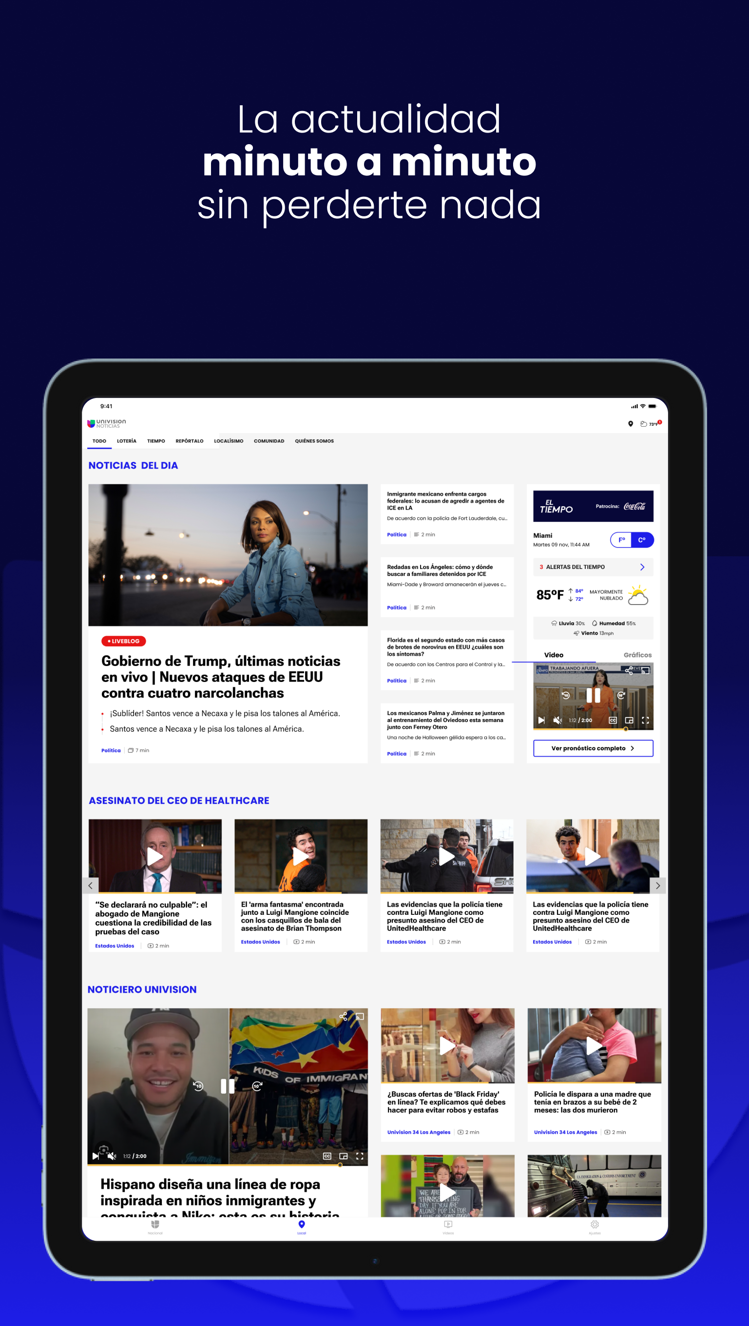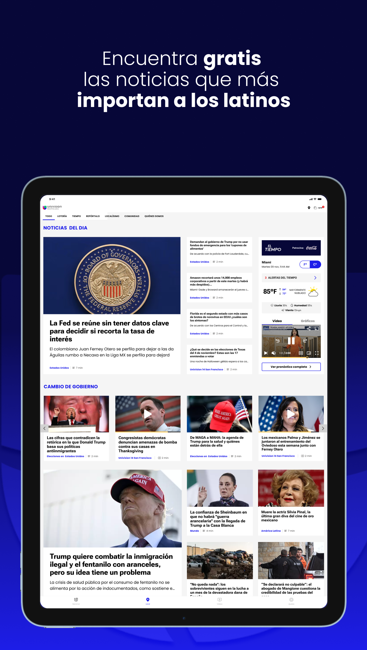 Univision Noticias encontrarás noticias actualizadas para la comunidad hispana in EE.UU. Scopri i dettagli di questo figlio che parla della politica, elecciones 2020, economia, immigrazione, negocios, deportes, finanzas, educación, entretenimiento, salud, economía, música, entre otros. También può entrare nel mondo delle notazioni di lavoro, del clima del clima, dei film e tanto altro. Scoprite le noticias de tu ciudad: Atlanta, Austin, Chicago, Dallas Fort Worth, El Paso, Fresno, Houston, Las Vegas, Los Angeles, McAllen, Miami, Nueva York, Philadelphia, Phoenix, Puerto Rico, Raleigh, Sacramento, San Antonio, San Diego e San Francisco. Vedi i video dei programmi preferiti: • Al punto • Primer Impacto • Noticiero Univision • Aquí y Ahora • Crónicas de Sábado Recibir notificaciones de noticias de última hora. Seleccionar tu signo zodiacal y leer tu horóscopo todos los días. Acerca de Nielsen Measurement Univision utilizza il software di brevetto medico di Nielsen con il permesso di contribuire alla ricerca di mercato, come pure le valutazioni di TV di Nielsen. Per ulteriori informazioni, consultare i prodotti della medicina digitale di Nielsen e altre opzioni con rispetto di un ellos, per favore visite: https://www.nielsen.com/es/es/legal/privacy-statement/digital-measurement/ para más información.
