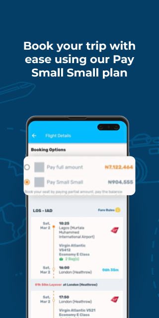 Ottieni le migliori offerte con la nostra funzione di controllo dei prezzi. Wakanow ti avvisa delle variazioni di prezzo per 7 giorni, assicurandoti di prenotare voli e soggiorni in hotel alle tariffe più convenienti. Gestisci il tuo budget di viaggio in modo efficace, grazie alla nostra funzione "Paga piccolo piccolo", che ti consente di dividere comodamente i tuoi pagamenti.