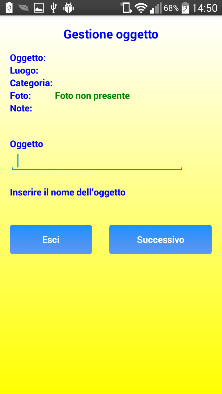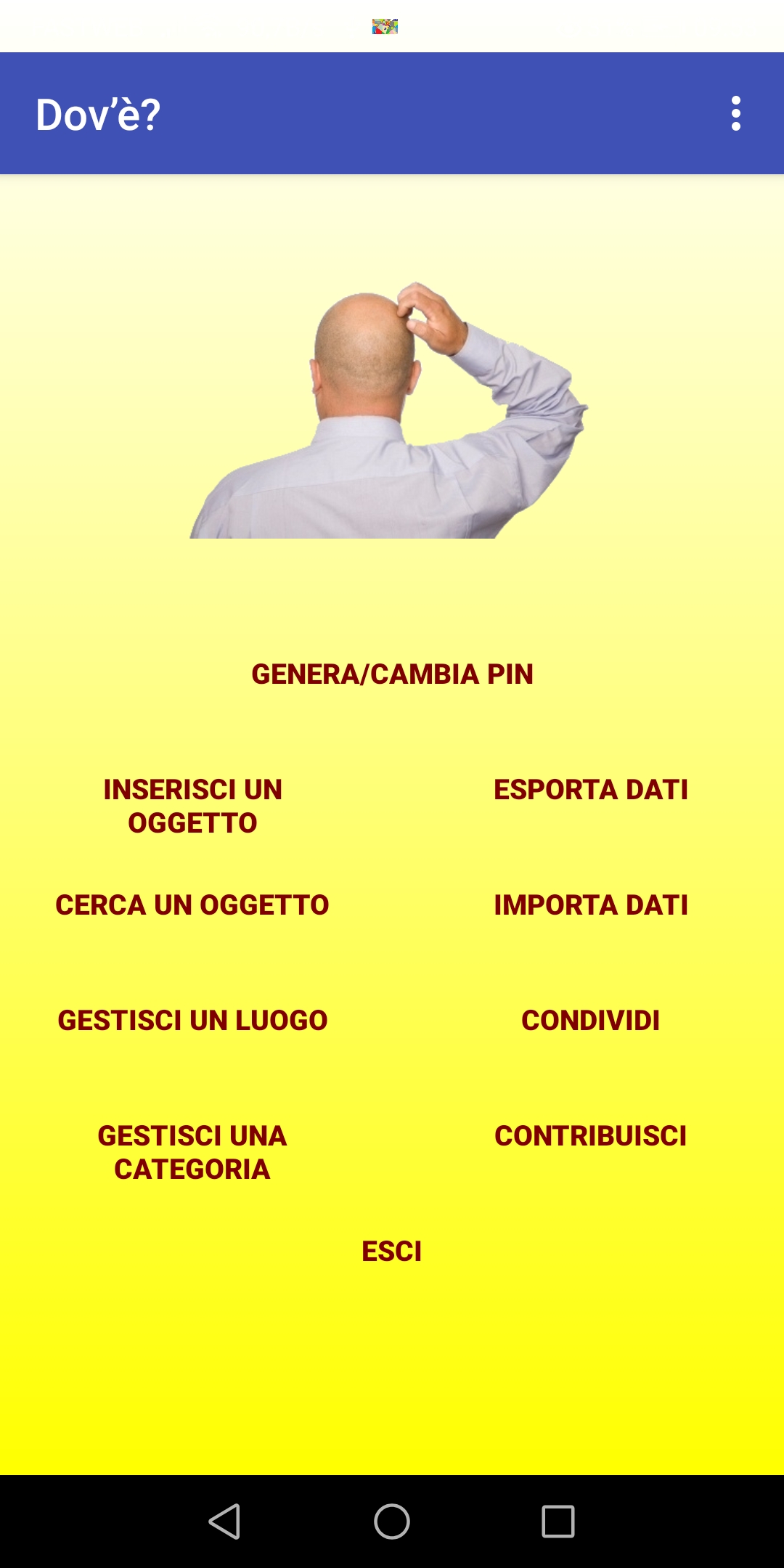Quante volte hai cercato un oggetto e non lo hai trovato (almeno nel momento in cui ti occorreva!!) perché hai dimenticato dove l’avevi riposto? Attenzione!! L'Oggetto non deve essere interpretato solo come qualcosa di concreto o toccabile; l'Oggetto è qualsiasi cosa che temiamo di non ritrovare o che rischiamo di non ricordare. Questa applicazione serve proprio a risolvere questi problemi. I campi di applicazione vanno dal reperimento degli oggetti preziosi, mate- rialmente o affettivamente, ai capi di abbigliamento della stagione precedente, ai profili utente e le passwords con cui accedere ai siti web sui quali ci siamo registrati, ai PIN o ai codici di identificazione dei vari conti bancari, agli scontrini che spesso è necessario conservare per validare la garanzia di un prodotto. In mezzo puoi metterci qualsiasi altra cosa ti venga in mente. Ad ogni Oggetto per te importante assocerai un Nome ed il Luogo in cui lo stai per conservare (il Luogo può anche essere un luogo virtuale); inoltre, facoltativamente, potrai abbinare una Fotografia, delle Note Aggiuntive che possano esserti utili a distanza di tempo ed una Categoria di appartenenza dell'oggetto (ad esempio: oggetti preziosi, oggetti affettivi, ecc..). I Luoghi e le Categorie possono essere creati al momento della creazione dell'Oggetto e possono servire anche per altri oggetti. I Luoghi, le Categorie e le Fotografie possono essere cambiati in ogni momento per consentire di tracciare i cambiamenti avvenuti nel tempo riguardanti la collocazione dell'oggetto stesso. Gli oggetti possono, poi, essere ricercati filtrando per Nome, Luogo e Categoria. Una comoda lista a tendina si aggiorna mano a mano che digiti nella casella di testo il nome dell'Oggetto e/o del Luogo e/o della Categoria permettendoti di selezionare subito quanto stai cercando; un po' come avviene quando usi un motore di ricerca come Google e stai scrivendo cio' che stai cercando. Premendo, poi, il tasto di ricerca, apparirà una lista di oggetti che sono coerenti con i parametri di ricerca da te impostati. Ad esempio: se hai digitato nel campo Luogo "Camera da letto" ti verrà mostrata una lista di tutti gli oggetti da te precedentemente censiti e collocati nel luogo "Camera da letto". Premendo sul singolo elemento della lista potrai visualizzare i particolari dell'Oggetto (Nome, Luogo, Indirizzo del luogo, Note Aggiuntive, Categoria di appartenenza e Fotografia). Sono anche presenti le funzioni di Esportazione dati ed Importazione dati che risultano particolarmente utili nel caso in cui, ad esempio, il disposi- tivo su cui sono stati memorizzati i dati debba essere sostituito; in casi come questo sarà sufficiente installare l'applicazione sul nuovo dispositivo, attivare la funzione di Importazione dati e, contestualmente, sul vecchio dispositivo attivare la funzione di Esportazione dati: in pochi secondi i dati e le eventuali fotografie associate saranno trasferite sul nuovo dispositivo. Tutta la procedura è protetta da un accesso con PIN che può essere modificato ogni volta che lo si desidera; inoltre, per evitare che ci si possa dimenticare del PIN è previsto che, all'atto della creazione o modifica del PIN si possa inviare un promemoria, tramite e-mail, affinchè rimanga traccia nel tempo e l'informazione sia memorizzata su un dispositivo diverso da quello su cui si esegue l'applicazione.
