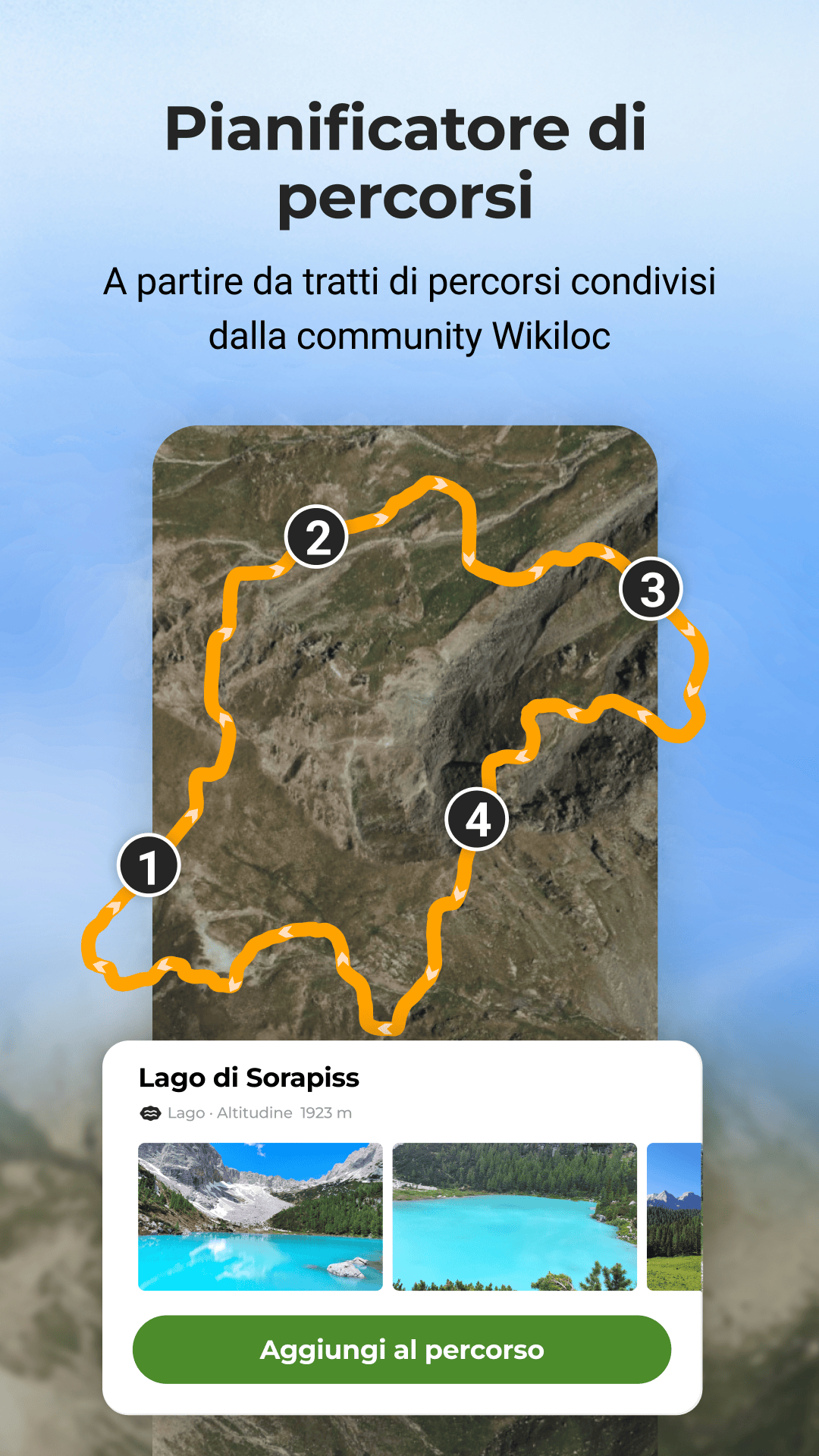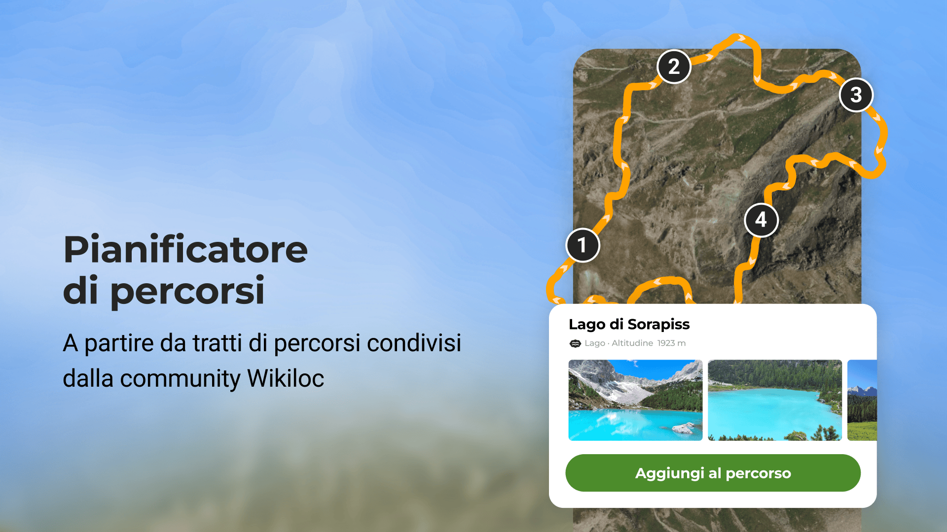 ✅ Pianificatore di Percorsi: Scegli i luoghi che desideri attraversare e Wikiloc creerà un itinerario dando la priorità ai tratti dei percorsi più amati condivisi dagli altri membri della community.
