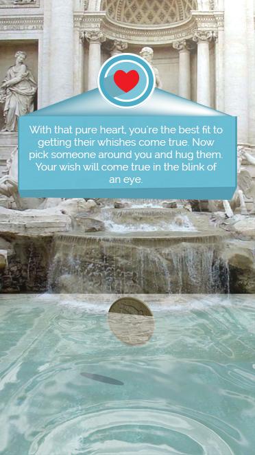 *****Free Entertainment Fortune Prediction App ***** Can coins bring good fortune? Sure it can! Close your eyes and make a wish. When you shake the phone and toss your wish coin to the fountain, the wish genie helps you to make your wish come true. Now it' s time to send wishes to Rome Love fountain hasn't been so close to your heart before. Make a wishlist and toss the coin to the Rome Trevi fountain. Through this free, positive, motivating and easy using application you can send good wishes to your friends and wish them good luck. Let's try this free and entertaining application if you like magic balls, fortune tellers, horoscopes, love horoscopes and reading cofee cup apps. With this free,pocket fortune teller app you get the motivating wish prediction. It is time to imagine and share your dreams with your friends. There is no need to travel and go to far places to make the wishes come true. No need to check horoscopes everyday. Wish Coin is ready for you. Enjoy it. Open your heart and read your fortune. Now it is time to send messages to the universe. Try your own luck with coins Wish, share and let it happen. Free Download. No registration. Easy, Clear and Fresh User Interface. Suitable for all ages, great fun for everyone. "This Application is for entertainment purposes only. It is fiction and does not provide any real information." The Myth of Throwing Coins in Water It is very common practice in India throw coins in the river, especially in religious places without a second thought. The real meaning behind this simple act has mostly been forgotten. Some think throwing the coin brings Goddess of Wealth into their lives. In ancient India, most civilizations flourished near rivers and were a significant source of fresh water. As the rivers were the only source of water at the time, having clean water was essential for survival. Most currencies used then were made of copper, an element required by human body to maintain health. Once thrown in the river, copper would slowly dissolve in the water and the person drinking it would have sufficient intake of the metal in their body for optimization of the metal. Copper also pulled down all the dirt in the river, allowing clean and fresh water to flow freely on top.... The Legend of Throwing Coins in the Trevi Fountain As mentioned, there’s a long-standing tradition about throwing coins in the Trevi Fountain – spend a few minutes watching people at the fountain and you’ll see that this is the main reason many people stop by. The original legend says that if you throw a coin into the Trevi – with your back to the fountain, throwing the coin with your right hand over your left shoulder – that will ensure a return to Rome. Perhaps thanks in part to the film “Three Coins in the Fountain,” a newer story also routinely makes the rounds that says throwing one coin means a return to Rome, a second coin leads to a new romance, and a third coin leads to marriage. As you already know, presenting gifts to gods is an ancient practice that was usually meant to appease angry gods, or to act as a payment for a request or prayer. In the case of fountains and wells, people would toss in a coin while sending up a prayer—an early version of making a wish. Many early European tribes believed that such areas were a gift from the gods. The idea that drinkable water was sent from the heavens remained even as wells and fountains were built. Often, a small statue of a god could be found next to early wells and fountains, turning them into a type of shrine. One rather prolific well can be found in Northumberland, England, and was used to pray to the Celtic goddess of wells and springs, Coventina.