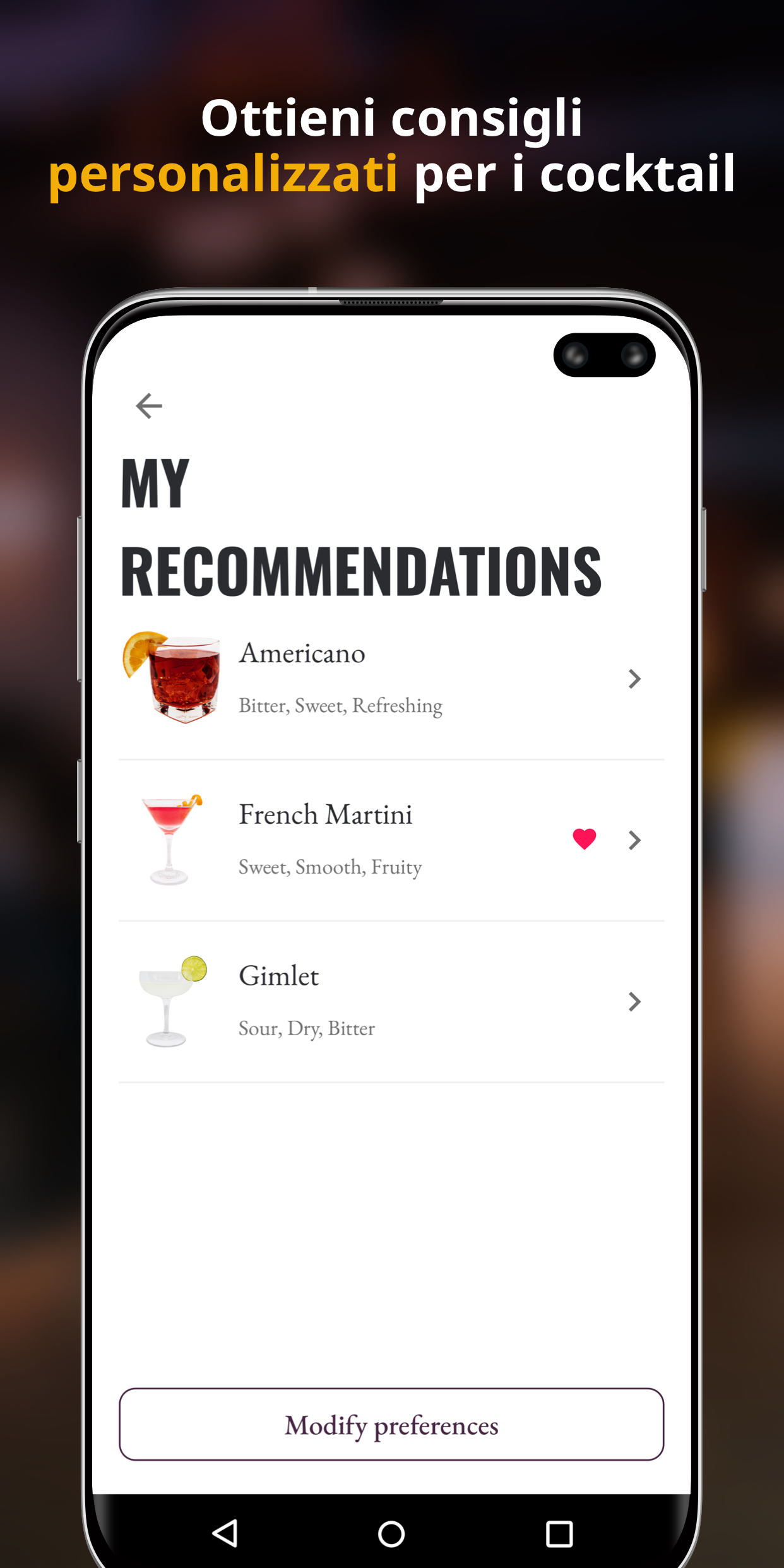Non sai cosa bere o vuoi provare qualcosa di nuovo? In base alle tue preferenze, Wunderbar ti consiglierà i cocktail che pensiamo ti piacciano di più.