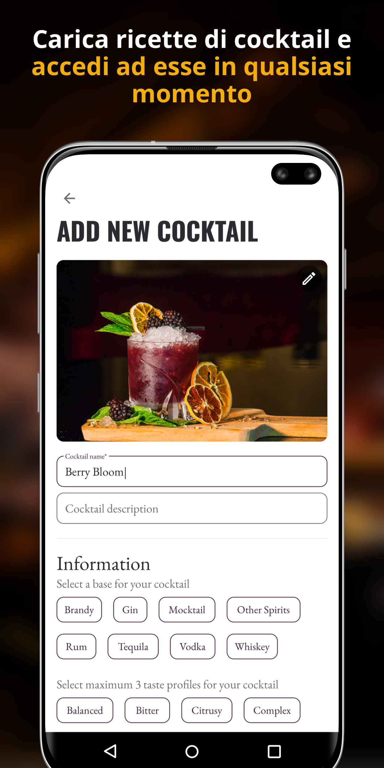 Esplora la nostra community di cocktail, dove puoi scoprire e imparare a preparare cocktail unici creati da altri utenti in tutto il mondo. Puoi anche creare le tue ricette di cocktail sul tuo profilo e avere la possibilità di essere inserito nella lista dei Community Cocktails.