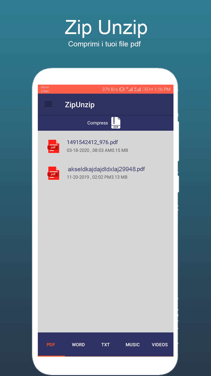 La compressione dei file non è solo utilizzata per ridurre le dimensioni dei file, ma anche la compressione dei file è il modo di condividere i file con qualsiasi mezzo. La condivisione di file compressi è il modo professionale in questa era. In alcune occasioni non hai un laptop o un computer per comprimere e decomprimere i tuoi file, quindi non preoccuparti abbiamo lo strumento Zip Unzip: Compressor, File Extractor per poter comprimere e decomprimere il file. Puoi comprimere e comprimere i file molto facilmente con il nostro estrattore zip - convertitore di file zip. Questo strumento di decompressione zip: Compressore di file, Estrattore di file consente di comprimere file pdf, comprimere file di parole, comprimere file di testo, comprimere file audio, comprimere file video, comprimere le dimensioni del video. Puoi anche comprimere file mp4 e file Excel. Questo è uno strumento gratuito per la compressione e la compressione di file video. Strumento di decompressione zip: File Compressor, File Extractor rende facile da gestire e lavorare con file di grandi dimensioni, è possibile ridurre le dimensioni dei file e condividere rapidamente i file tramite i social media. L'imballaggio e il disimballaggio sono ora diventati molto semplici con questo strumento di decompressione zip: Compressore di file, Estrattore di file. Tutti i file presenti nel tuo telefono Android verranno caricati separatamente in base al tipo e alle estensioni. Caratteristiche: 1. Comprime le dimensioni del video e il file video 2. Comprime il file audio 3. È possibile comprimere il file pdf 4. Comprimi i file Excel 5. Comprimi i file di Word 6. Facile da estrarre e decomprimere tutti i file 7. Facile da eliminare zip e decomprimere i file 8. Tutti i file verranno caricati in base al tipo e all'estensione 9. È possibile condividere file tramite i social media. In questo mondo frenetico tutti devono risparmiare tempo, quindi comprimi e comprimi tutti i tuoi file con questo strumento Zip Unzip: File Compressor, File Extractor e condividilo molto rapidamente con gli altri. Questo estrattore di file zip e il software zip gratuito aiuteranno davvero le persone che amano i film perché con questo strumento Zip Unzip: File Compressor, File Extractor è possibile ridurre le dimensioni dei filmati e condividerli rapidamente con gli altri.Zip Unzip Tool: Compressor File, File Extractor condivide file con altri, quindi possiamo anche dire che si tratta di un'app di trasferimento file. Se involontariamente si comprime e comprime il file errato che non si desidera comprimere, è possibile eliminare quel file molto facilmente. Questa app di estrazione di file zip viene utilizzata anche per la sicurezza dei file perché nessuno può aprire i file compressi senza estrarli o senza visualizzatore di file zip. Con questo strumento di compressione e decompressione puoi risparmiare molto tempo. Come puoi risparmiare tempo? Come puoi comprimere i file e comprimendo le dimensioni dei file ridurrà il che ti farà risparmiare tempo durante l'invio di file ad altri Quindi, non perderai tempo a inviare file senza zippare e comprimere, basta zip file e Spedire. Politica sulla riservatezza: Questo strumento Zip Unzip: File Compressor, File Extractor è un'app sicura al 100% perché questa applicazione non salverà alcuna informazione personale come foto, video, contatti, microfono, messaggi ecc. Lavorando: 1. Scarica e installa questo Zip Unzip Tool: File Compressor, File Extractor. 2. Apri questo strumento Zip Unzip: Compressor File, File Extractor. 3. Per comprimere il file audio, premere l'icona MUSIC e quindi selezionare il file per la compressione. 4. Per comprimere il file video, premere l'icona VIDEO e quindi selezionare il file per la compressione. 5. Per comprimere il file di testo, premere TEXTicon e quindi selezionare il file per la compressione. 6. Per comprimere il file di parole, premere WORDicon e quindi selezionare il file per la compressione.