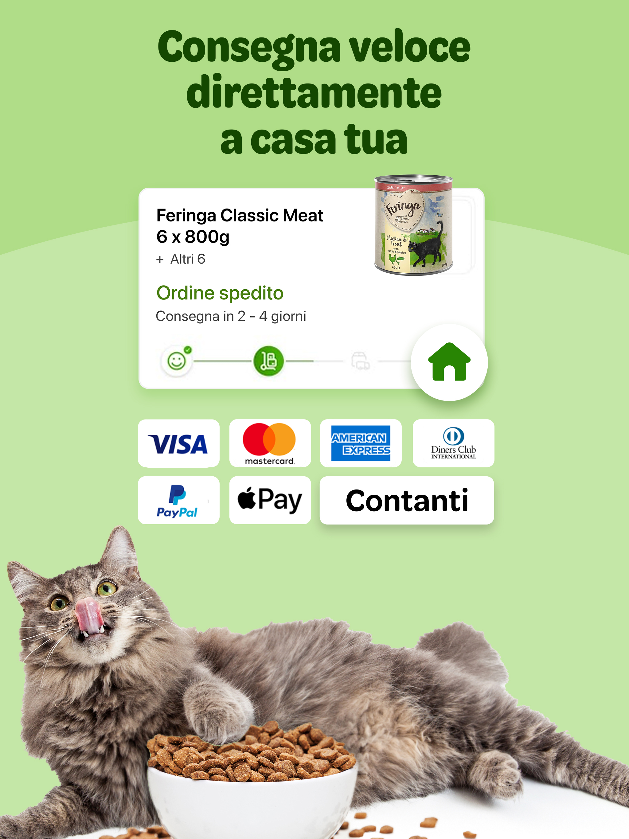 Approfitta del 10% di sconto sul primo ordine e del 5% sulle consegne regolari: semplice, veloce e perfetto per ogni pet parent!