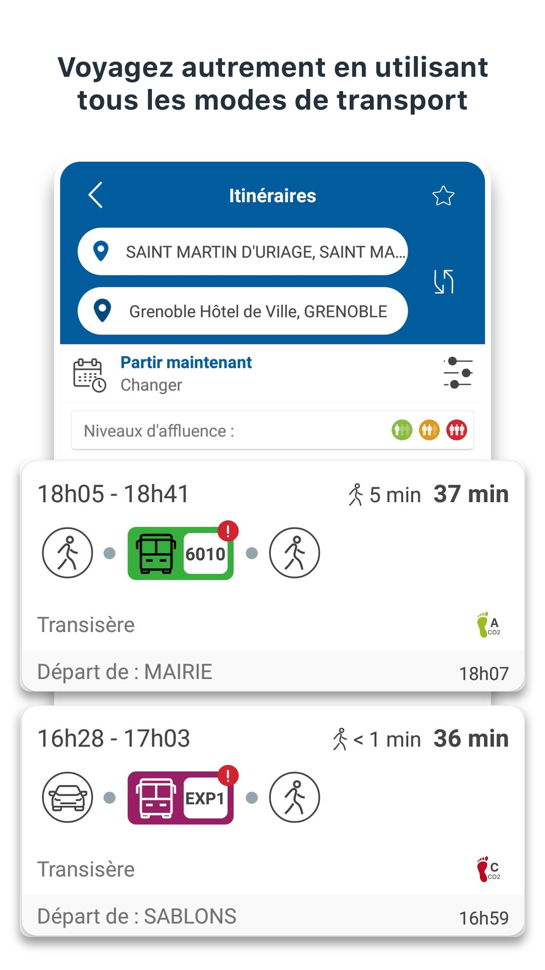 The official application for your trips in the Isère! itin isère , is an application for successful personal or professional trips in Isère and to resorts in the Alps. itin isère brings together in a single application the theoretical and real-time information on all the modes of transport available in the department: bicycle, bus, coach, tram, train, plane, road traffic, carpooling…. Supplied by transport networks and road operators, under the aegis of the Department of Isère, itin isère is: all transport, all information, in real time, every day , at any time Main duties : ➡️ Road Traffic Info: find out about traffic conditions in real time (accidents, roadworks, traffic jams, openings of passes, snow cover, road closures, etc.) ➡️ Route planning: enter your starting and destination points, date and time, and get transport solutions for your trip, based on the latest traffic information available. You can specify preferences. The carpooling offer is also taken into account. ➡️ Timetables: check the transit times per line and per stop for the transport networks circulating in the Isère Department ➡️ Crowdsourcing: Report at any time the events encountered on your way and earn points to improve your profile! ➡️ Disturbances: to find out everything about current or announced disturbances. ➡️ My account: subscribe to alerts to receive real-time disturbances on your favorites (lines / stops / routes) ➡️ Nearby: view on an interactive map the stopping points of the transport networks (with the possibility of consulting the transit times), the park and the ride, car sharing and carpooling stations as well as the traffic conditions in time real, with indication of construction sites and events, opening and closing of passes, travel time to Alpine resorts. Main partners: Grenoble-Isère and Lyon-Saint Exupéry airports - Actibus - Blablacar - CAPI (RUBAN) - Chamrousse - Flixbus - LER (ZOU) - Pays Viennois (LVA) - SNCF - TAG - Transaltitude - Coaches Region - Transport du Grésivaudan (TOUGO) - Pays Voironnais. Find these partners and all transport information on the website www.itinisere.fr