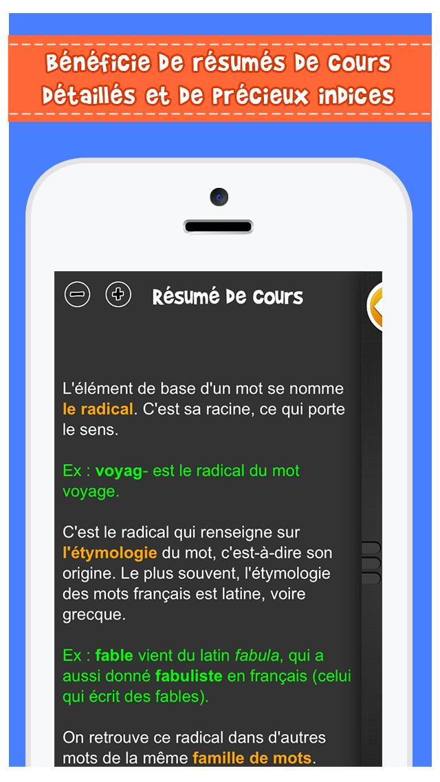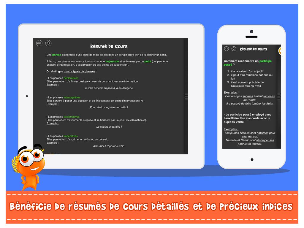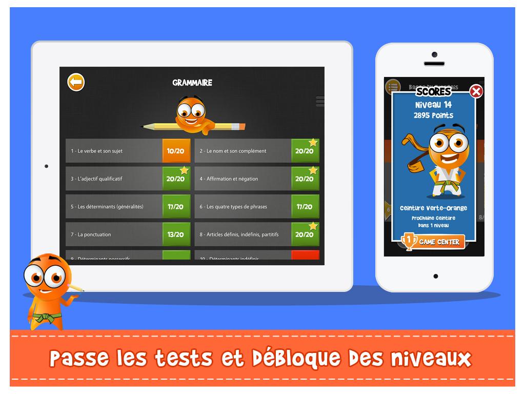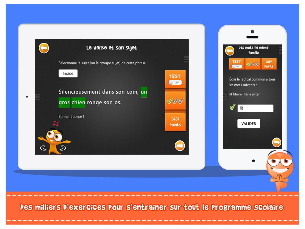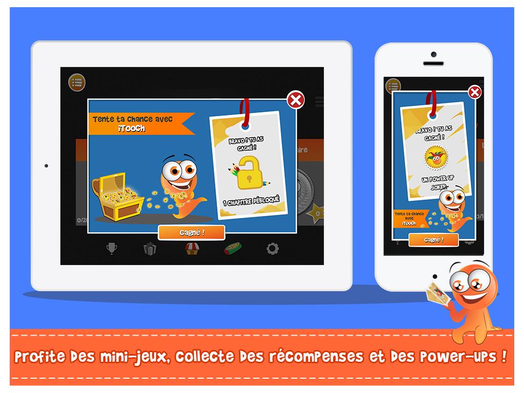 iTooch Les Bases du Français est une application de soutien scolaire ludique, conçue par des enseignants, qui couvre le programme scolaire officiel du second degré en Français. Utilisées par plus de 5.000.000 de personnes dans 146 pays, les applications iTooch sont nées de la rencontre d'enseignants passionnés, de pédagogues et de professionnels du jeu vidéo, eux-mêmes parents. L'union de ces savoir-faire a permis d’offrir aux enfants un merveilleux complément scolaire qui leur donne envie d’apprendre et qui leur permet de s’entrainer sur tout le programme officiel de leur classe. ♖ FONCTIONNALITES ♖ • Une interface simple, claire et ludique • La synthèse vocale pour accompagner les enfants dans la lecture et la compréhension de texte • Une gestion multi-joueurs permettant la sauvegarde des scores de plusieurs enfants sur un même smartphone ou tablette • Réglage de la taille des textes • Tableau virtuel et calculatrice intégrés • Mode déconnecté disponible pour profiter de nos applications même sans connexion Internet • Synchronisation automatique des contenus • Des résumés de cours qui reprennent les notions fondamentales à connaître par les élèves • Des power ups spécialement conçus pour motiver et donner petit un coup de pouce ! ★ App sélectionnée dans les tops du guide Les meilleures applications pour enfants 2015 - par la Souris Grise ★ ☀ L'APPLICATION CONTIENT : ☀ ✓ 4 thèmes : Grammaire, Orthographe, Conjugaison, Vocabulaire ✓ 78 chapitres par titre, avec résumé de cours, exemples et dessins ✓ 5 000 questions par titre avec indices et réponses détaillées ➡ iTooch Les Bases du Français réunit de loin la plus grande base d'exercices pour le collège sur Google Play. Pour plus de fun, connectez-vous avec notre app compagnon d'iTooch, Monster Messenger, qui permet de partager vos progrès avec vos amis et de leur demander de l'aide. Monster Messenger est un réseau social sécurisé pour les enfants et leur famille, dans lequel les parents contrôlent la liste des personnes qui peuvent discuter avec leurs enfants. Retrouvez également notre application iTooch Les Bases des Maths sur Google Play. Les applications iTooch offrent une solution de soutien scolaire mobile pour les classes de CP, CE1, CE2, CM1, CM2, 6e, 5e, 4e et 3e en Mathématiques, Français, Anglais et Physique-Chimie. ***A la demande de nombreux utilisateurs qui souhaitent bénéficier d'une application gratuite, nous mettons à disposition une version gratuite intégrant de la publicité. Cette option nous permet de rendre accessible nos contenus au plus grand nombre. La publicité peut être supprimée à tout moment très simplement au travers d'un achat dans l'app. Une version de l’application sans publicité et dédiée aux enseignants et aux établissements scolaires est disponible. Nous vous invitons à découvrir cette version sur notre site : www.edupad.com/fr/ecoles *** ☎ CONTACT ☎ ‣ Facebook: http://facebook.com/itoochapps ‣ Twitter: @itooch ‣ Site: http://edupad.com