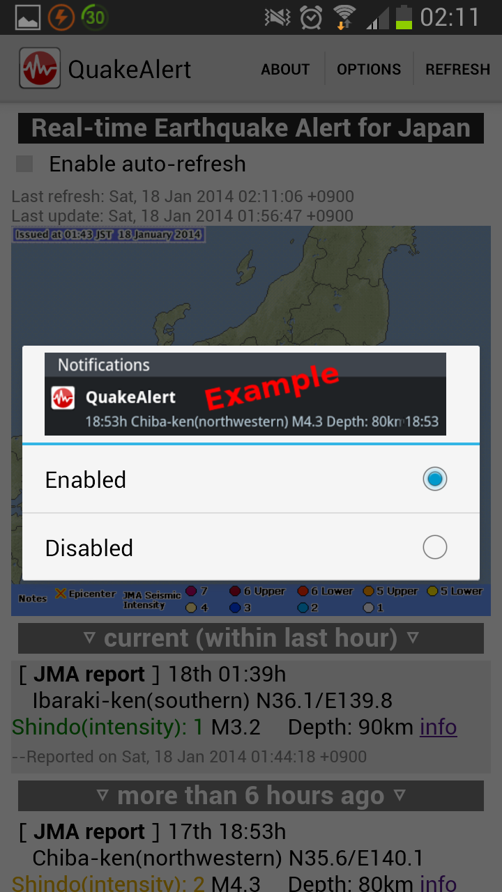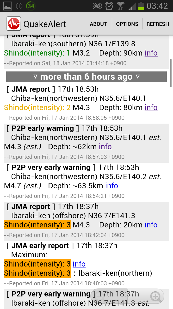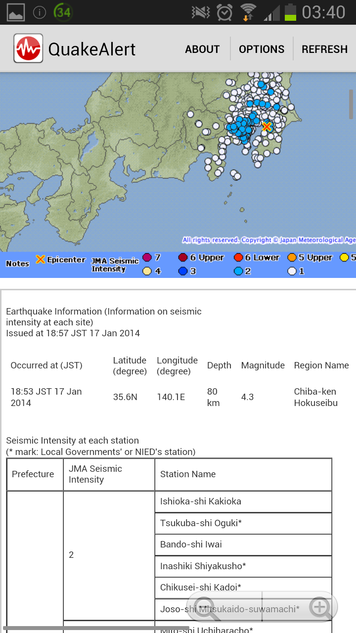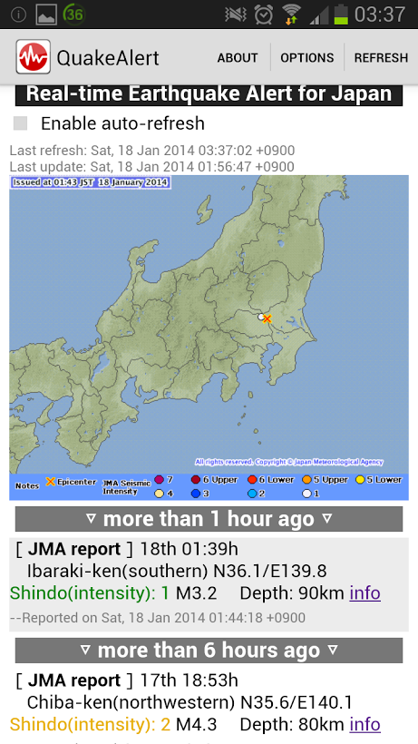 Japan Quake Alert is an English-based application that provides Japan earthquake information from official sources (Japan Meteorological Agency) as well as crowd-sourced information (first-hand user updates, etc.). The app provides real-time information on your phone, sometimes within seconds of initial tremors!