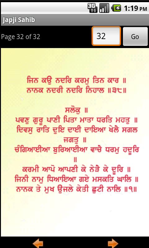 Idea for this app is to bring this holy Sikh morning recitation prayer anywhere. Language is no bound now as this is available in Hindi and Gurmukhi both 'Japji' is a universal song of God composed by Guru Nanak Dev, the founder of the Sikh faith. Japji Sahib consists of the Mool Mantra as the beginning followed by 38 hymns and a final Salok at the end of this composition. The Japji appears at the very beginning of the Guru Granth Sahib, the Holy Book of the Sikhs. It is regarded as the most important Bani or 'set of verses' by the Sikhs and is recited every morning by all practising this faith. The word ‘Jap’ means to ‘recite’ or ‘to ‘chant’. ‘Ji’ is a word that is used to show respect as is the word ‘Sahib’. 'Ji' can also be used to refer to one's own soul. This Bani was composed by the founder of the faith, Sri Guru Nanak Dev, who was the first of ten Sikh Gurus. The Ten Gurus of Sikhism were responsible for the creation of this faith which took place over period 1469 to 1708 – a period of about 239 years. At the point when the last of these Gurus departed this Earth, the Guruship was passed to the Sikh Holy Book, the Guru Granth Sahib. The Sikh treat the Guru Granth Sahib as a living Guru and the respect shown for the Shabad or ‘Message of the Gurus’ is unique in the faith